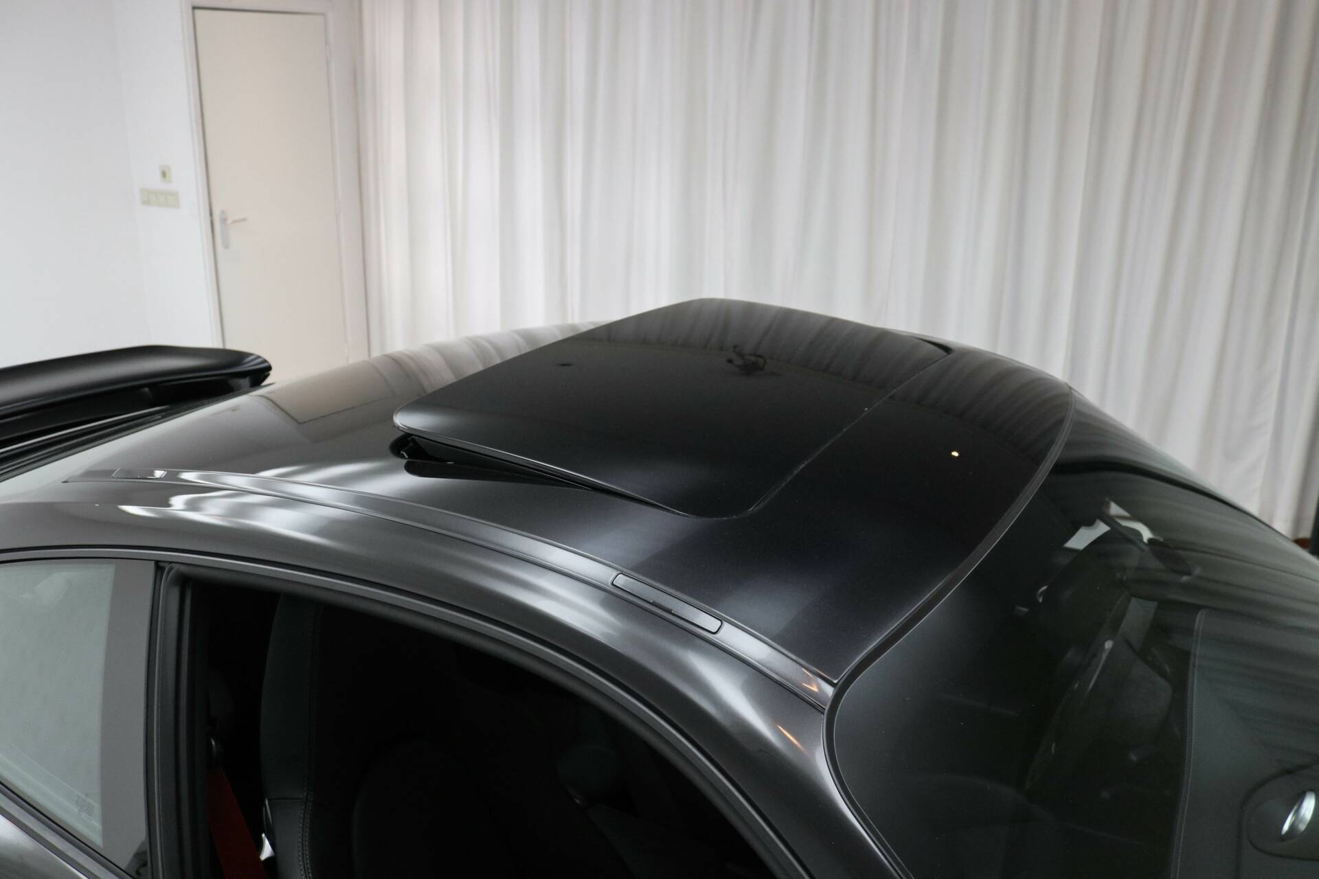 Das Interieur ist in schwarzem Leder ausgeführt und reichhaltig mit Porsche Exclusive Optionen ausgestattet. Das Alcantara-Lenkrad, rote Sicherheitsgurte und das Sport Chrono Paket betonen den sportlichen Charakter. Darüber hinaus verfügt der Innenraum über Sportsitze mit Sitzheizung, ein Schiebe-/Hebedach sowie zahlreiche Lederumfänge wie Lenksäule und hintere Mittelkonsole. Details wie das Porsche-Wappen in den Kopfstützen, Porsche-Schriftzug in der Mittelkonsole und Aluminium-Akzente runden das Gesamtbild ab.
