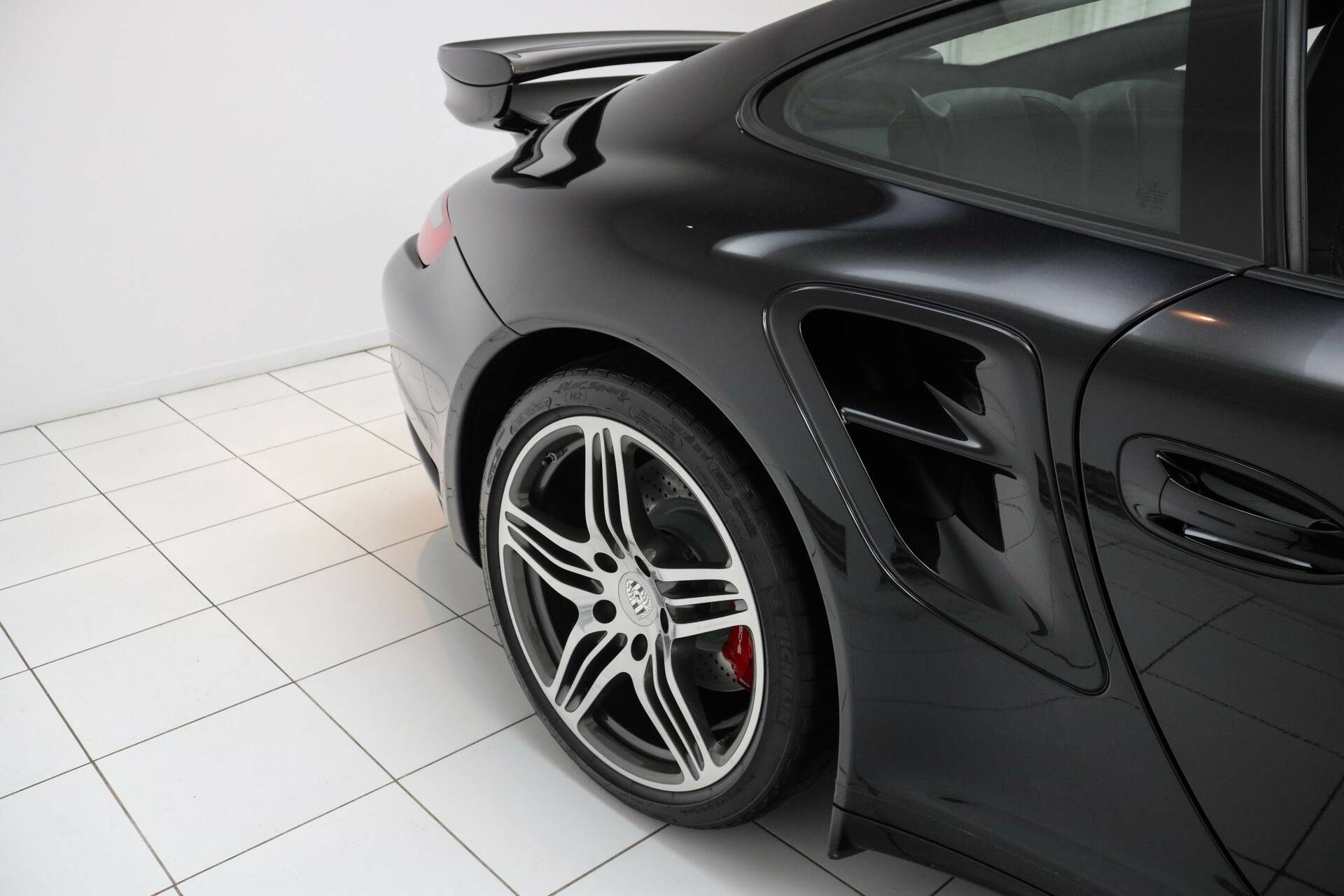 Dieser Porsche 911 Turbo ist in der eleganten Farbe Basalt Schwarz Metallic ausgeführt. Das Exterieur verfügt über das begehrte Aero Package, Seitenschweller in Wagenfarbe sowie die originalen Porsche Turbo Felgen. Die roten Bremssättel setzen einen sportlichen Akzent. Dank der Glasbeschichtung befindet sich der Lack in einem außergewöhnlich gepflegten Zustand, was den originalen Charakter unterstreicht.