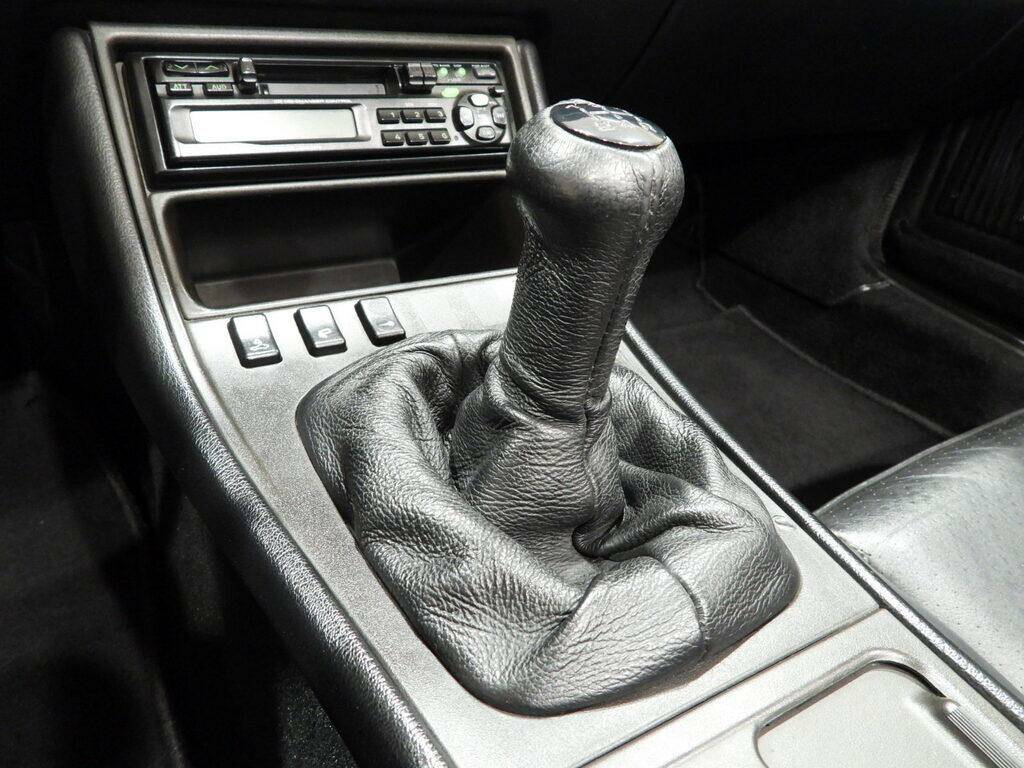 Black leatherette seats and panels, Power-adjustable front seats, Black wool carpeting, Power windows, Power-adjustable mirrors, Four-spoke leather steering wheel, Climate control, Kenwood KDC-C712 7-channel stereo cassette radio, Rectangular white fog lights, Porsche alloy wheels with 205/55 ZR16 front and 225/50 ZR16 rear tires, Power-operated black canvas hood, Black canvas hood cover.