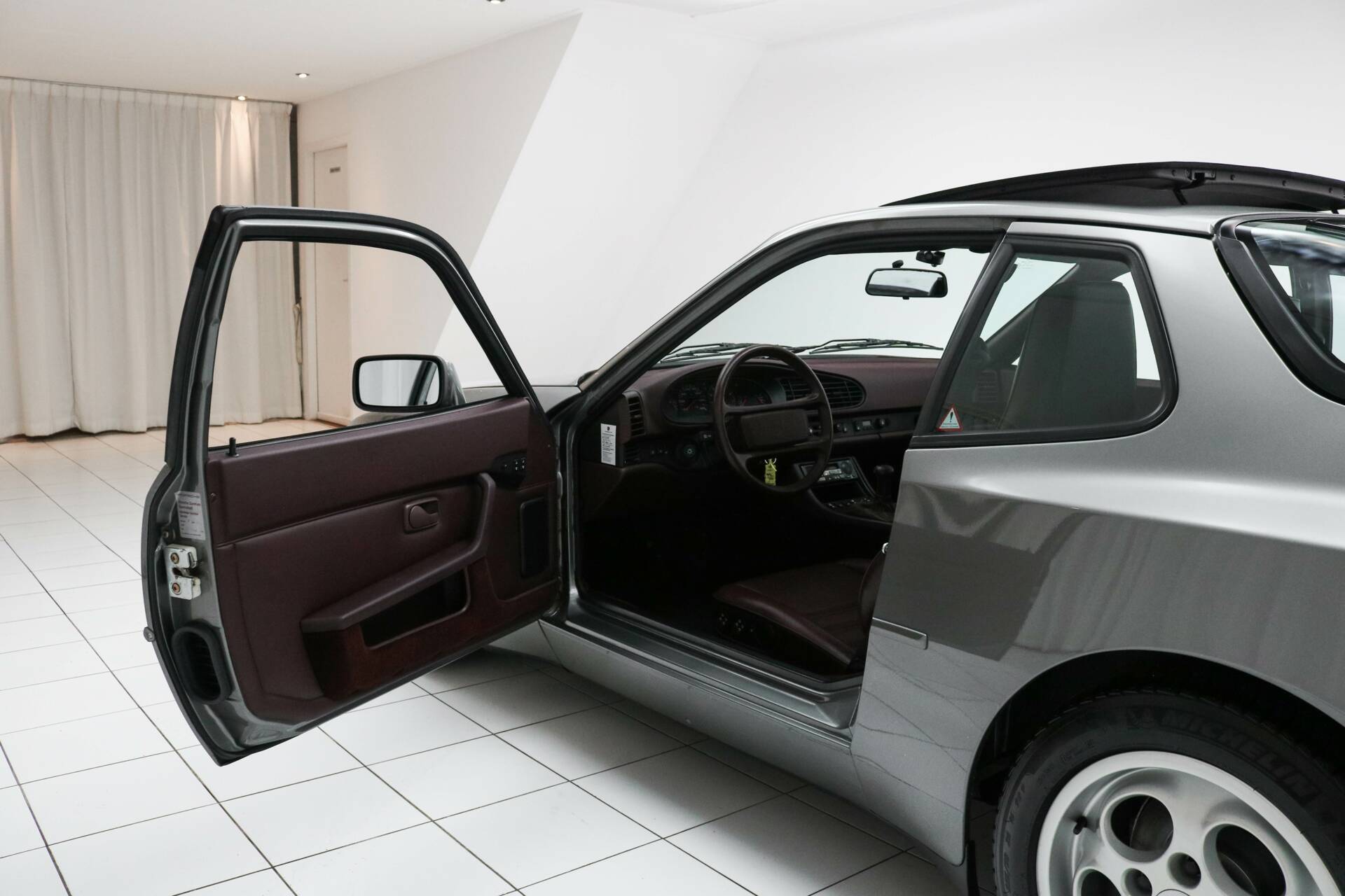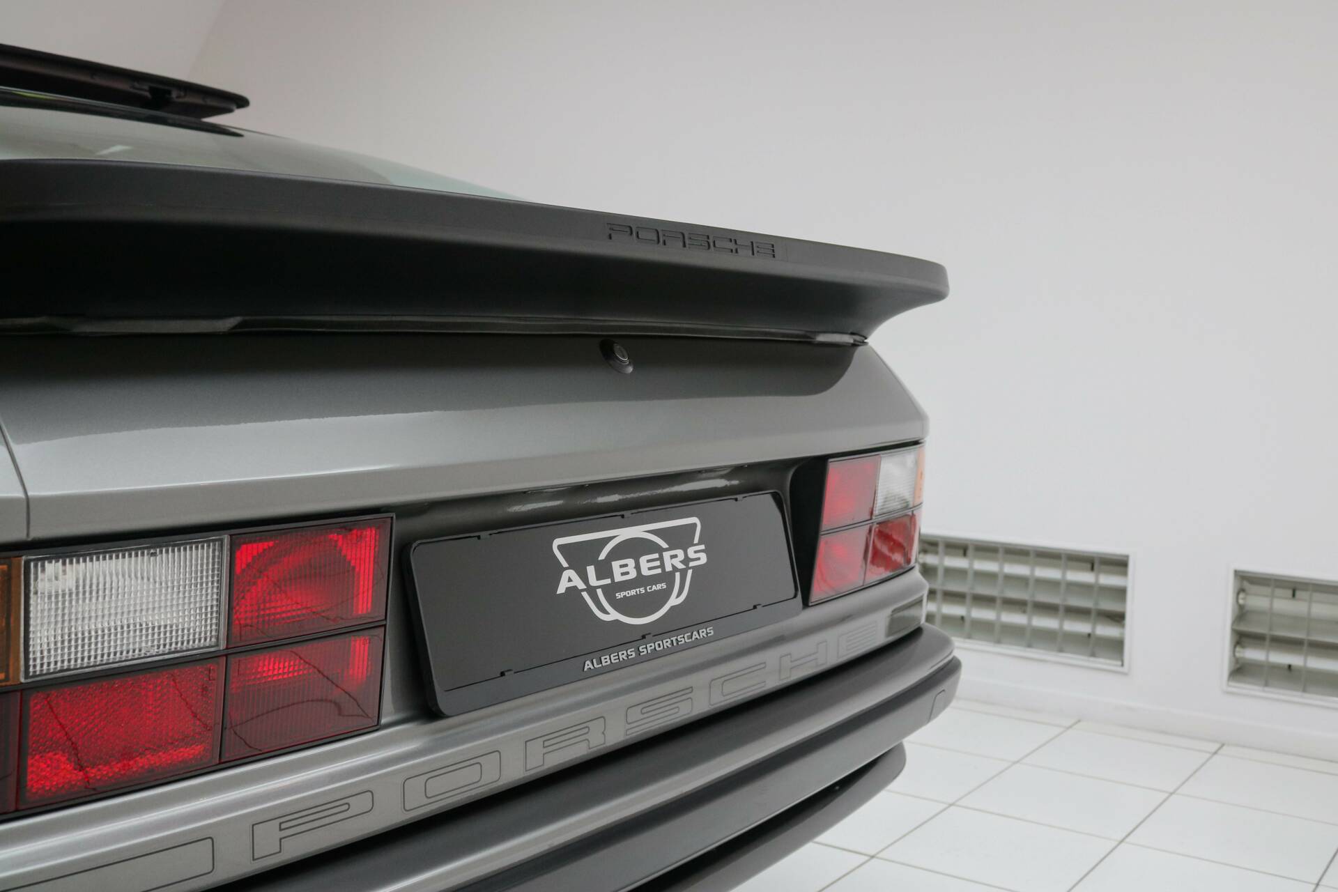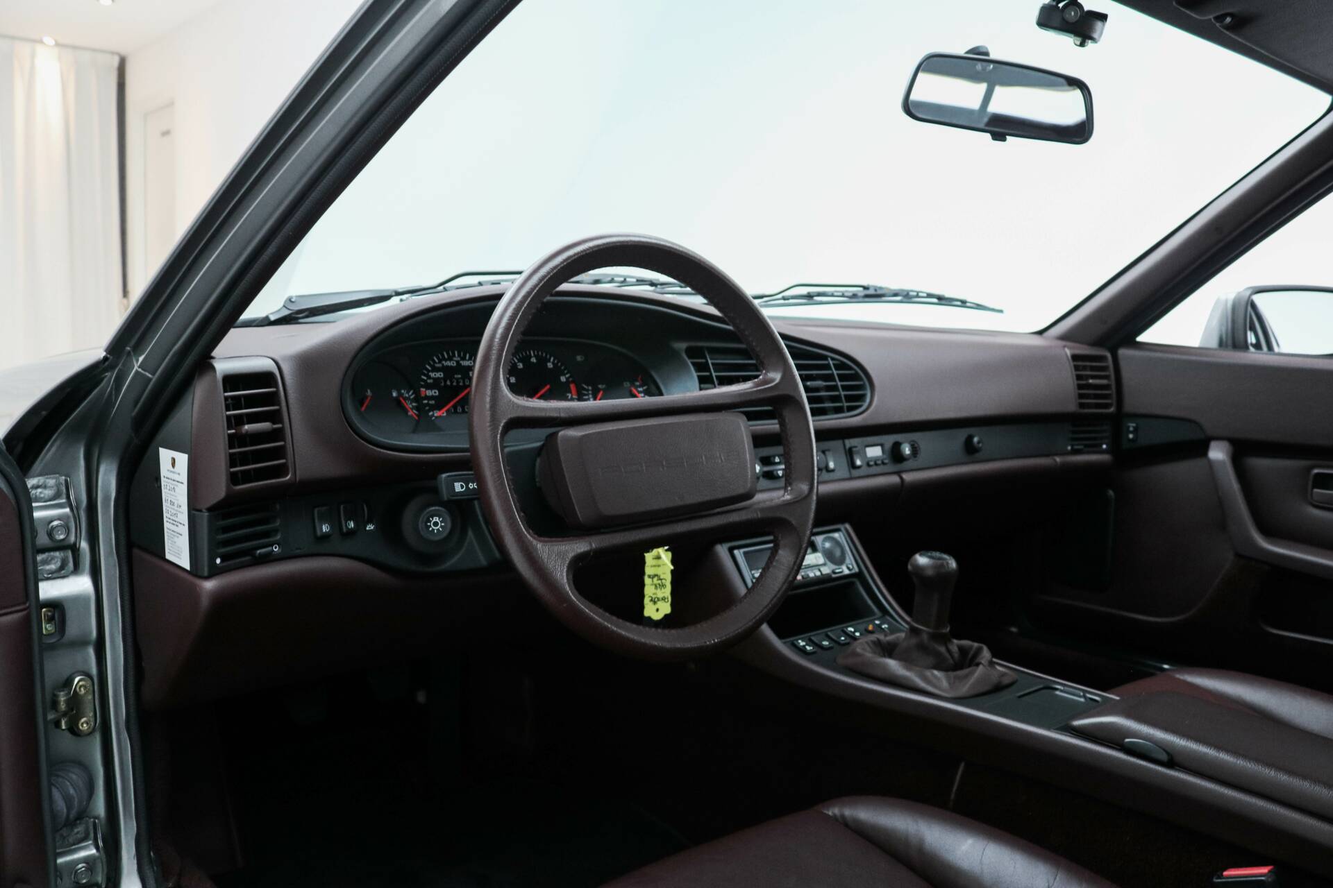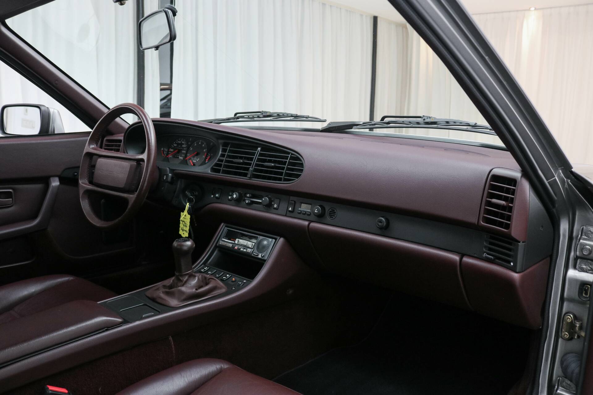 Dieser Porsche 944 Turbo Coupé ist in der stilvollen Farbe Steingrau Metallic lackiert und befindet sich noch in der Originalfarbe. Das Auto steht auf originalen Cup-Felgen und ist vollständig original. Das stromlinienförmige, typische 944-Design mit breiten Radkästen, markanten Klappscheinwerfern und dezentem Heckspoiler unterstreicht den sportlichen Charakter und verleiht dem Fahrzeug ein zeitloses Erscheinungsbild.