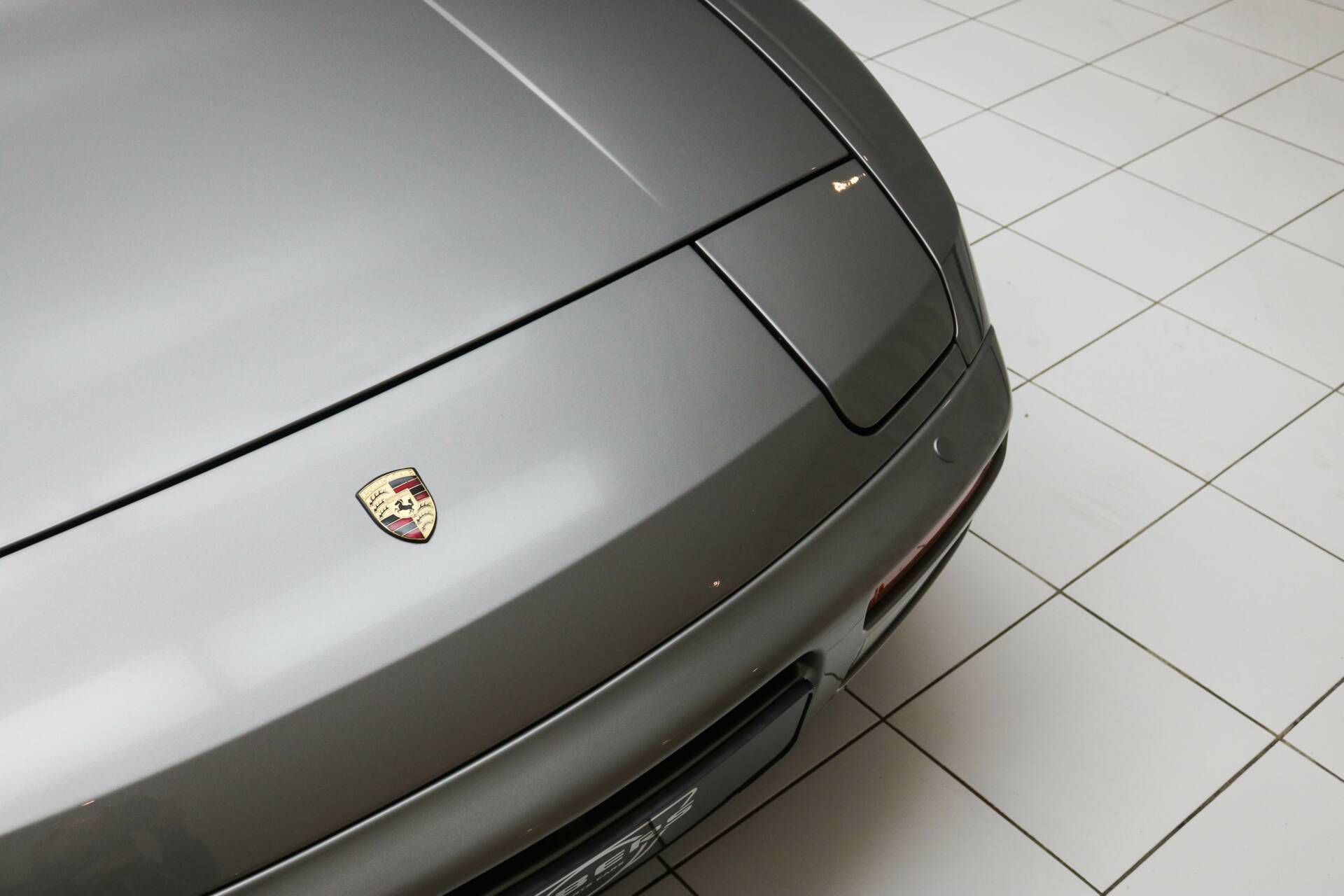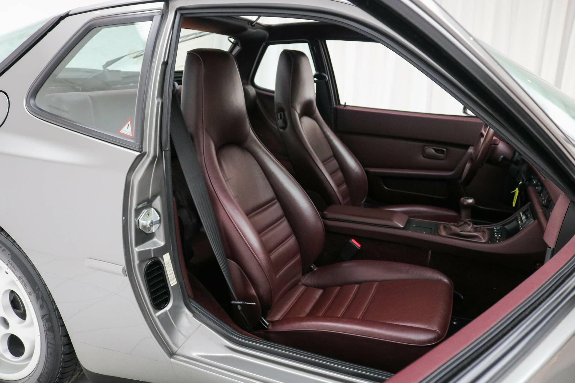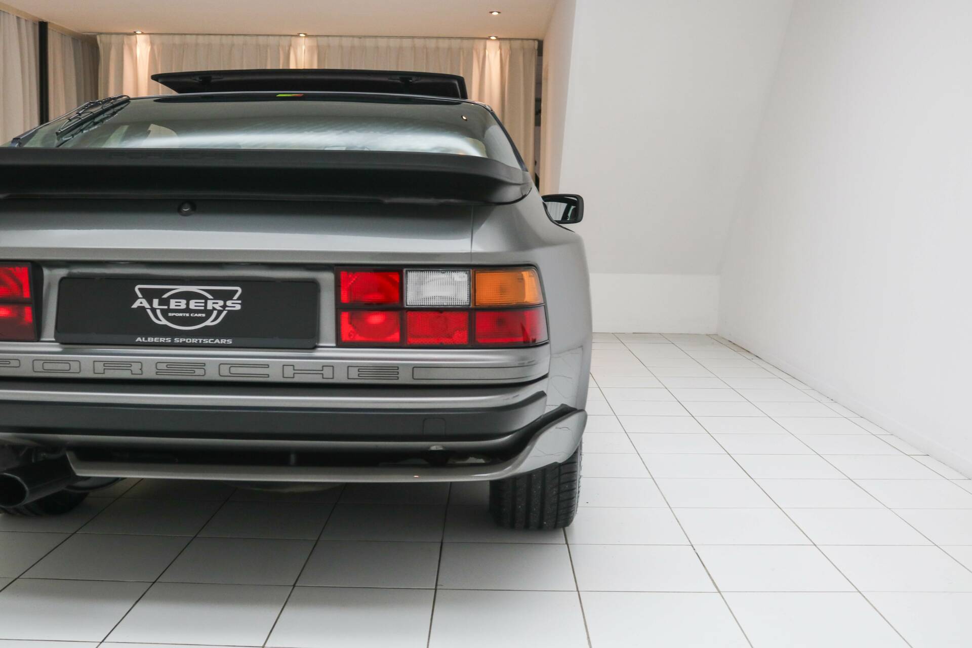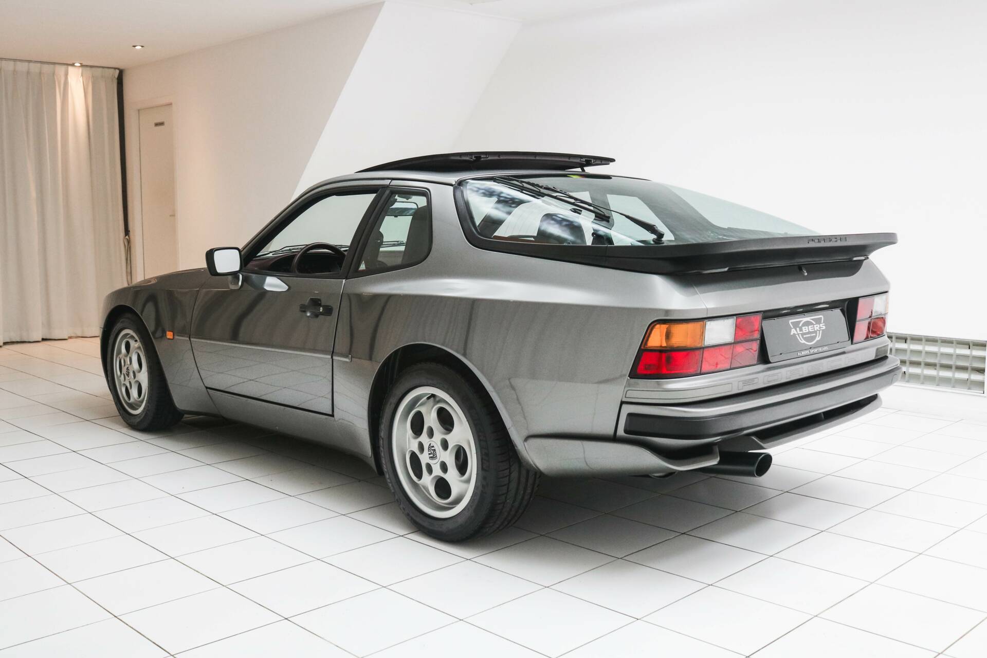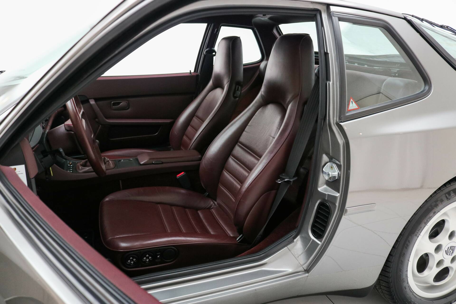 Dieser Porsche 944 Turbo Coupé ist in der stilvollen Farbe Steingrau Metallic lackiert und befindet sich noch in der Originalfarbe. Das Auto steht auf originalen Cup-Felgen und ist vollständig original. Das stromlinienförmige, typische 944-Design mit breiten Radkästen, markanten Klappscheinwerfern und dezentem Heckspoiler unterstreicht den sportlichen Charakter und verleiht dem Fahrzeug ein zeitloses Erscheinungsbild.