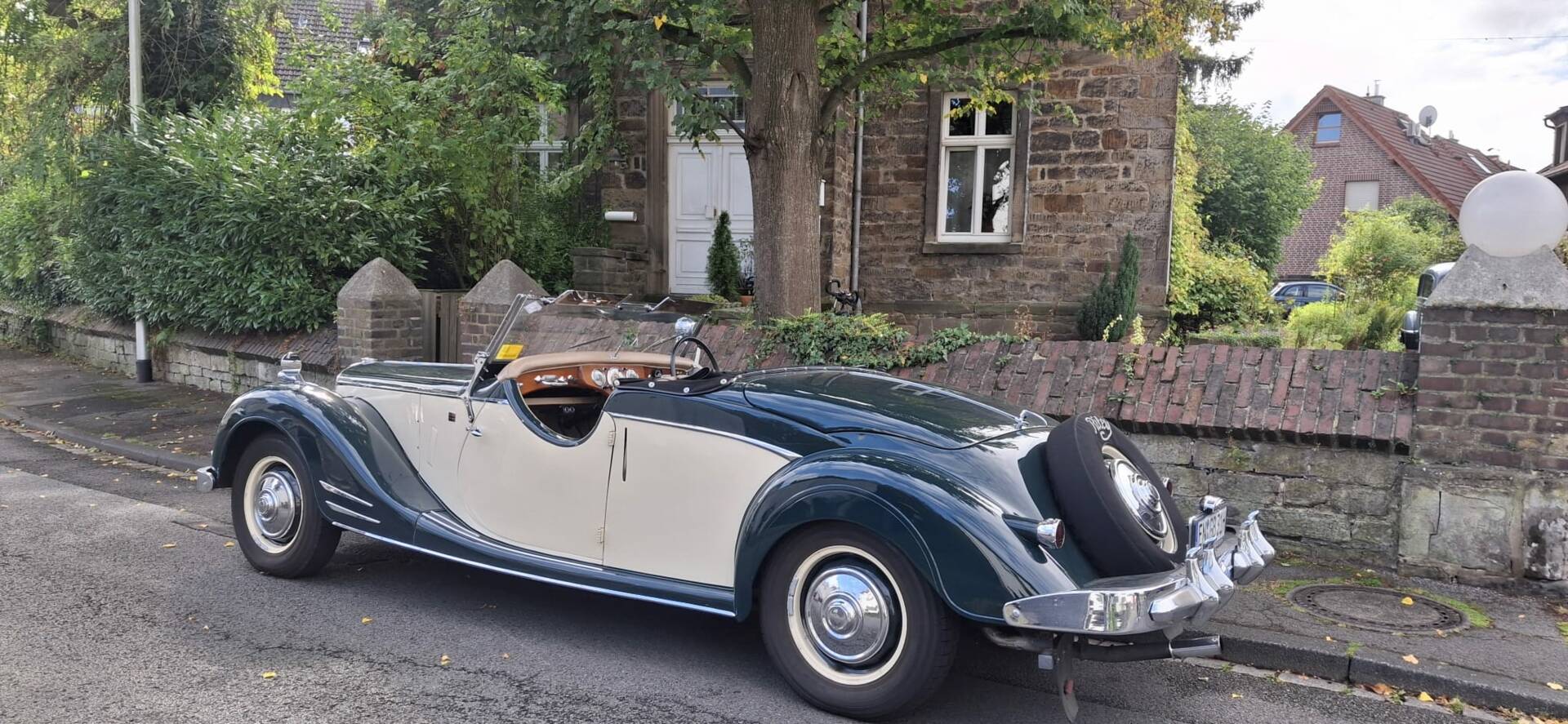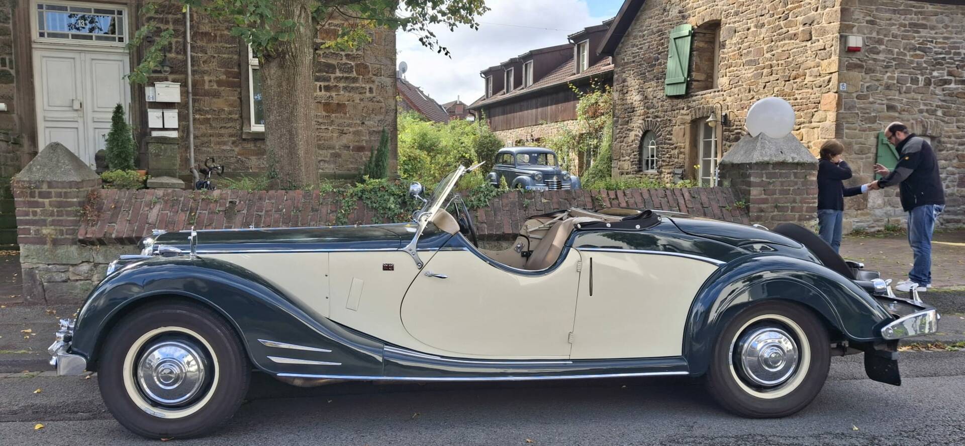 Ein britischer Roadster der Extraklasse: Dieser Riley RMC Roadster aus dem Jahr 1949 verbindet sportliche Eleganz mit klassischer Handwerkskunst. Der seltene 2,5-Liter-Roadster wurde 1998 umfassend generalsaniert und befindet sich laut Classic Data Gutachten (10/2018) in der Zustandskategorie 2+.