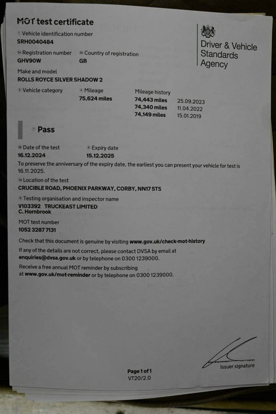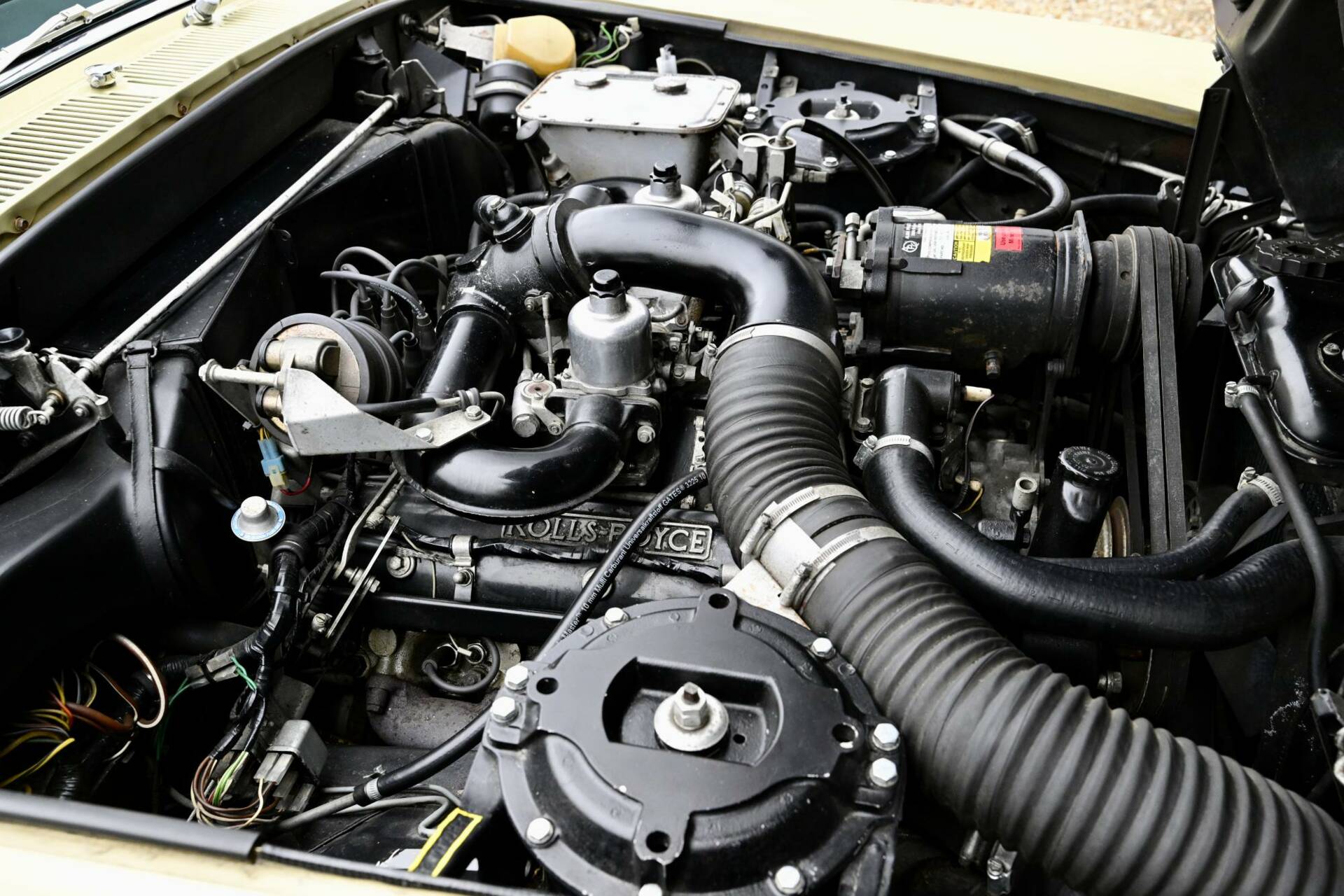 This Silver Shadow 2 is finished in its original colours of dark olive green over willow gold. To the interior is beige leather along with matching carpets & deep pile over rugs. The car has always resided in a garage & consequently is beautifully preserved & corrosion free. Under the bonnet the engine bay is well detailed with everything as it ought to be & no corrosion or furring to the turret bolt heads etc.