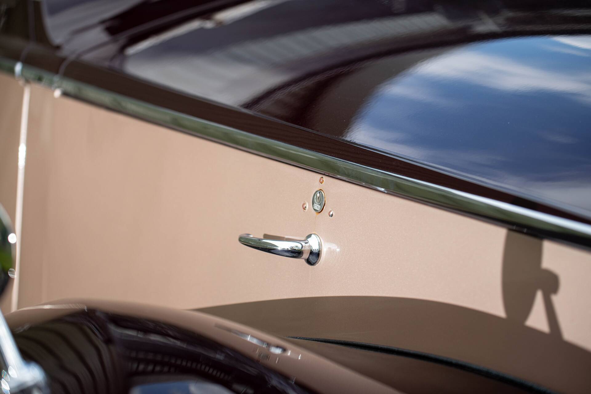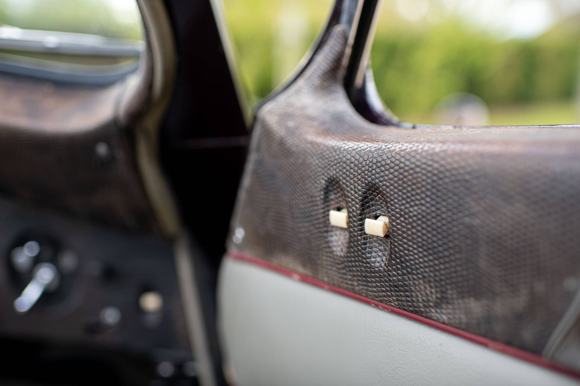 This 1953 Silver Wraith (chassis ALW 47) features a smooth 4½ litre straight-six engine and mechanical innovations such as an optional automatic transmission for the period. Its Hooper Sedanca de Ville body allowed the chauffeur's roof section to retract, creating an open-air sensation for the front compartment - a design both sophisticated and whimsical for its time. The interior is sumptuously appointed, with reclining rear seats trimmed in fine cloth, electric windows, air conditioning, and an electric division between driver and passengers. A distinctive touch is the use of exotic python snakeskin on parts of the dashboard and rear division, a signature of Gulbenkian's personal specifications.