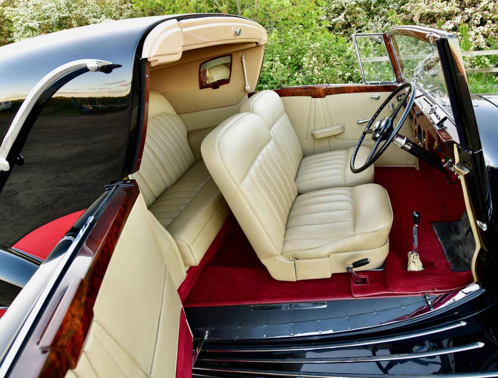 It is possiblly the finest condition pre war Rolls Royce or Bentley we have ever handled & wears drop dead gorgeous coachwork in the form of a sedanca coupe by Gurney Nutting. The roof glides open after releasing two fornt catches & stows in a recess to the rear of the roof. A full tool kit is located in the boot on a fold out tray.