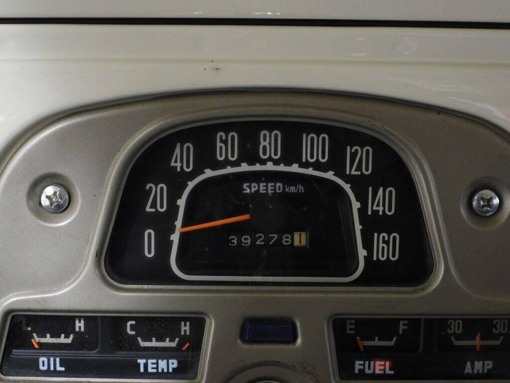 Sedili e pannelli in sky grigio con poggiatesta anteriore lato guida e passeggero, Panche laterali per sedili posteriori, Moquette in bouclet beige al pavimento, Volante a tre razze originale dell’epoca, Gancio traino, Ruota di scorta posteriore, Pedana posteriore, Specchietti esterni cromati, Verricello anteriore, 3 marce con ridotte, Fari supplementari di profondita’ ai parafanghi anteriori