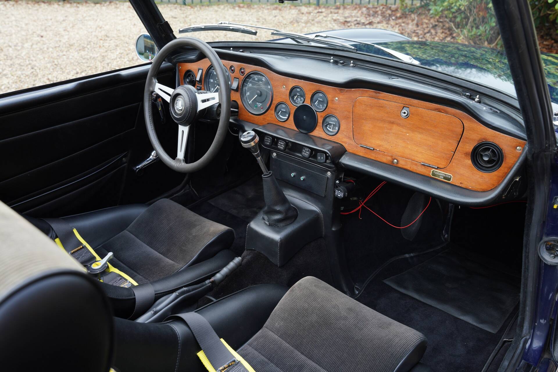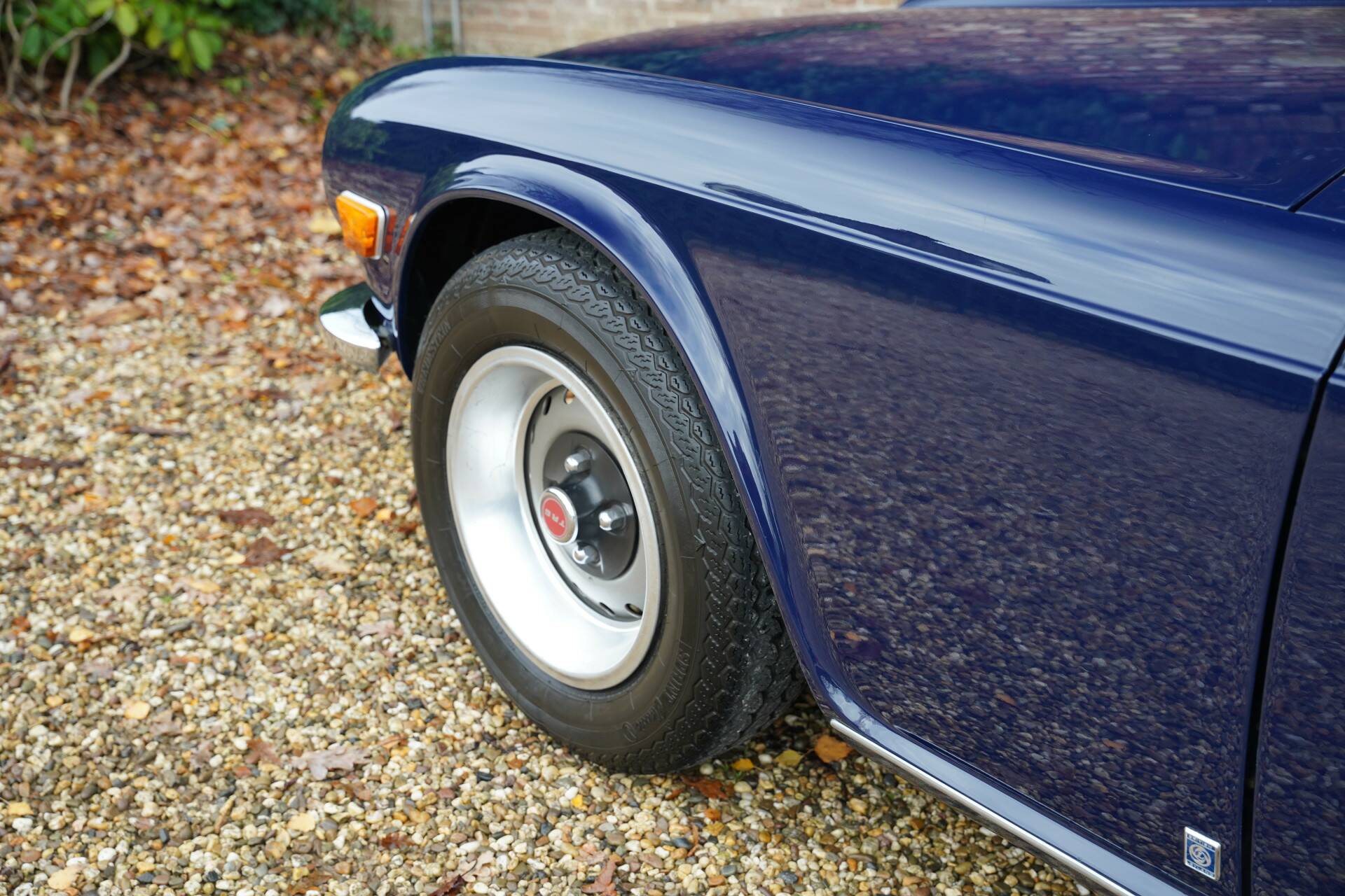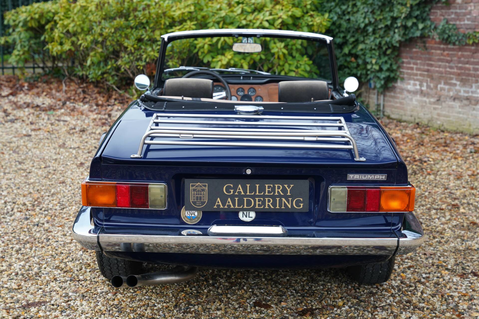 Der geschmackvolle dunkelblaue TR befindet sich seit 2001 in den Niederlanden und hatte in dieser Zeit drei Besitzer, von denen zwei ihn seit mehr als zehn Jahren im Besitz hatten. Alle echte Liebhaber, die das Auto geschätzt und sorgfältig gepflegt haben. Der Triumph ist ein echtes Fahrerauto, das Sportlichkeit und Fahrspaß perfekt miteinander verbindet. Das Auto wird von einem 2.5 Liter 6-Zylindermotor angetrieben, der 150 PS leistet und einen großartigen Sound hat. Der Motor ist mit einem 4-Gang Schaltgetriebe und in diesem Fall dem optionalen und beliebten Overdrive gekoppelt. Damit ist er sowohl ein Auto für sportliche Tourenfahrten als auch für den Besuch ferner Urlaubsziele.