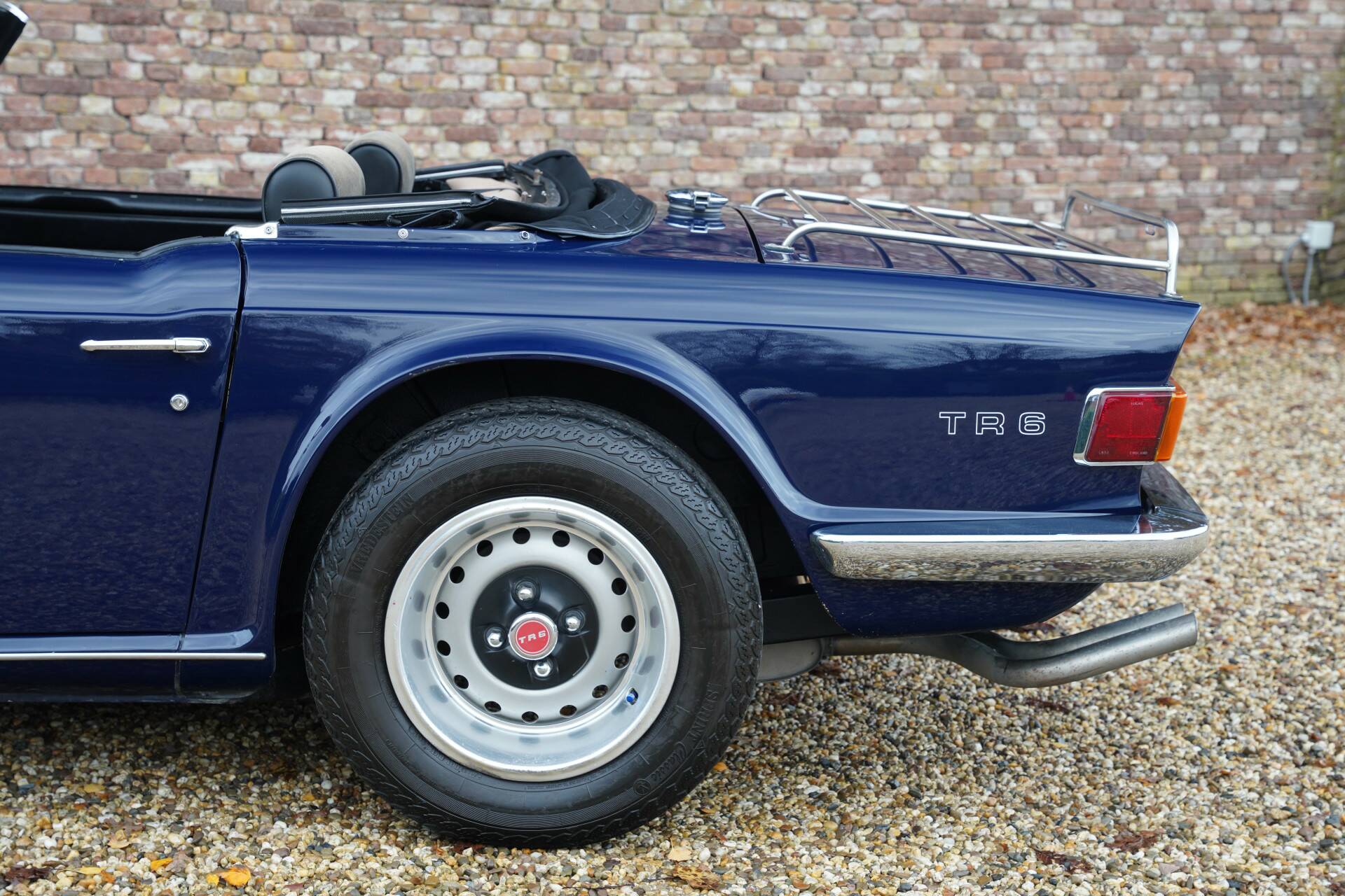 Triumph TR6 "Body-off" restored and mechanically rebuilt condition, Appreciated Royal Blue color scheme, Equipped with the double SU carburetors, Prepared for both tour rallies or modest road use, At the time in the media: "the TR6 is one of the most most responsive sports cars in the world", A fine TR6 with the right characteristics