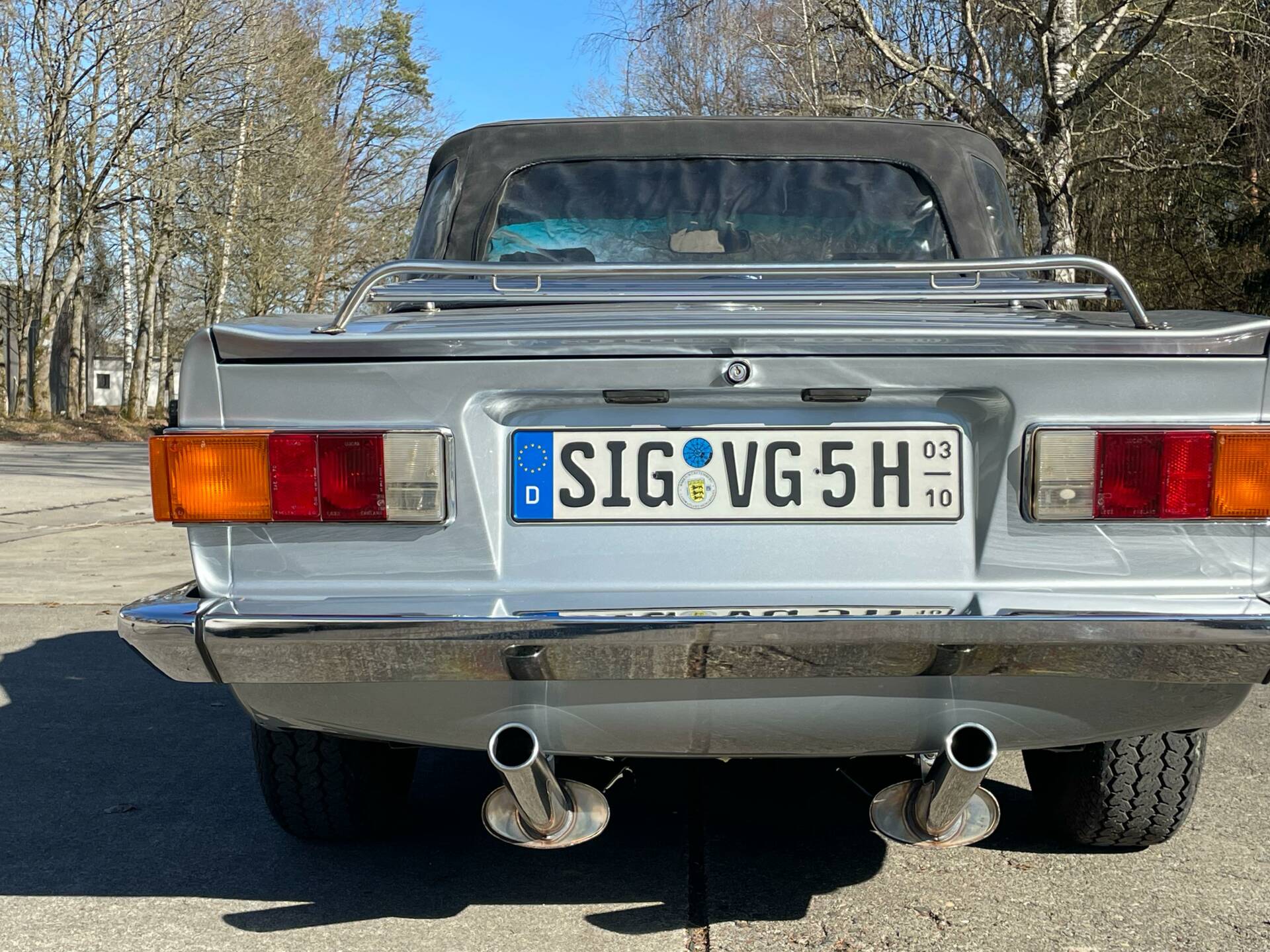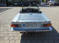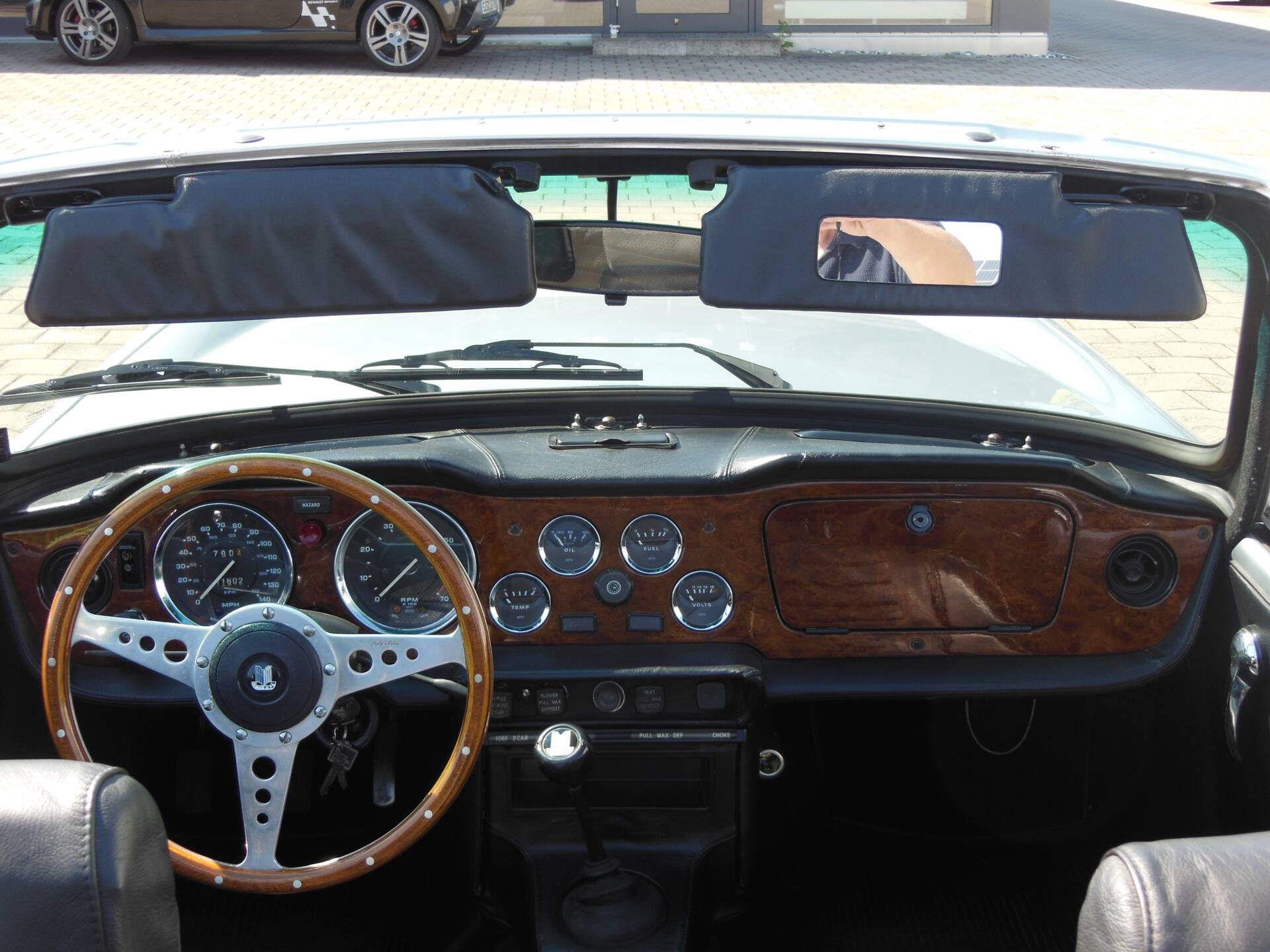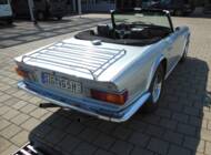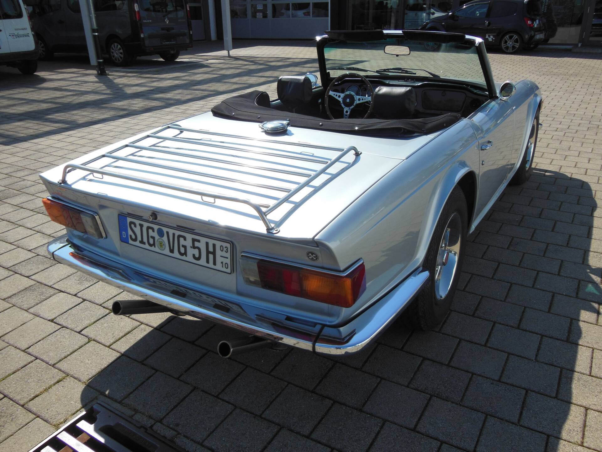 Exterieur Das hier angebotene Fahrzeug besticht durch eine attraktive silber-metallic Lackierung, die dem TR6 eine elegante und gleichzeitig sportliche Note verleiht – eine Farbkombination, die vor allem bei Sammlern und Liebhabern authentischer Präsentation hoch im Kurs steht. Der Karosseriezustand wird als rostfrei beschrieben; dies ist besonders bemerkenswert, da viele TR6 aus feuchteren Regionen Europas im Laufe der Jahrzehnte unter Korrosion gelitten haben.