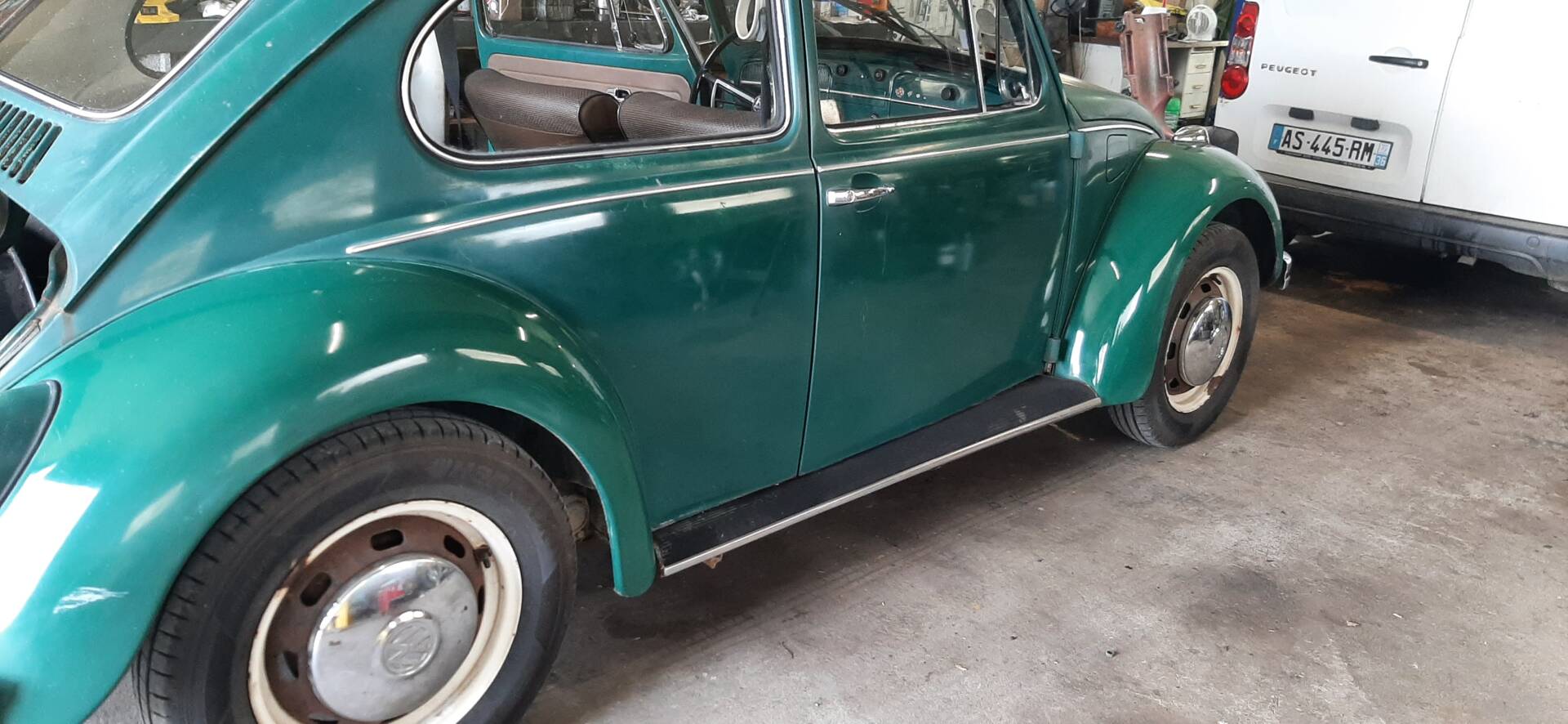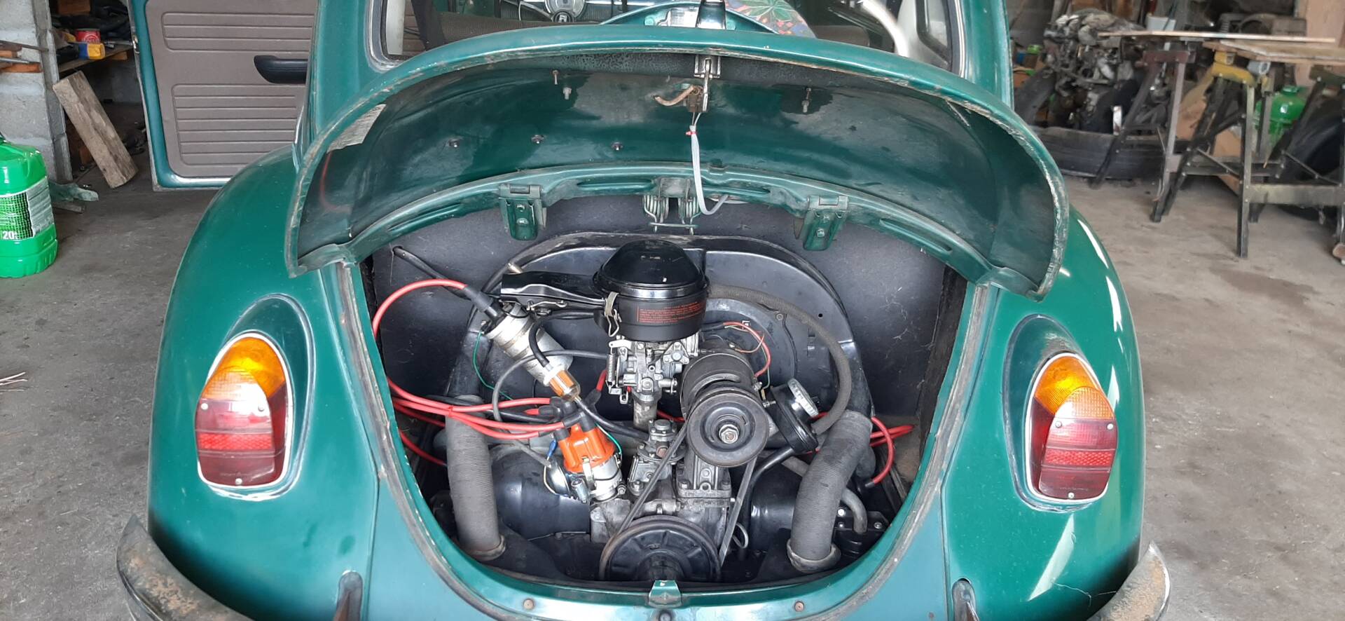 Der Motorraum ist vollständig, übersichtlich und entspricht der originalen 1300-Konfiguration.