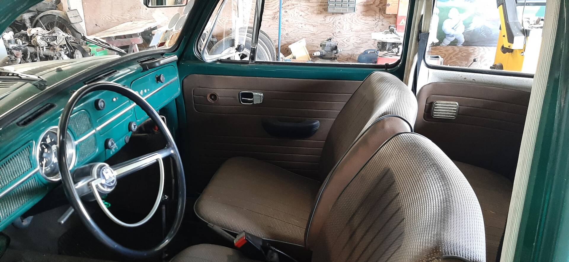 Der Innenraum ist vollständig und homogen erhalten. Sitze und Verkleidungen entsprechen der Epoche und weisen eine normale Gebrauchspatina auf. Armaturenbrett, Instrumente und Bedienelemente sind original und funktional.