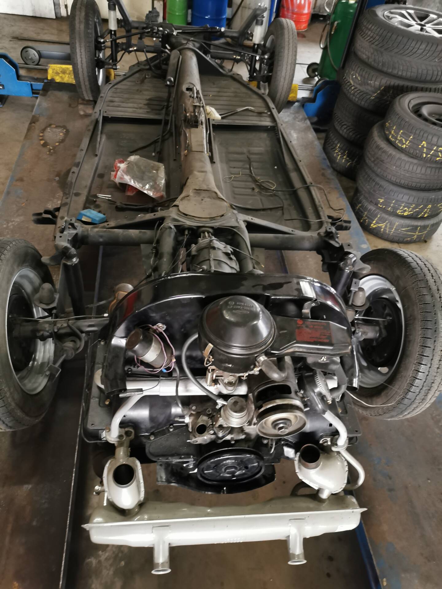 • Blecharbeiten: Komplette Erneuerung von Kotflügeln, Bodengruppe, Front- und Heckblechen sowie der inneren und äußeren Holme.