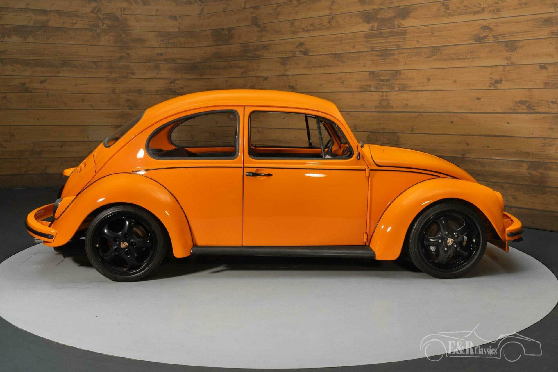 Het uiterlijk van deze VW Kever past ook helemaal bij zijn sportieve prestaties. Er is gekozen voor Porsche GT3 RS oranje, een geweldige combinatie met de zwarte Porsche velgen. Het donkere interieur en vloermatten met oranje piping maken er een mooi geheel van.