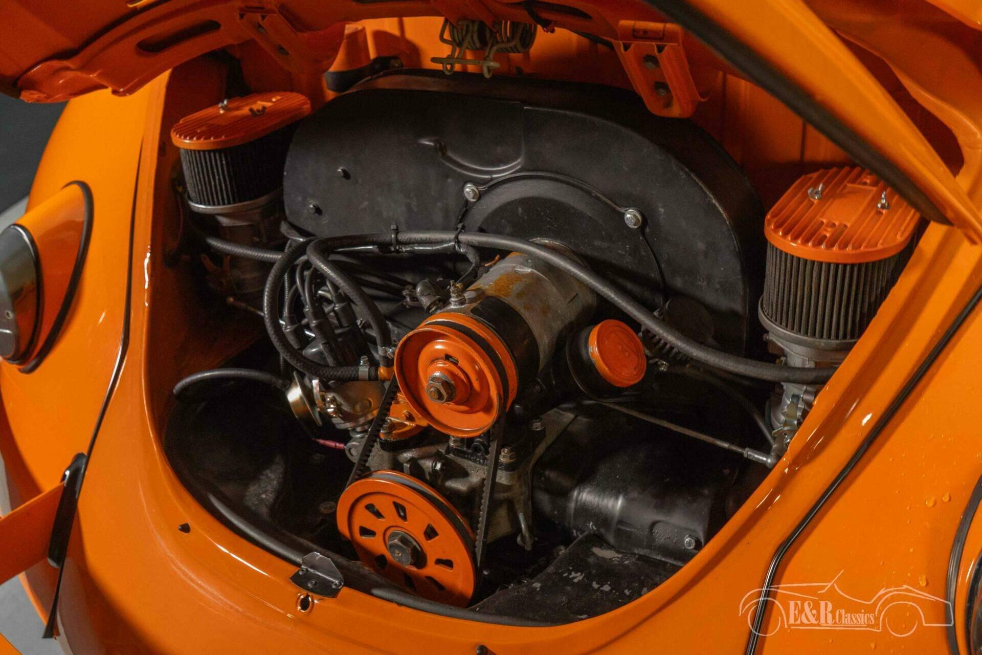 The list of upgrades on this Volkswagen Beetle is almost too long to mention. The Beetle is equipped with a revised gearbox, front and rear disc brakes, double Weber carburettors and a new wiring harness. The engine has 68 HP, which ensures a pleasant, sporty driving experience with a great sound.