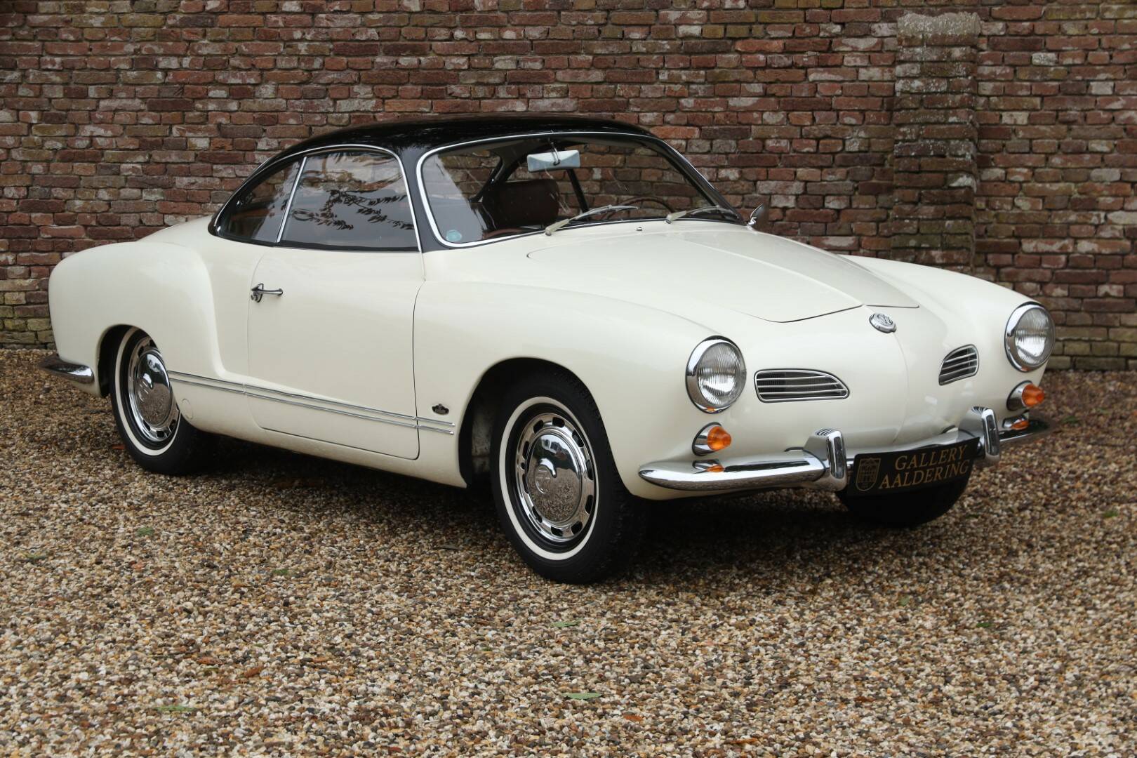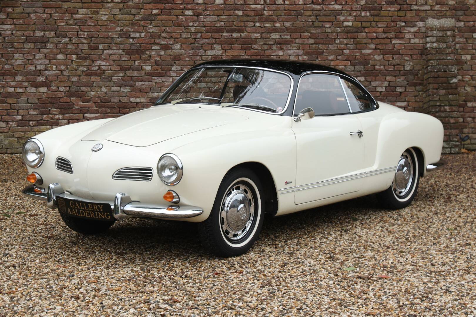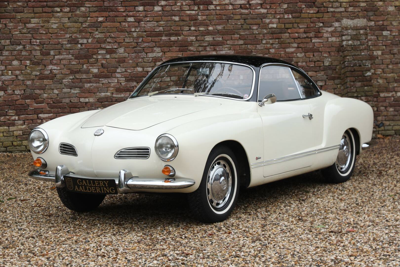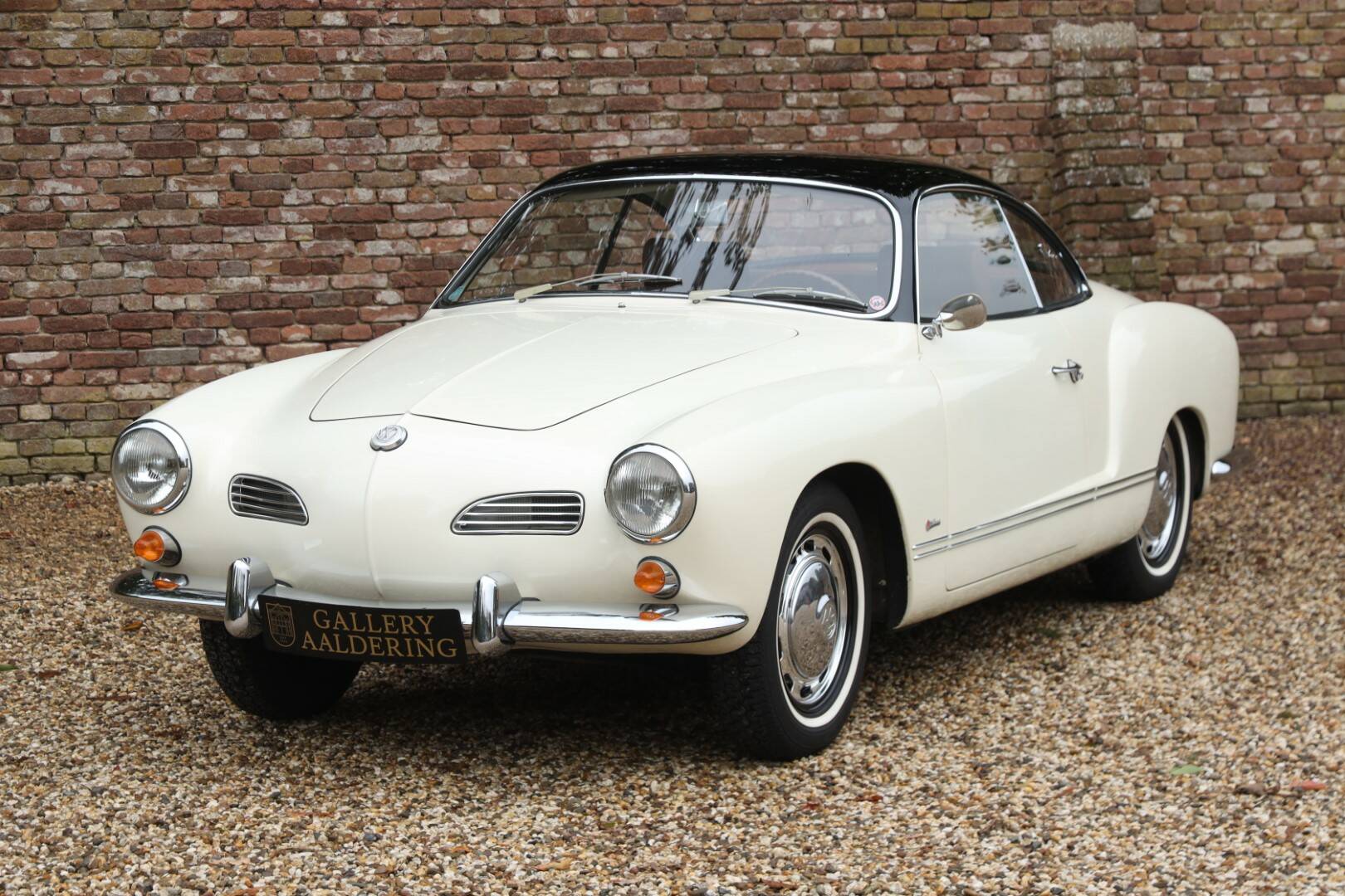 Volkswagen Karmann Ghia Coupé 1300 "Teak Edition" ONLY 17.000 KM! Original 17.000 kms, Equipped with the "Teak interior-option": Only available on the 1966 model, Unrestored "as new" condition: All parts 100% original and original paint, From the second owner - A private collector, Comes with great documentation such as the original vehicle "Pappbrief" and the original order certificate from 1965,In twotone Arcona white black