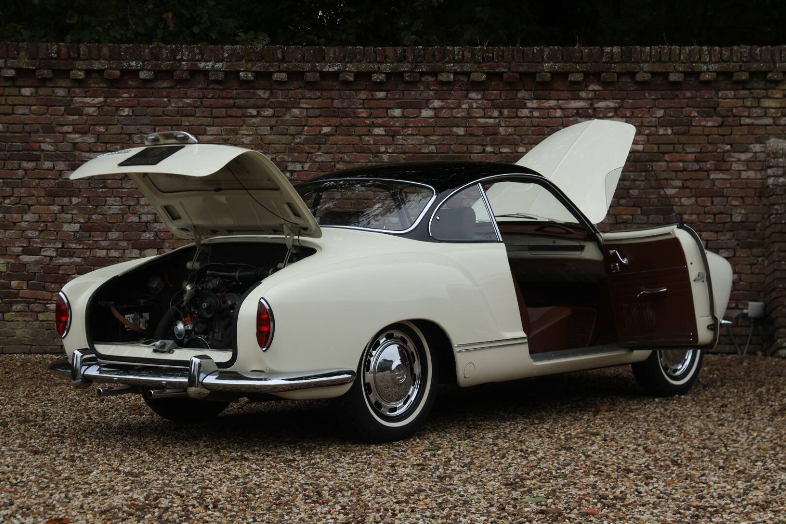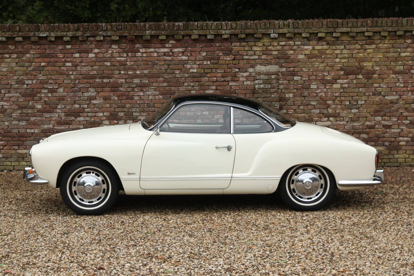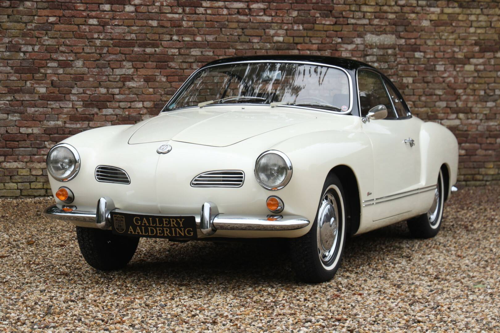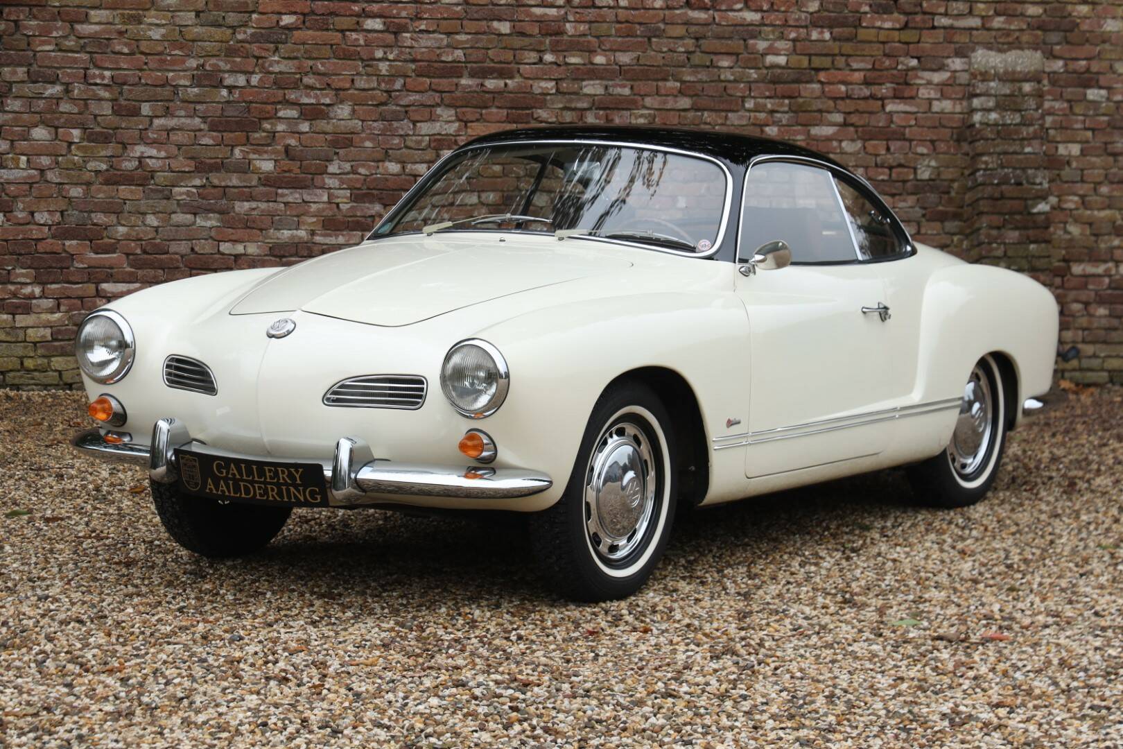 Volkswagen Karmann Ghia Coupé 1300 "Teak Edition" ONLY 17.000 KM! Original 17.000 kms, Equipped with the "Teak interior-option": Only available on the 1966 model, Unrestored "as new" condition: All parts 100% original and original paint, From the second owner - A private collector, Comes with great documentation such as the original vehicle "Pappbrief" and the original order certificate from 1965,In twotone Arcona white black