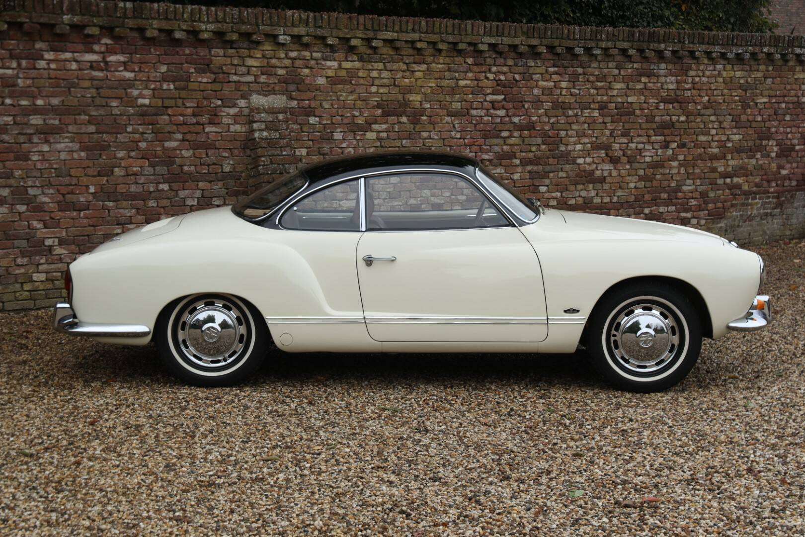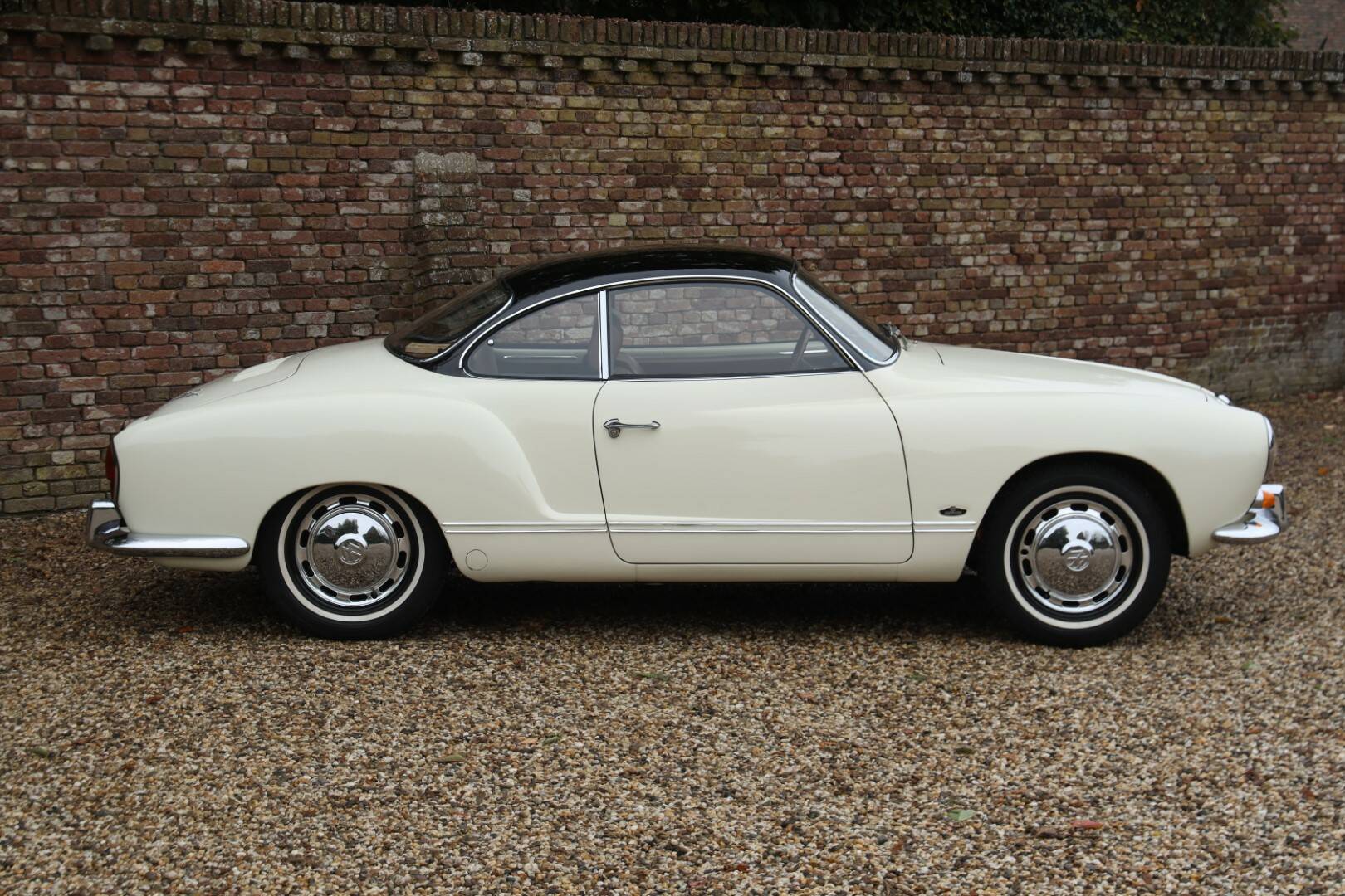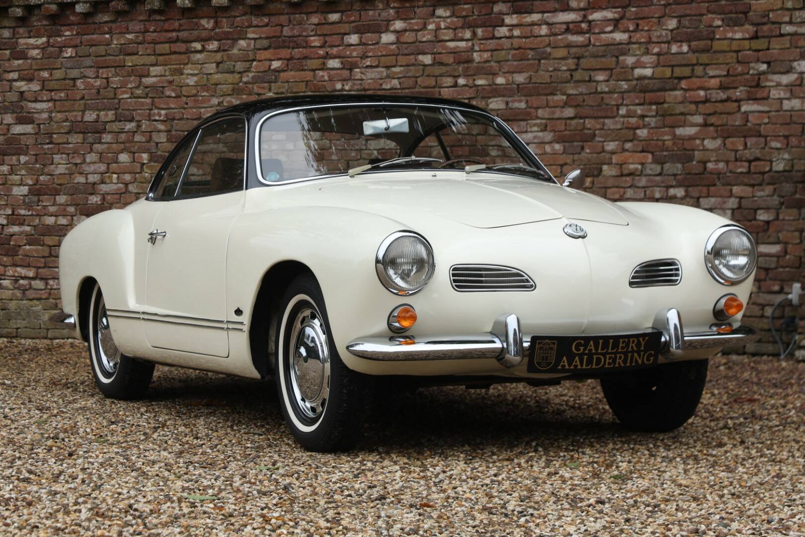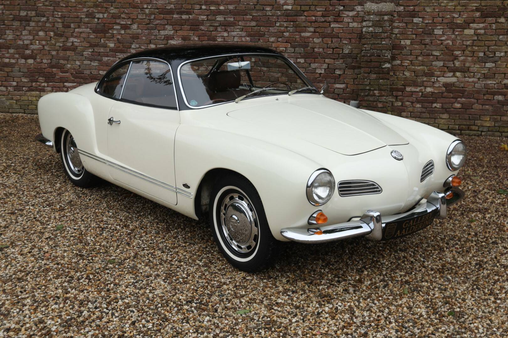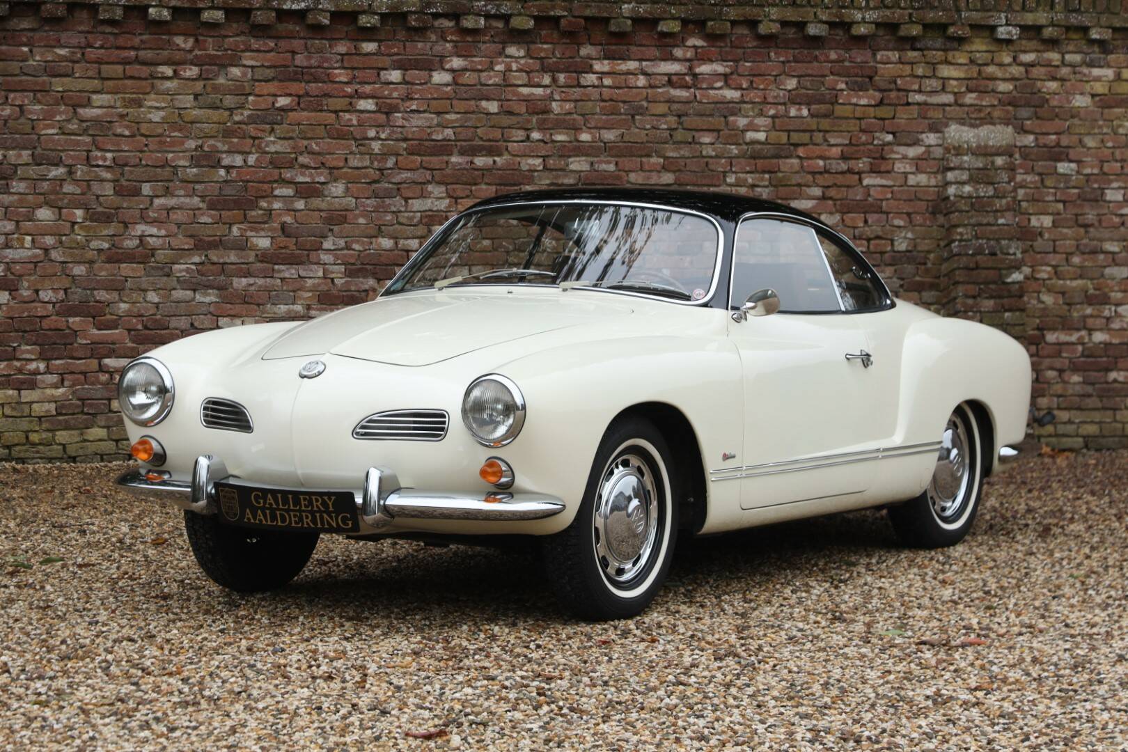 Volkswagen Karmann Ghia Coupé 1300 "Teak Edition" ONLY 17.000 KM! Original 17.000 kms, Equipped with the "Teak interior-option": Only available on the 1966 model, Unrestored "as new" condition: All parts 100% original and original paint, From the second owner - A private collector, Comes with great documentation such as the original vehicle "Pappbrief" and the original order certificate from 1965,In twotone Arcona white black