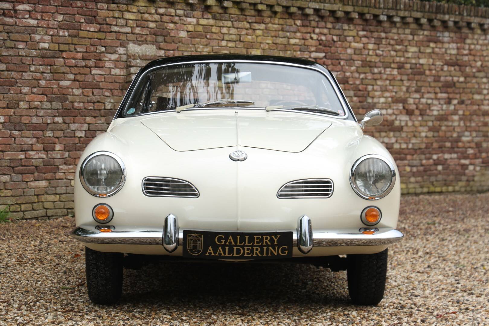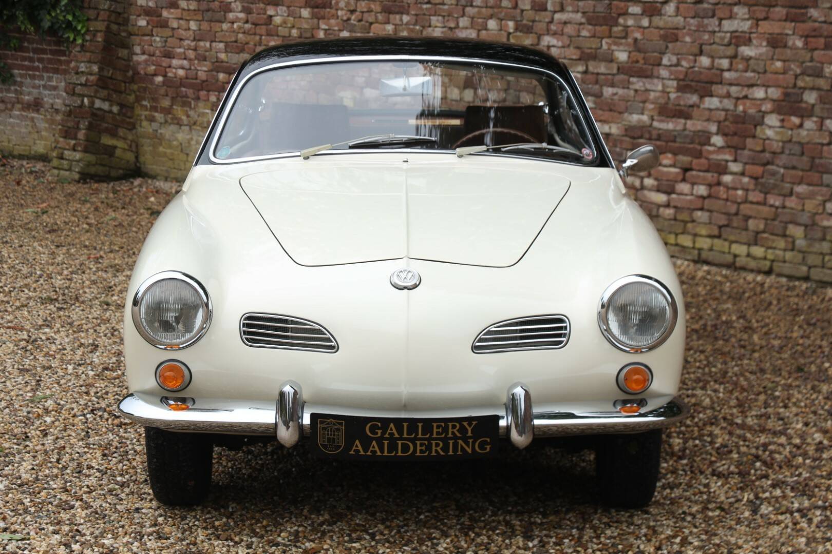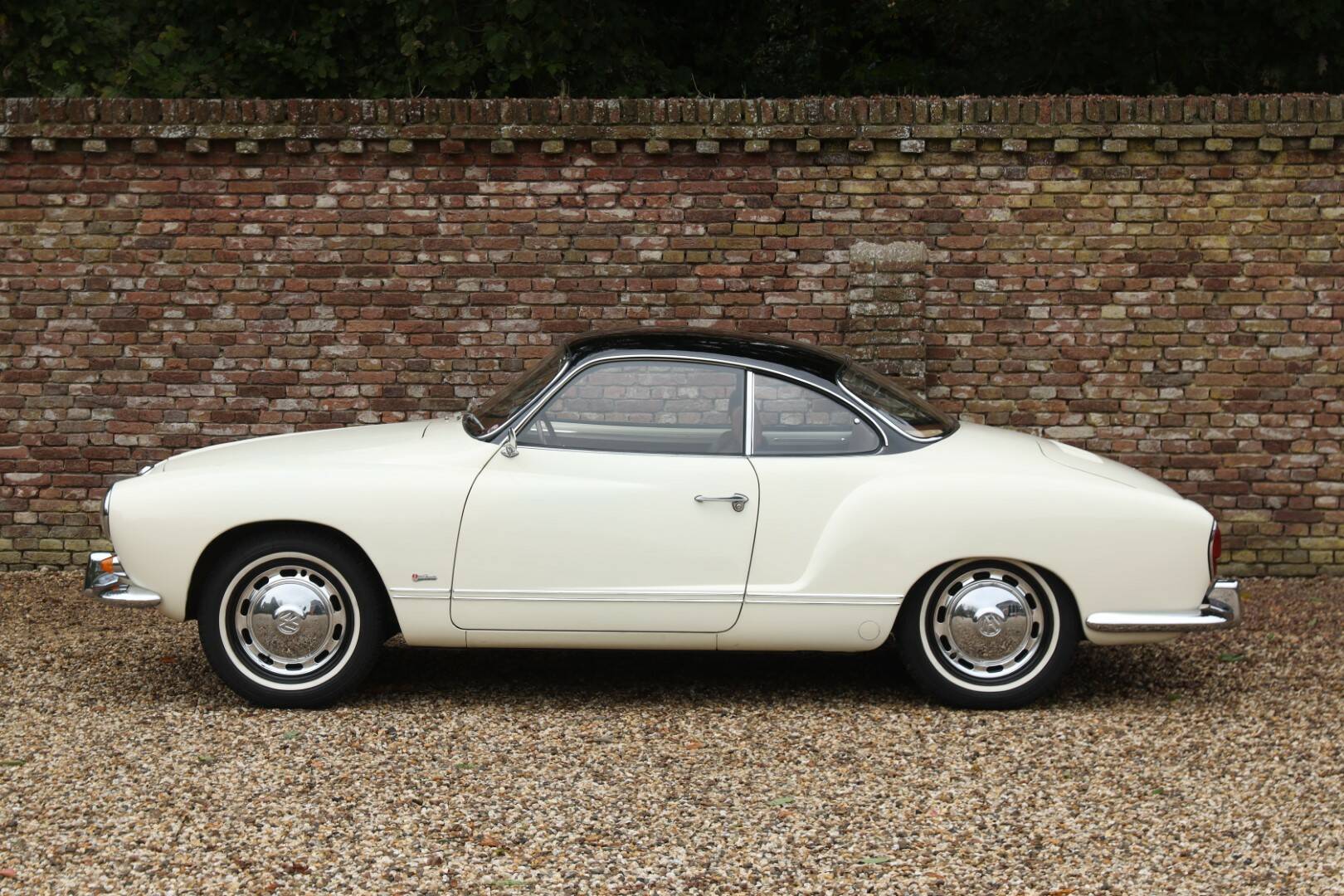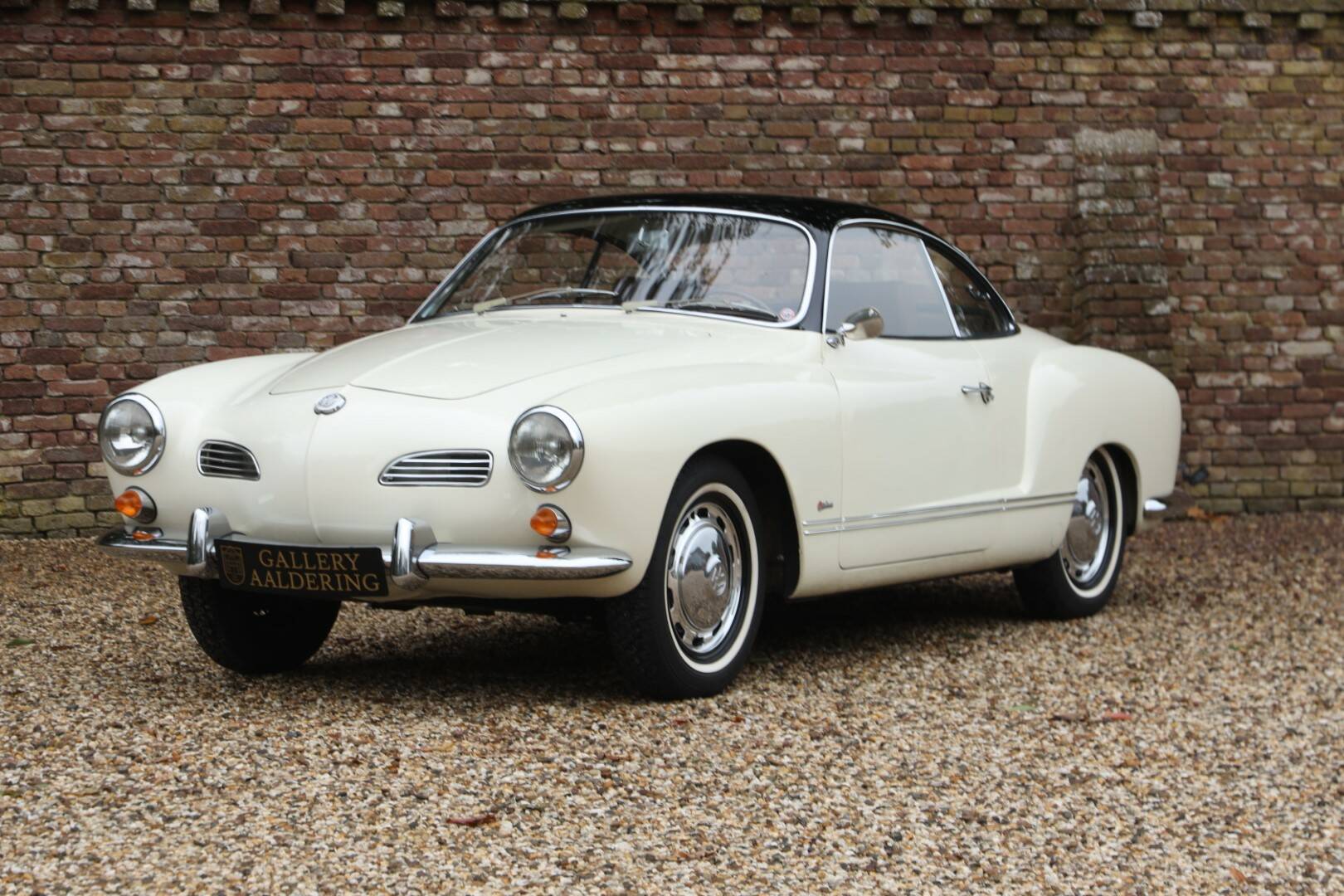 Volkswagen Karmann Ghia Coupé 1300 "Teak Edition" ONLY 17.000 KM! Original 17.000 kms, Equipped with the "Teak interior-option": Only available on the 1966 model, Unrestored "as new" condition: All parts 100% original and original paint, From the second owner - A private collector, Comes with great documentation such as the original vehicle "Pappbrief" and the original order certificate from 1965,In twotone Arcona white black