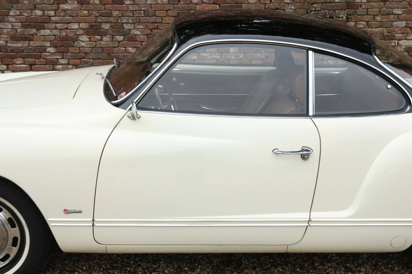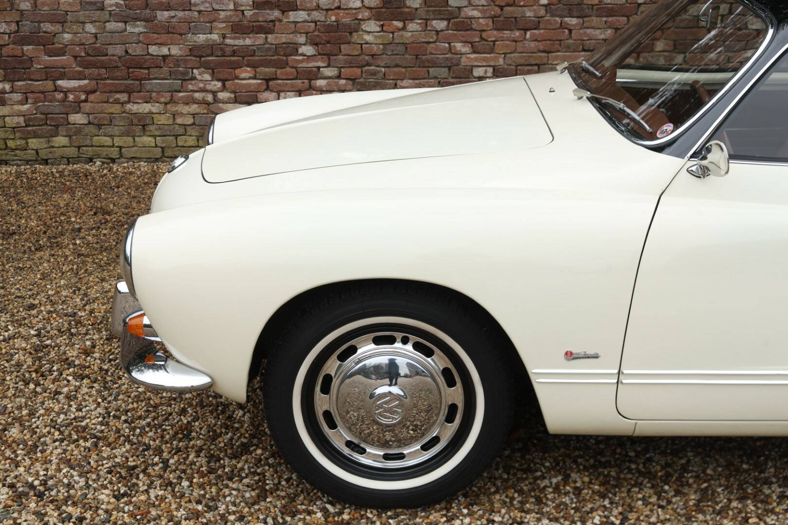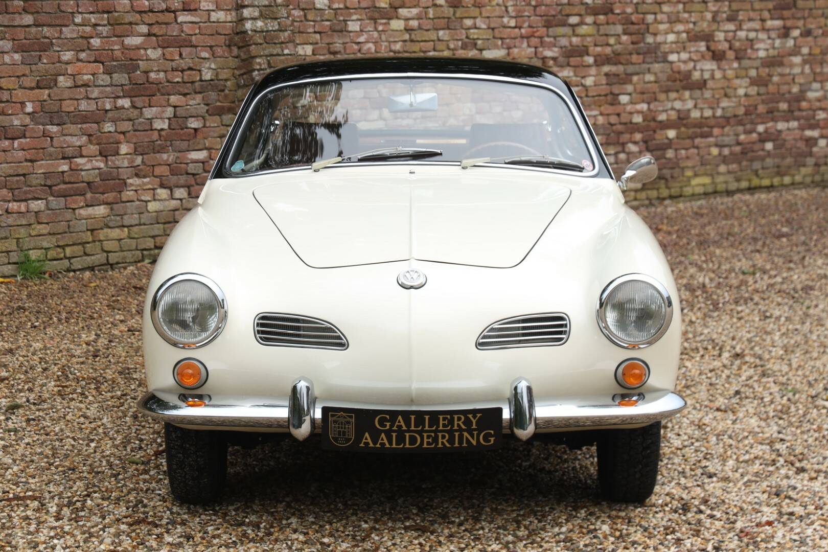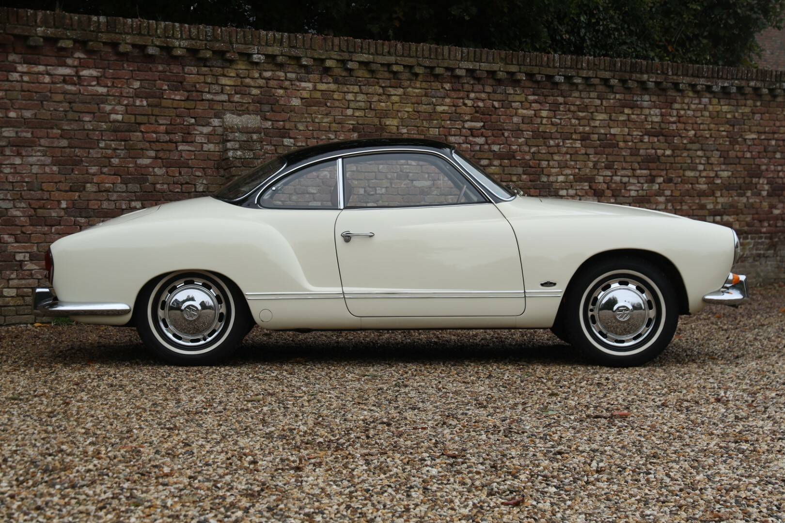Volkswagen Karmann Ghia Coupé 1300 "Teak Edition" ONLY 17.000 KM! Original 17.000 kms, Equipped with the "Teak interior-option": Only available on the 1966 model, Unrestored "as new" condition: All parts 100% original and original paint, From the second owner - A private collector, Comes with great documentation such as the original vehicle "Pappbrief" and the original order certificate from 1965,In twotone Arcona white black