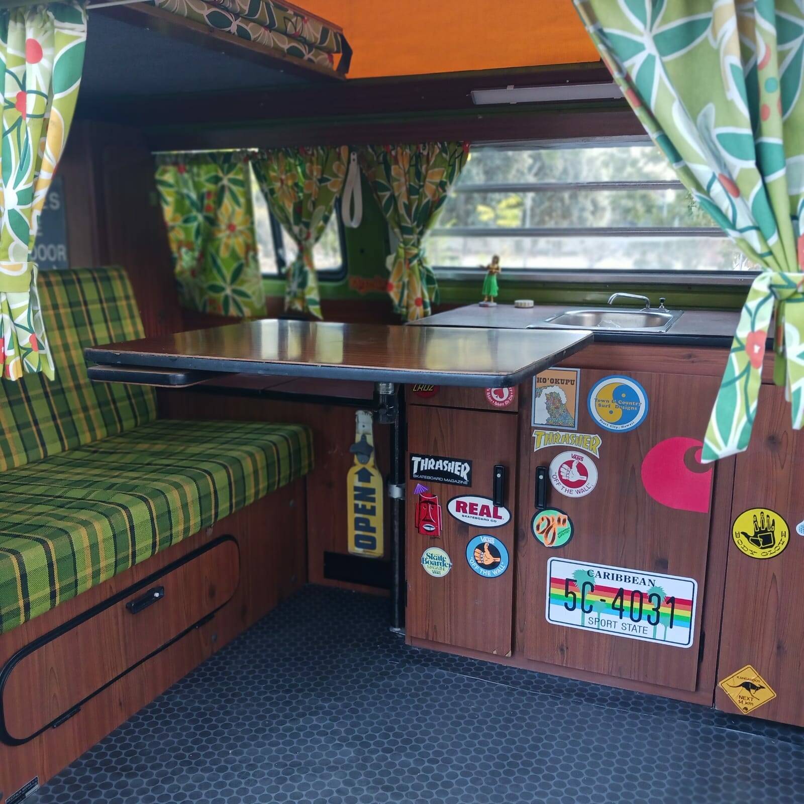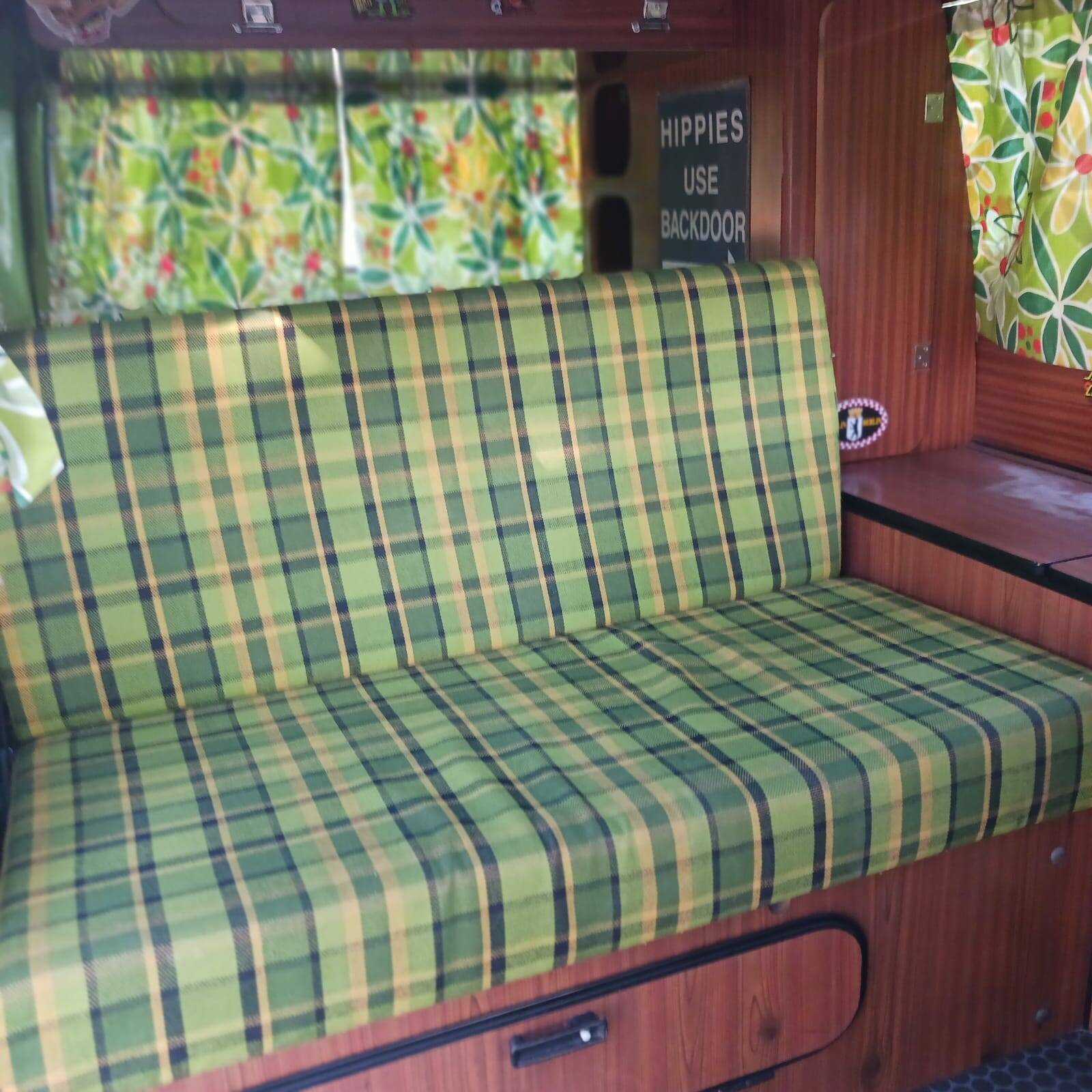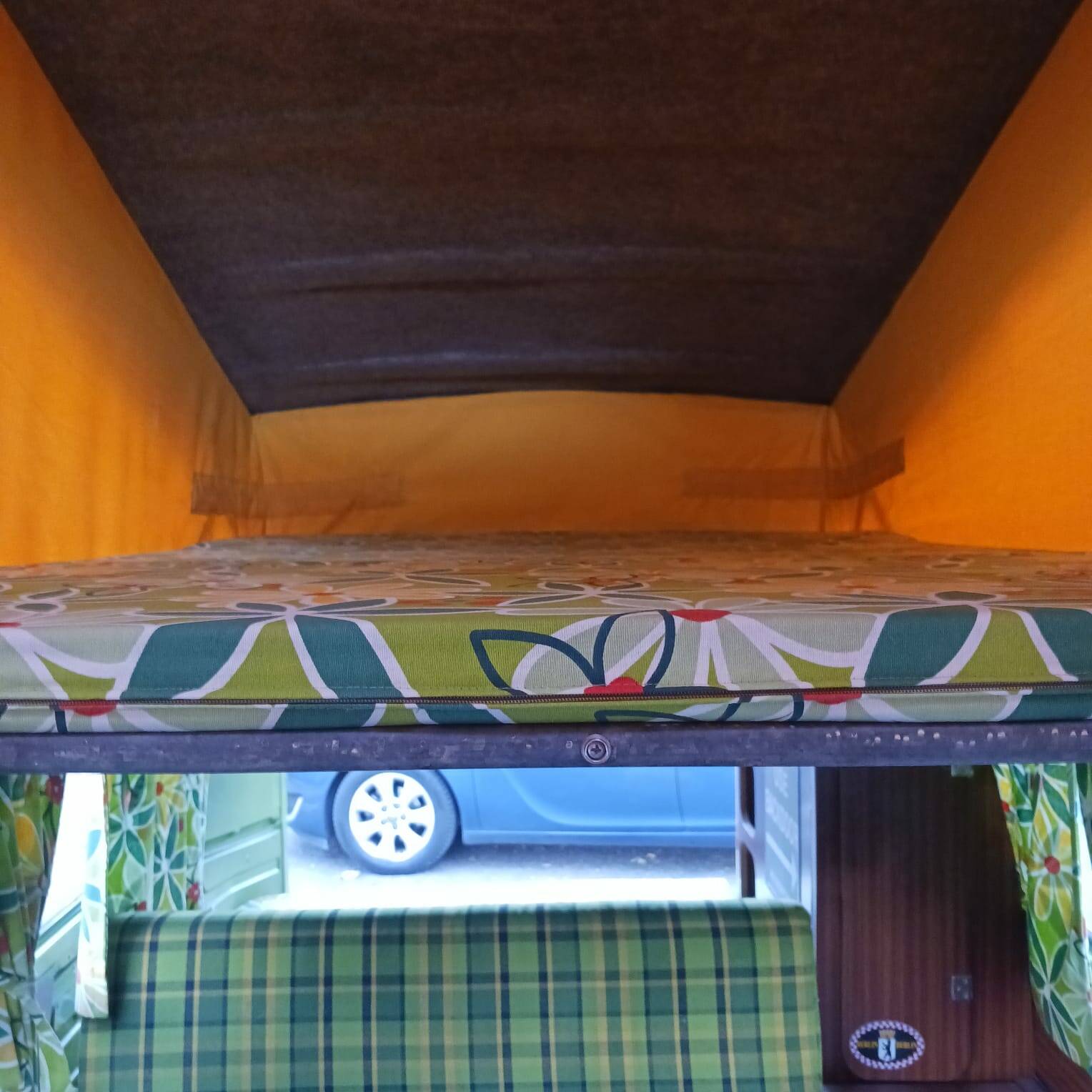 O interior, o estofamento e os móveis são originais e muito bem conservados, assim como o teto elevável, a cama, a lona e os acessórios.