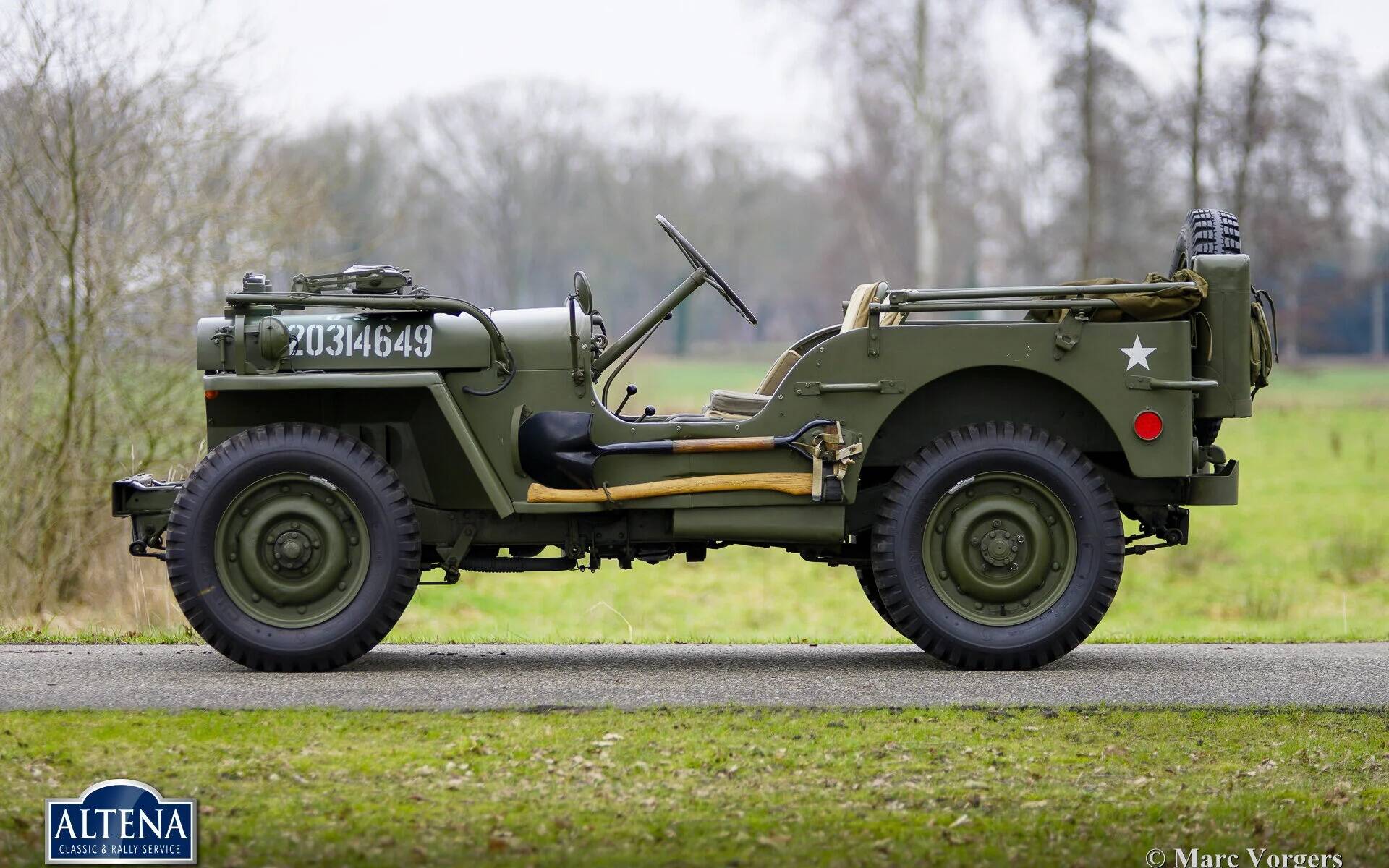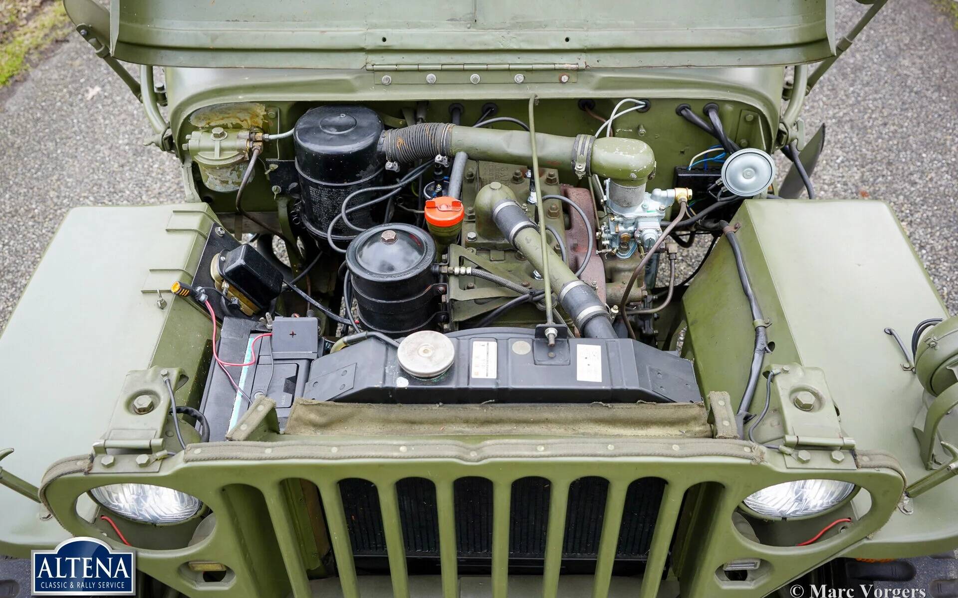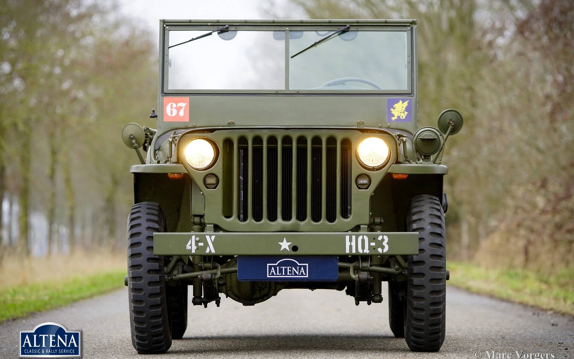 Willys MB Jeep, built in 1944. Color: army green combined with light green/beige canvas seats and loose black carpet. This Willys MB Jeep is an original 1944 example in very good and complete condition! The car has fantastic details (including a rifle in the correct place) and drives excellently! This Willys Jeep was imported from California to Germany in 2002. The car was thoroughly restored in Germany. Last year, the Jeep was fully updated by Altena Classic Service. The cost of this extensive service was €7.500. The car comes with the correct paperwork for registration. A very well-maintained example!