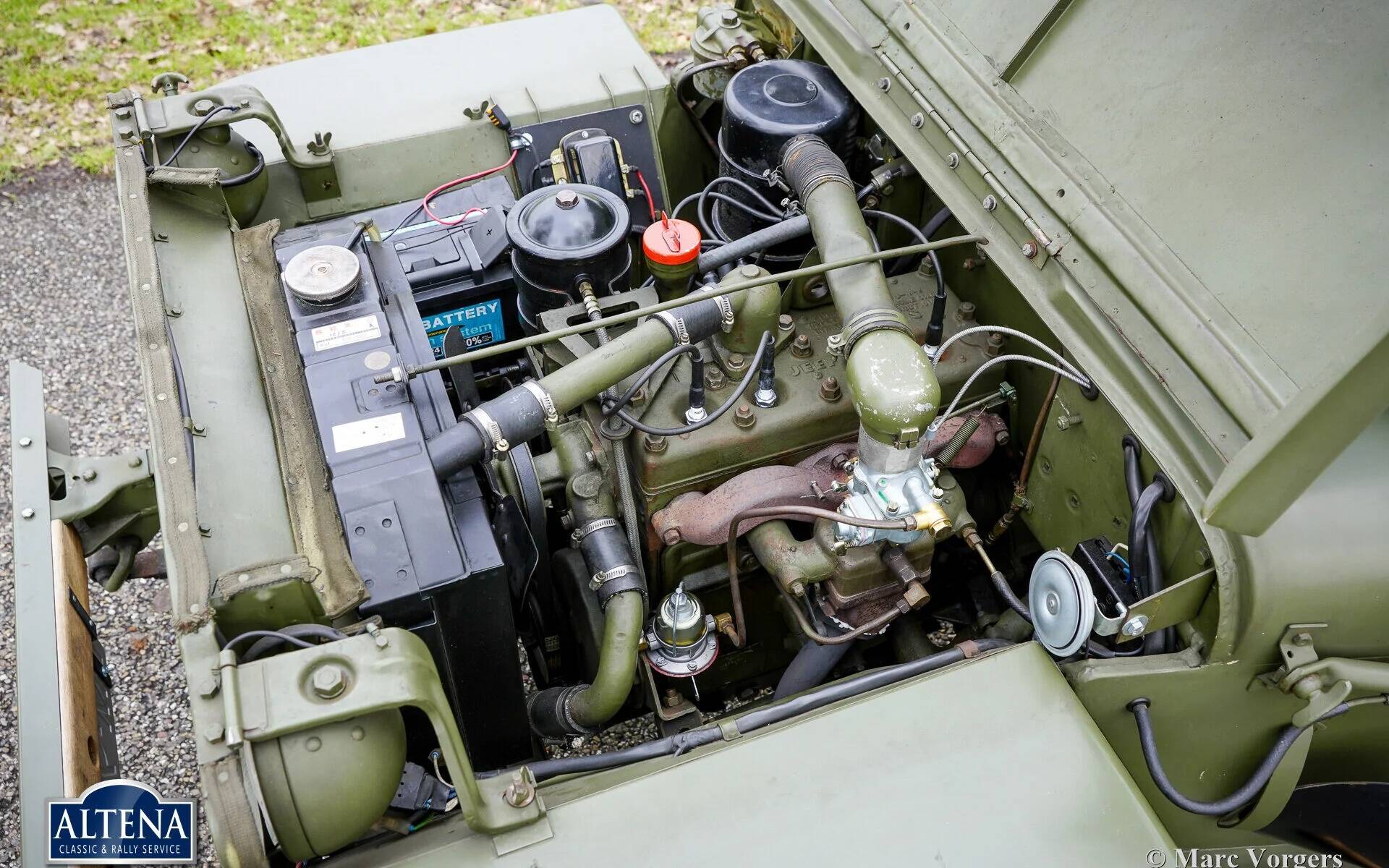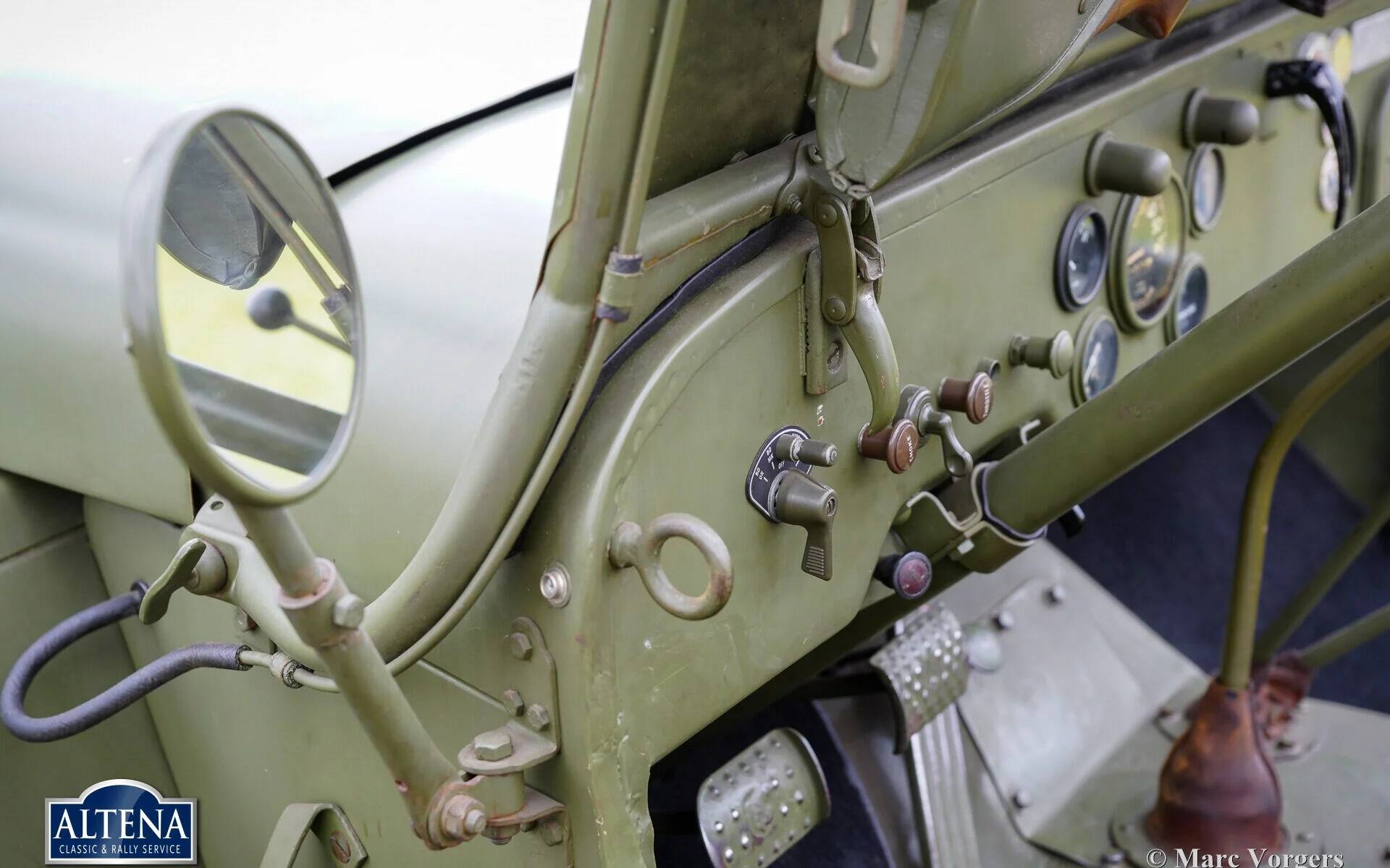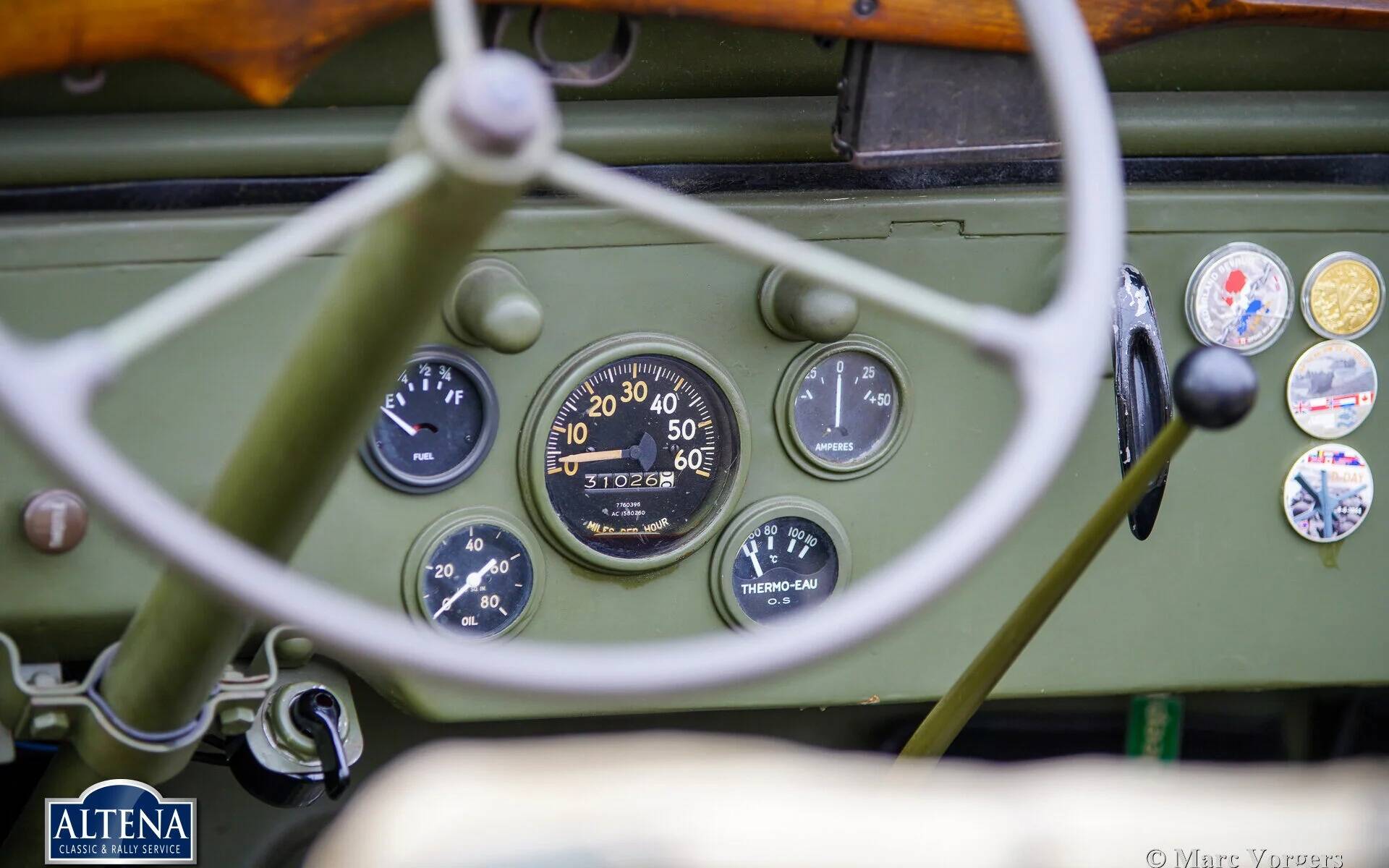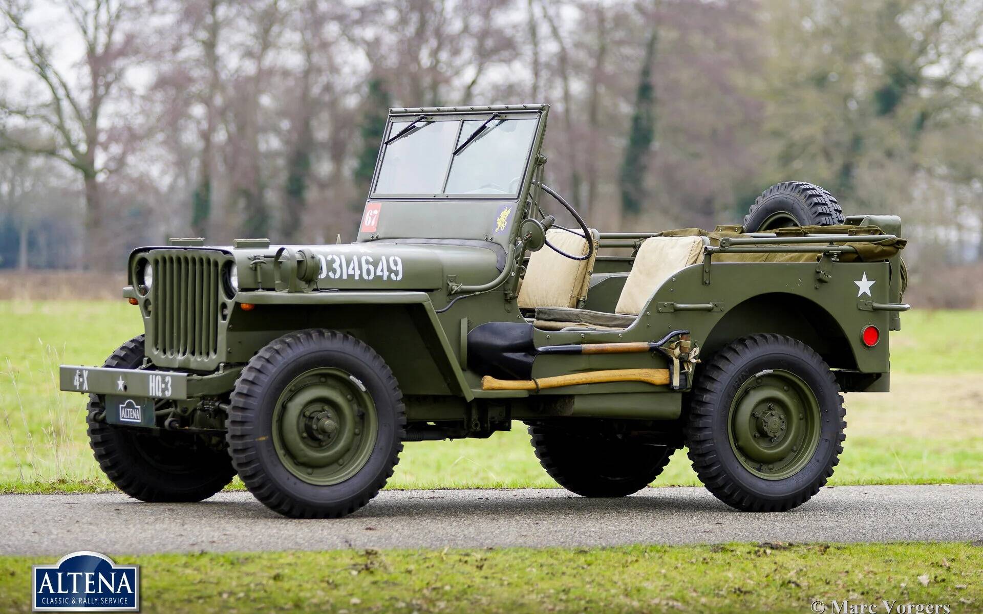Willys MB Jeep, built in 1944. Color: army green combined with light green/beige canvas seats and loose black carpet. This Willys MB Jeep is an original 1944 example in very good and complete condition! The car has fantastic details (including a rifle in the correct place) and drives excellently! This Willys Jeep was imported from California to Germany in 2002. The car was thoroughly restored in Germany. Last year, the Jeep was fully updated by Altena Classic Service. The cost of this extensive service was €7.500. The car comes with the correct paperwork for registration. A very well-maintained example!