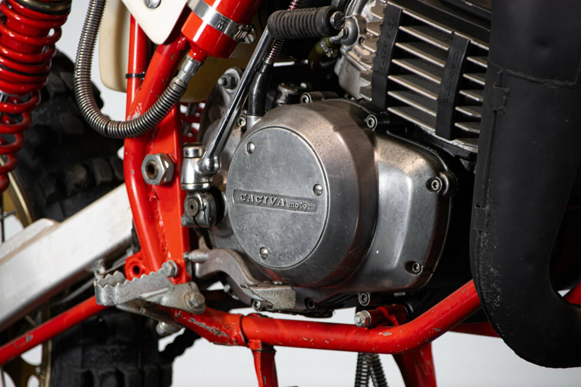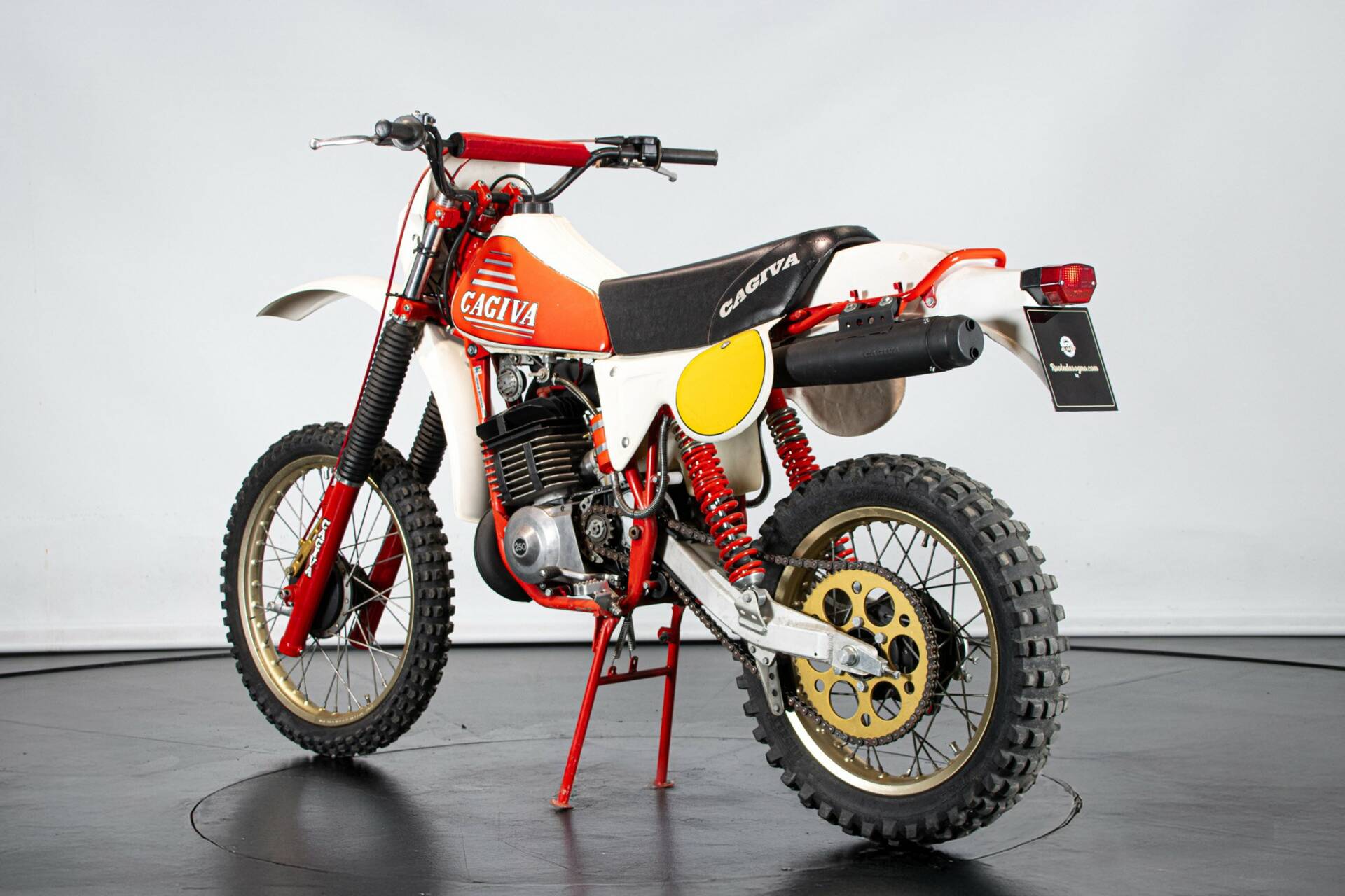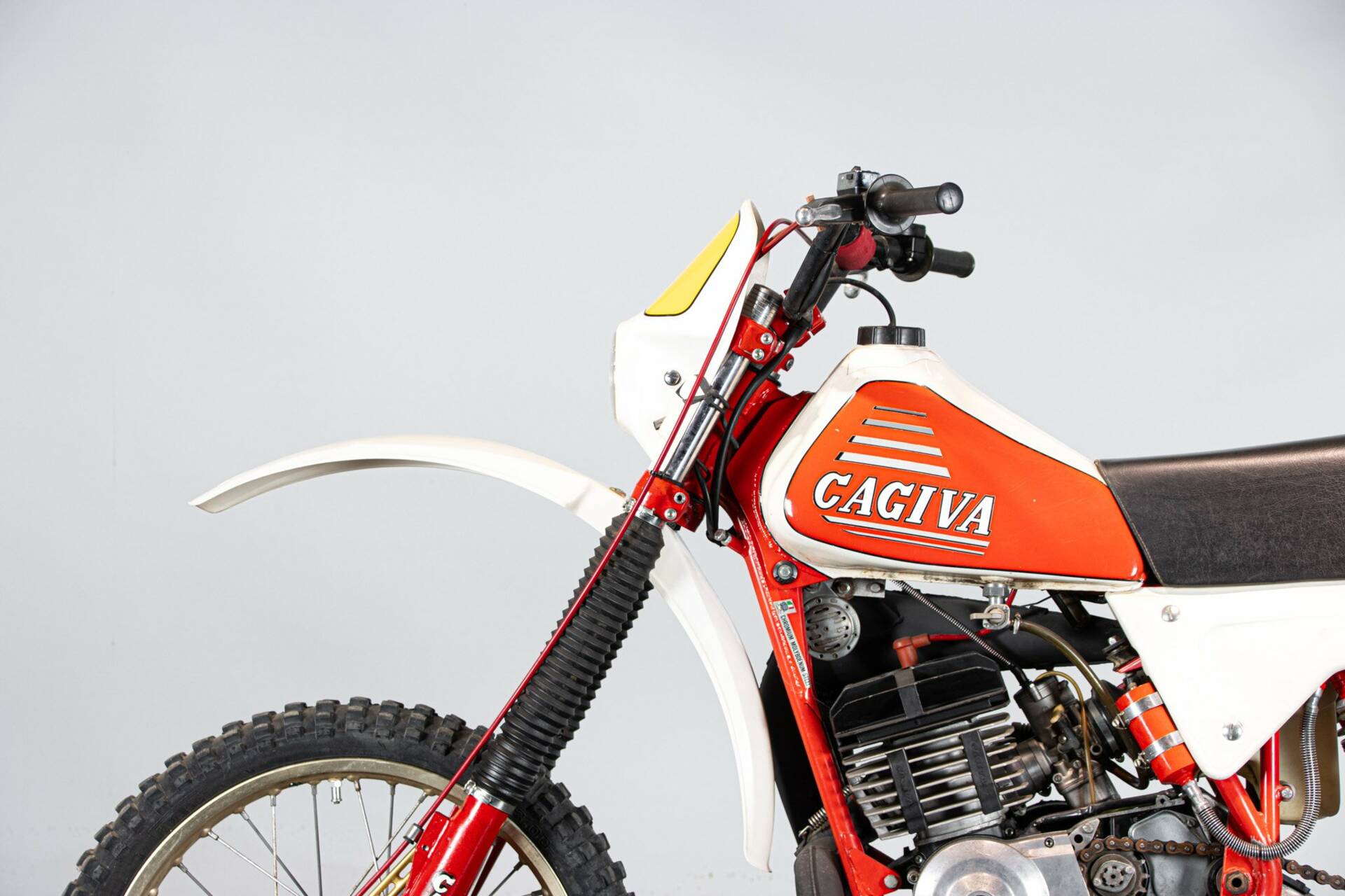 Presentata nel 1977 al salone di Milano, questo monocilindrico due tempi da 35 CV, originariamente in seno alla Harley davidson Aermacchi, viene ripreso dalla nuova gestione Cagiva (Castiglioni Giovanni Varese). Il progetto viene ripreso ed aggiornato in ogni aspetto. Linea moderna, componentistica di alto livello (Magura, Akront, Grimeca, Marzocchi, Sachs-ammortizzatori). La novità, rispetto al progetto originale, è il motore: monocilindrico, corsa corta, cambio ad innesti frontali: 32 CA a 8.000 giri. Ai tempi della presentazione era disponibile un kit fatto da cilindro, carburatore e scarico, capace di incrementare la potenza oltre i 36CV. Esemplare restaurato e da ammirare.