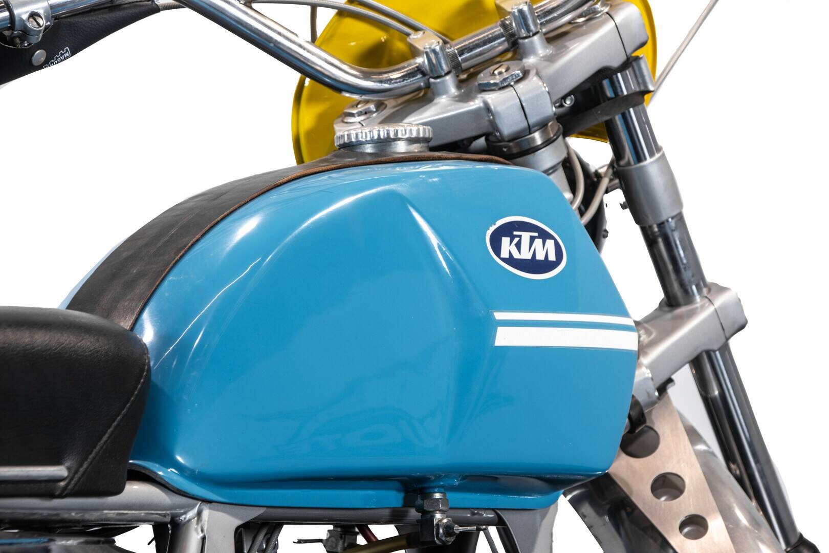 Nel 1972 KTM presenta la GS 175, una rivoluzione che non passa inosservata. Bastava guardare quell’espansione che gira alta e scompare tra motore e telaio per capirlo. Montando motori a due tempi particolarmente dopati, la marmitta doveva per forza essere panciuta.