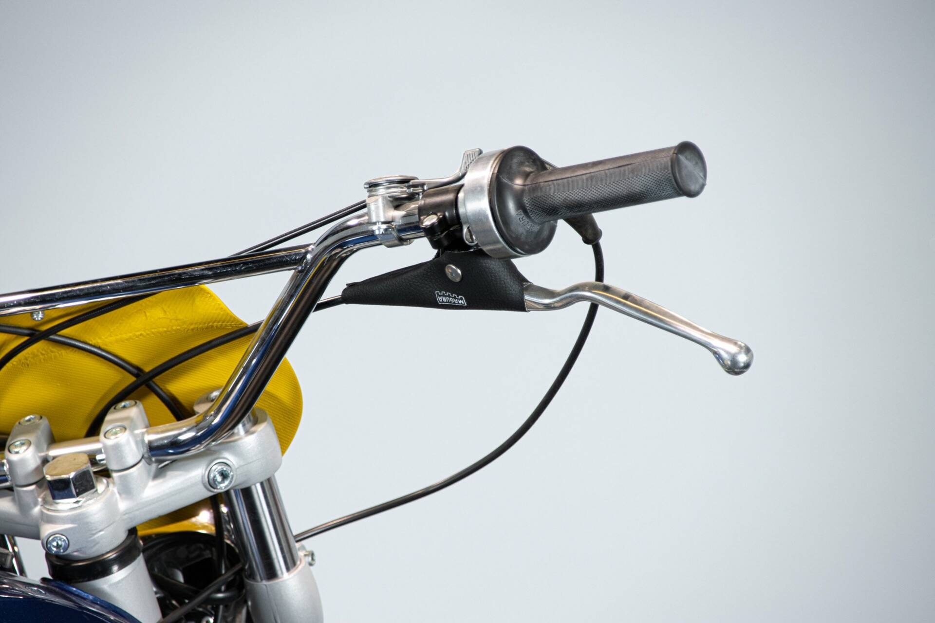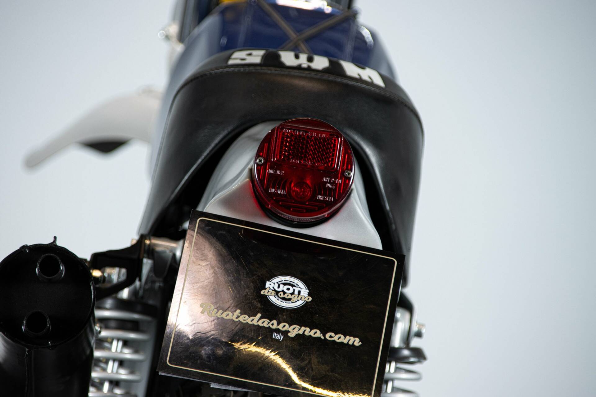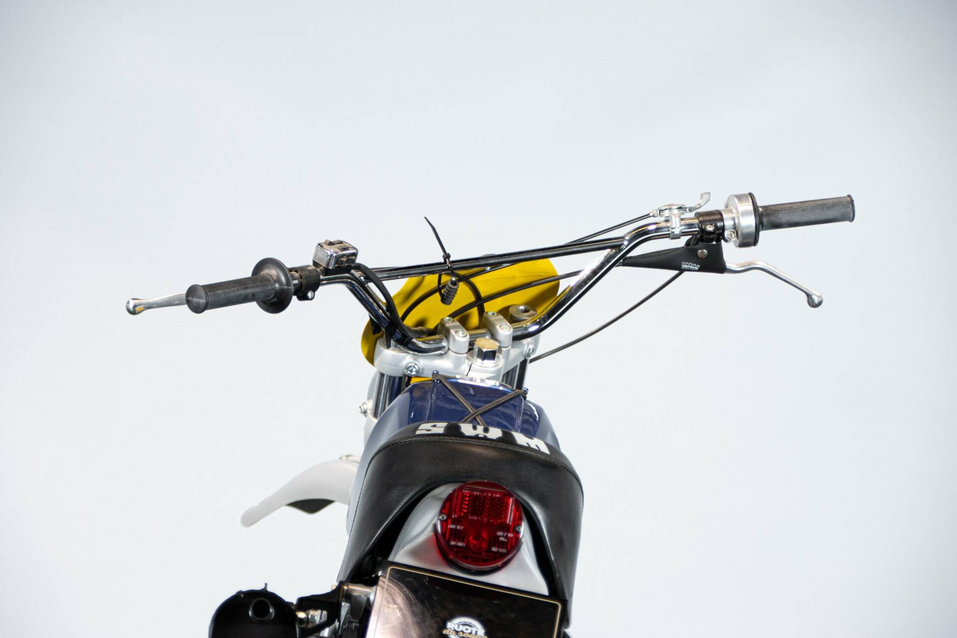 La SWM, casa di Rivolta d’adda, nota per la serie Silver Vase arriva ad un punto di svolta con la RS 125 GS. Motore Sachs (grazie ai fratelli Frigerio della PUCH-Frigerio), ciclistica rivista profondamente. Grande stabilità, ampia escursione degli ammortizzatori e motore che non si invasa, quindi fruibile ai bassi regimi. Esemplare restaurato, in perfette condizioni.