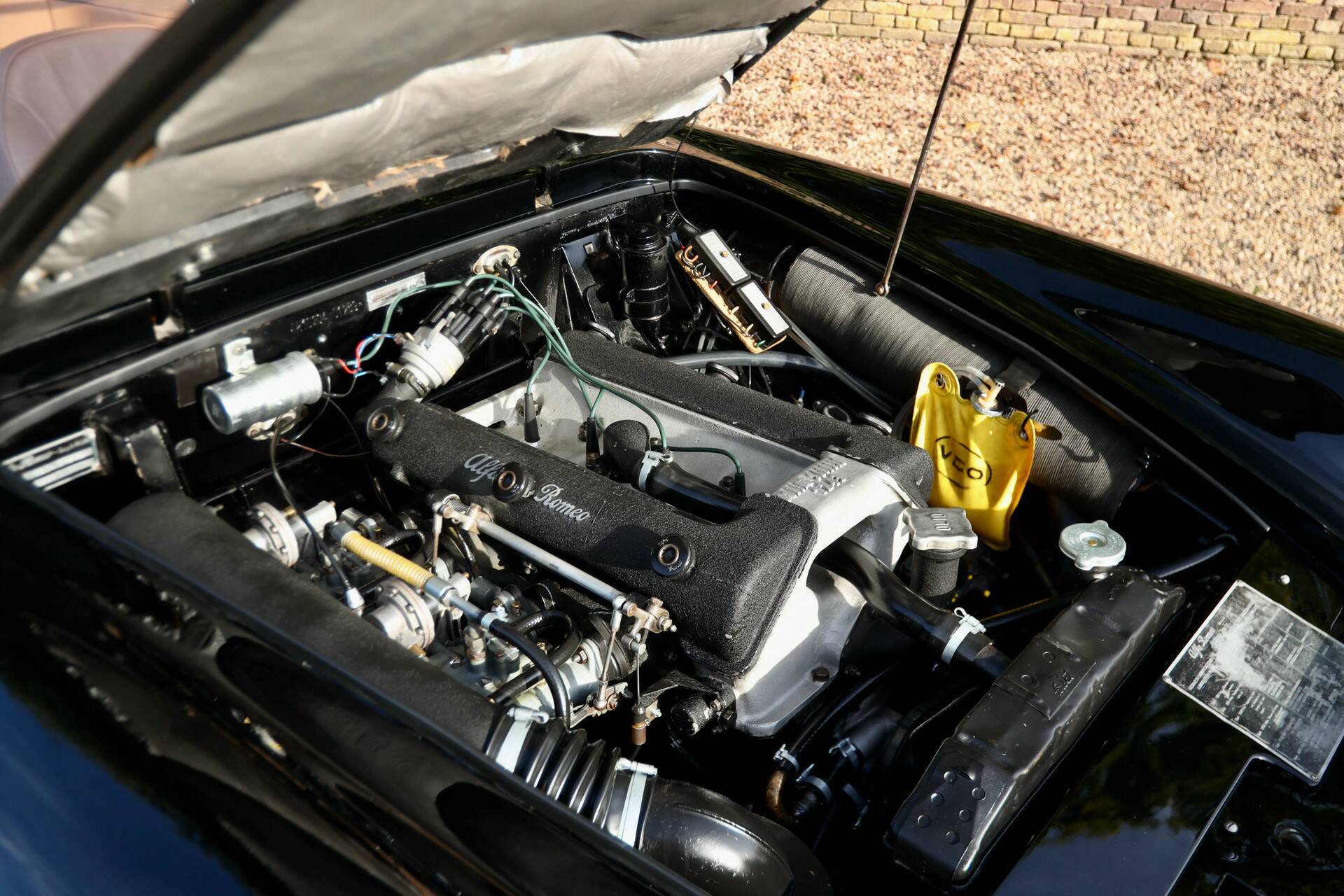 Unter den klassischen Linien verbirgt sich ein technisches Highlight. Der 2000 Spider verfügt über einen 2,0-Liter-Vierzylindermotor, bekannt für seine sanfte Laufkultur und sein direktes Ansprechverhalten, kombiniert mit einem manuellen Fünfganggetriebe, das eine unmittelbare Verbindung zur Straße ermöglicht. Das Fahrwerk mit unabhängiger Vorderachse und starrer Hinterachse bietet die perfekte Balance zwischen Komfort und sportlichem Handling. Diese Kombination aus Motor, Getriebe und Fahrwerk macht den Spider zu einem echten Alfa Romeo, der Eleganz und Dynamik mühelos verbindet.