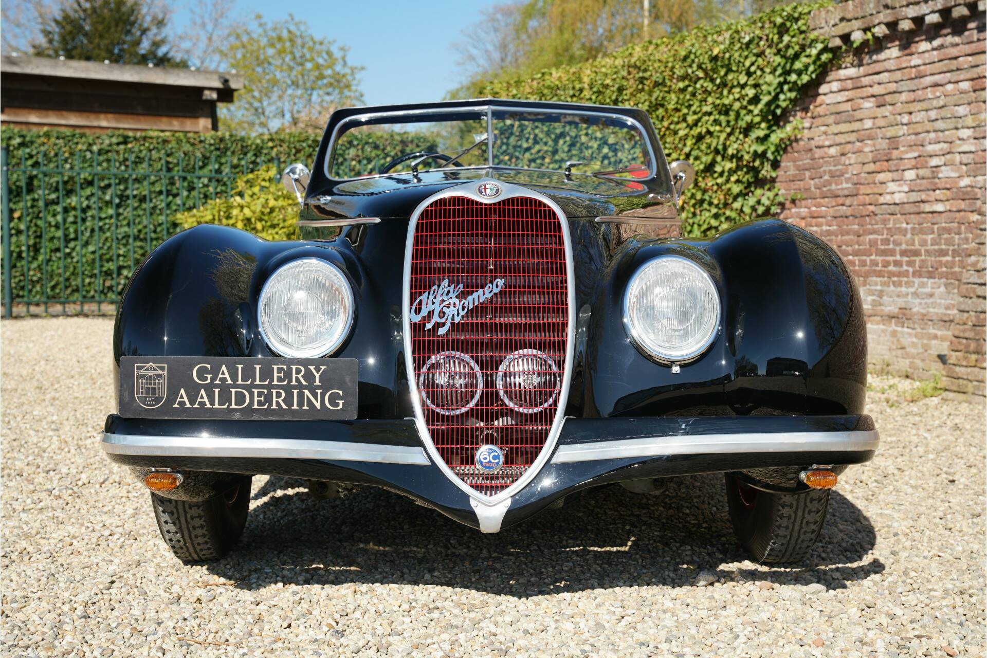 Alfa Romeo 6C 2500 Sport Convertible Equipped with an engine block with a remarkable history (Giuseppe Farina of Torino), Desirable and very suitable car for long-distance travel, Inspected/approved and provided with a Fiva Identity Card, Comprehensively restored using only the original and authentic parts, "Design by Touring"