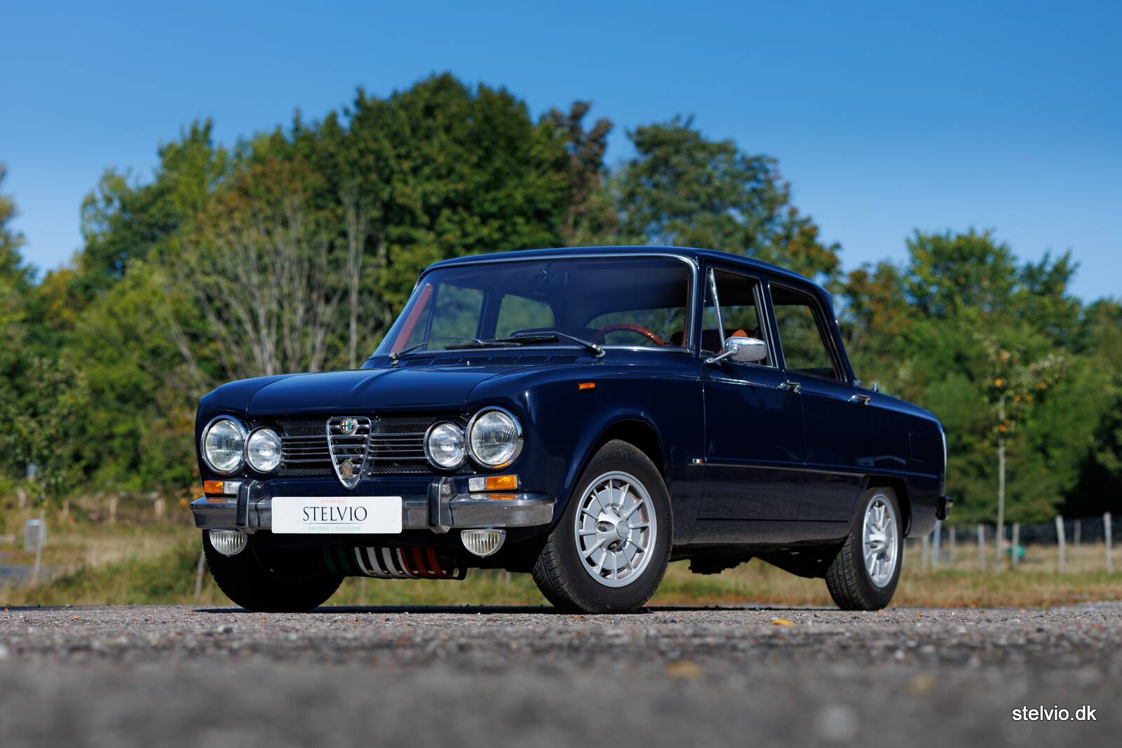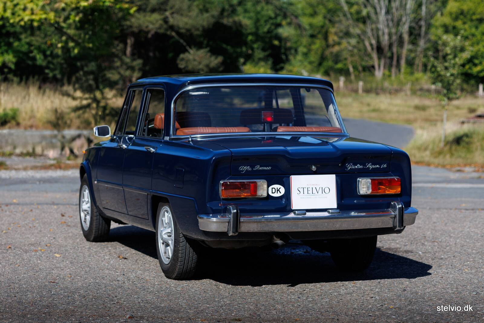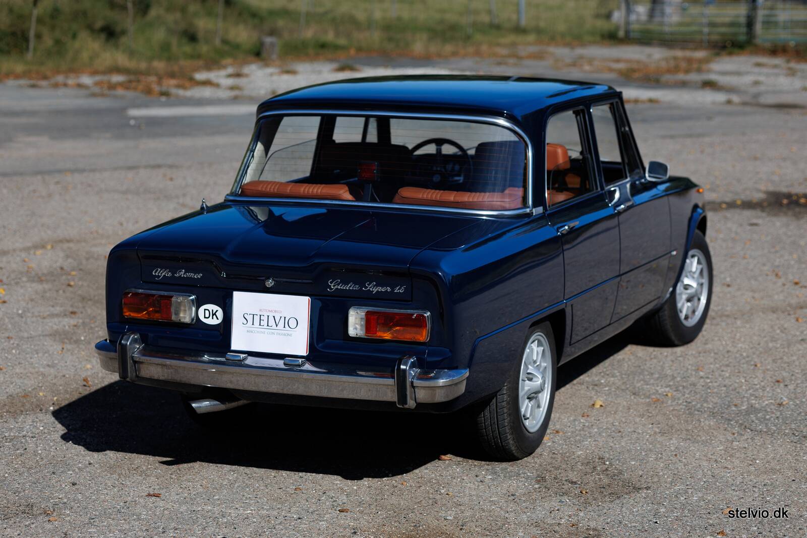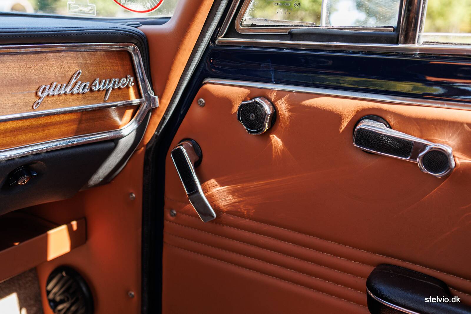 This beautiful Giulia Super – in the most sought-after version – we found in Italy some years ago. In 2011 it underwent a complete restoration including a total disassembly, sanding to bare metal and high-quality painting – even to the underside – in the original color Blu Olandese (Dutch blue).