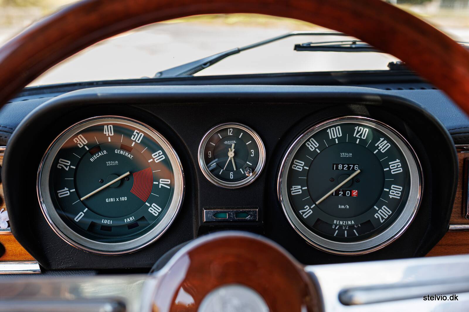Technically it has also been significantly upgraded, including a newly refurbished 2-liter engine and gearbox, as well with a matching 2-liter high ratio rear axle with LSD. The wheels are a quite rare and very period-typical Cromodora design. Result is a car with the proper sporty edge that suits the design so well.