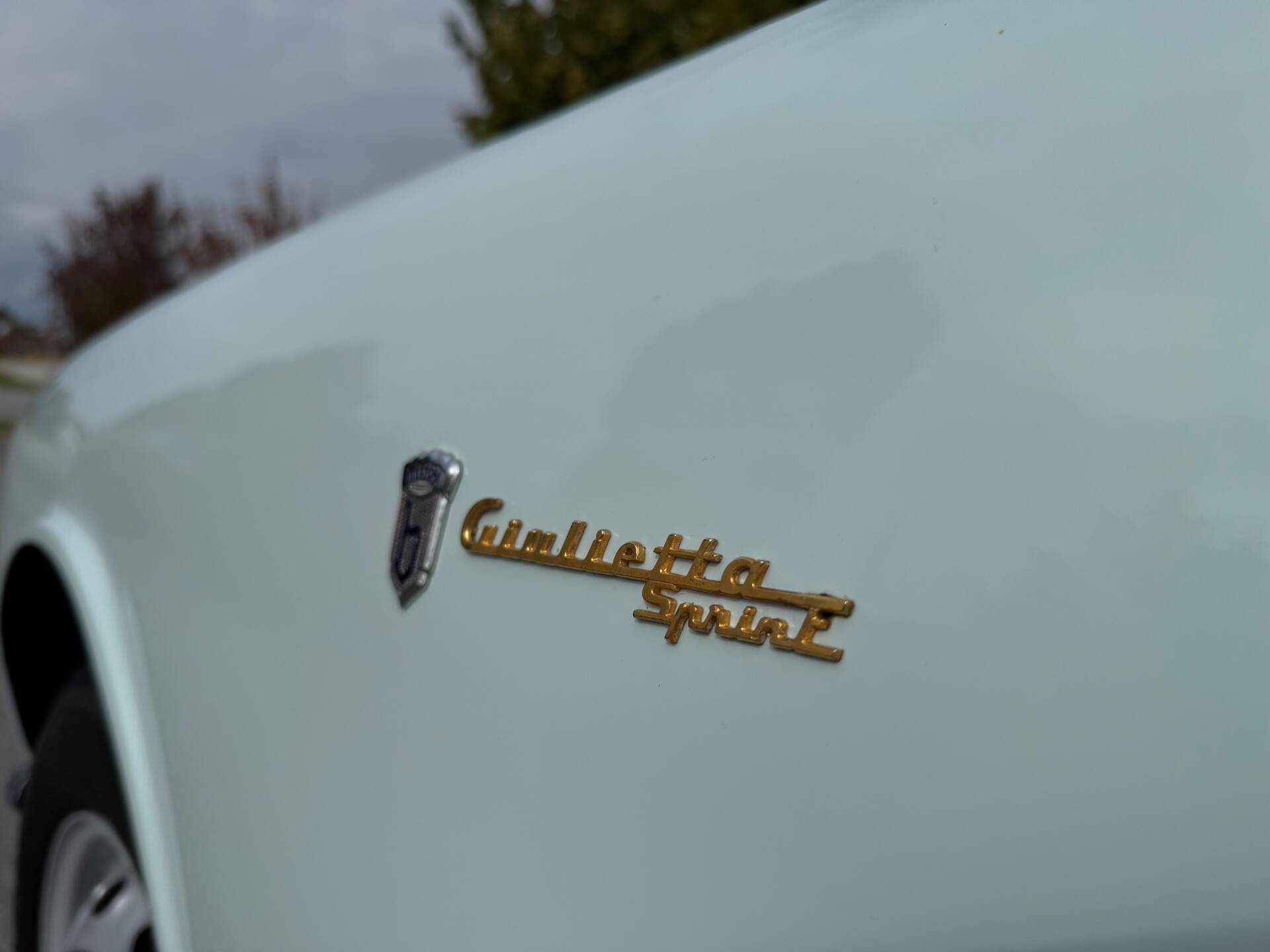 Die Ausstattung unterstreicht den besonderen Charakter dieses Coupés: Original Becker Radio Europa, Sportluftfilter, 4-Gang-Getriebe, rotbraune Lederausstattung und ein Sportsitz auf der Fahrerseite (der originale Sitz ist ebenfalls vorhanden). Technisch wie optisch befindet sich die Giulietta in hervorragendem Zustand. Seit der Restaurierung wurde sie wenig, aber regelmäßig bewegt – in Deutschland war sie lediglich von 05/2000 bis 11/2001 zugelassen, danach abgemeldet und anschließend mit roter Nummer gefahren.