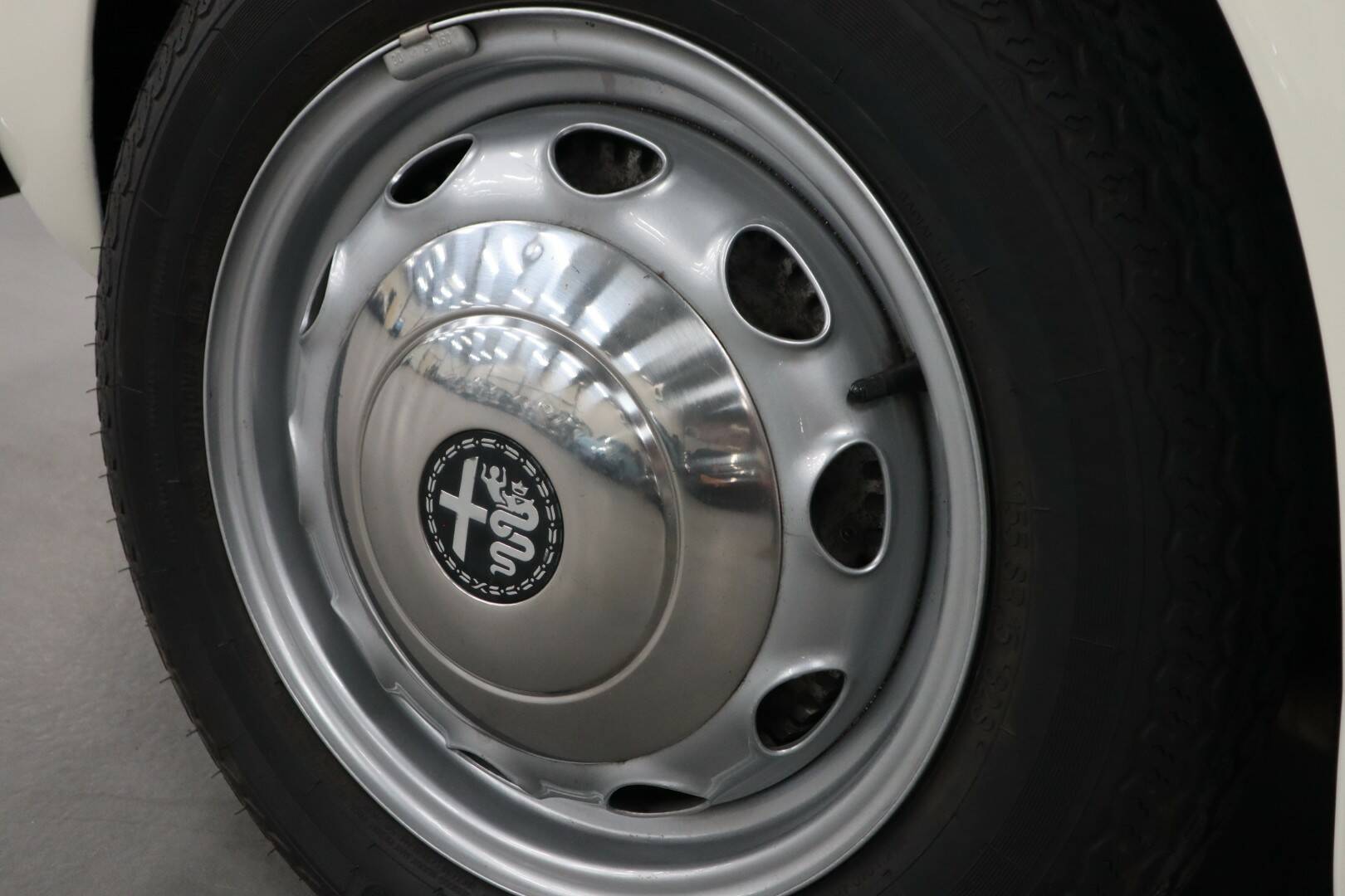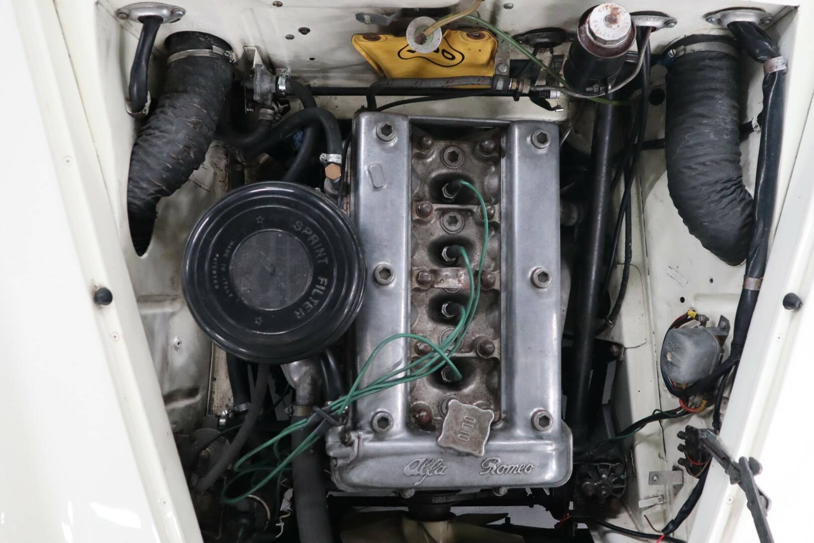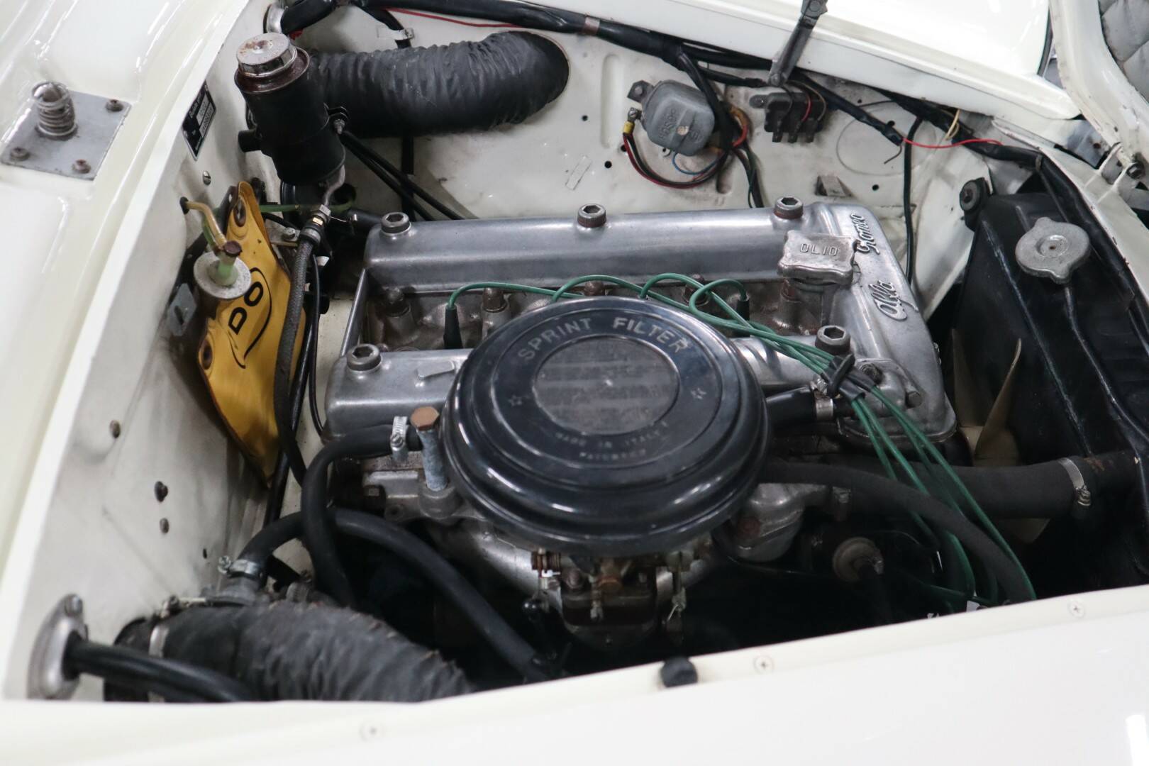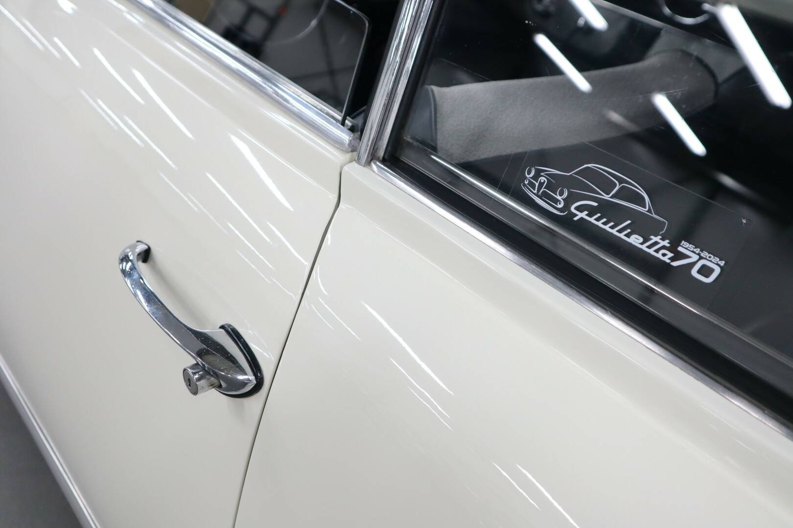 The Giulietta has undergone a minor restoration with respect for its originality. The engine has been completely overhauled, the brakes have been rebuilt, the bodywork has been professionally repainted in a beautiful off-white color called Bianca Gardenia, and the interior has been given new upholstery that perfectly complements the car’s classic look.