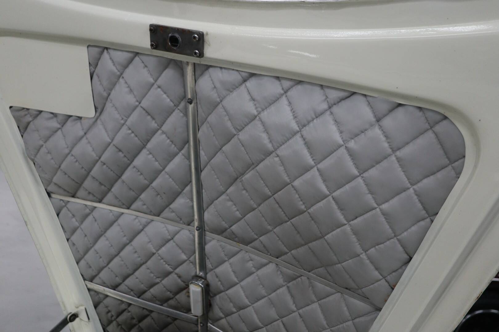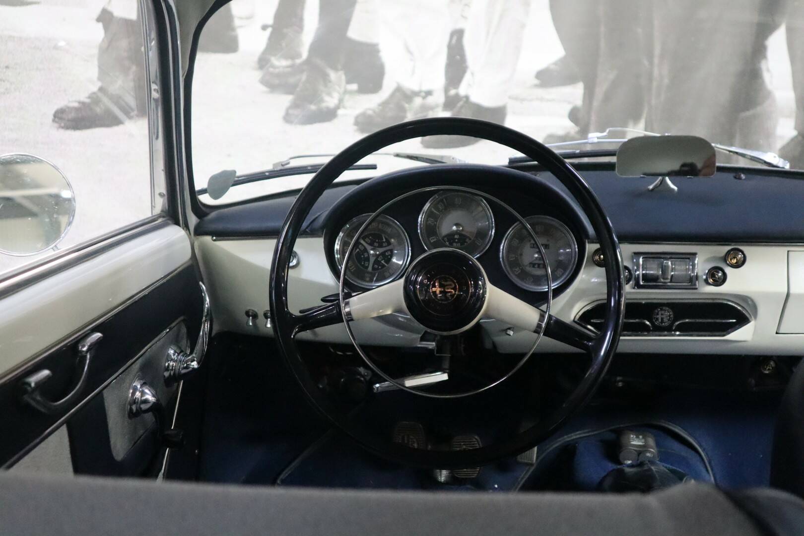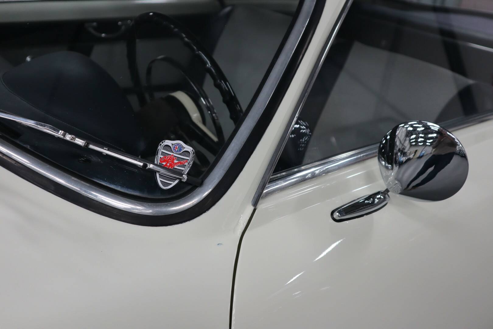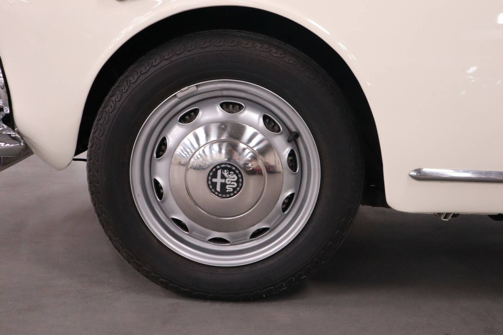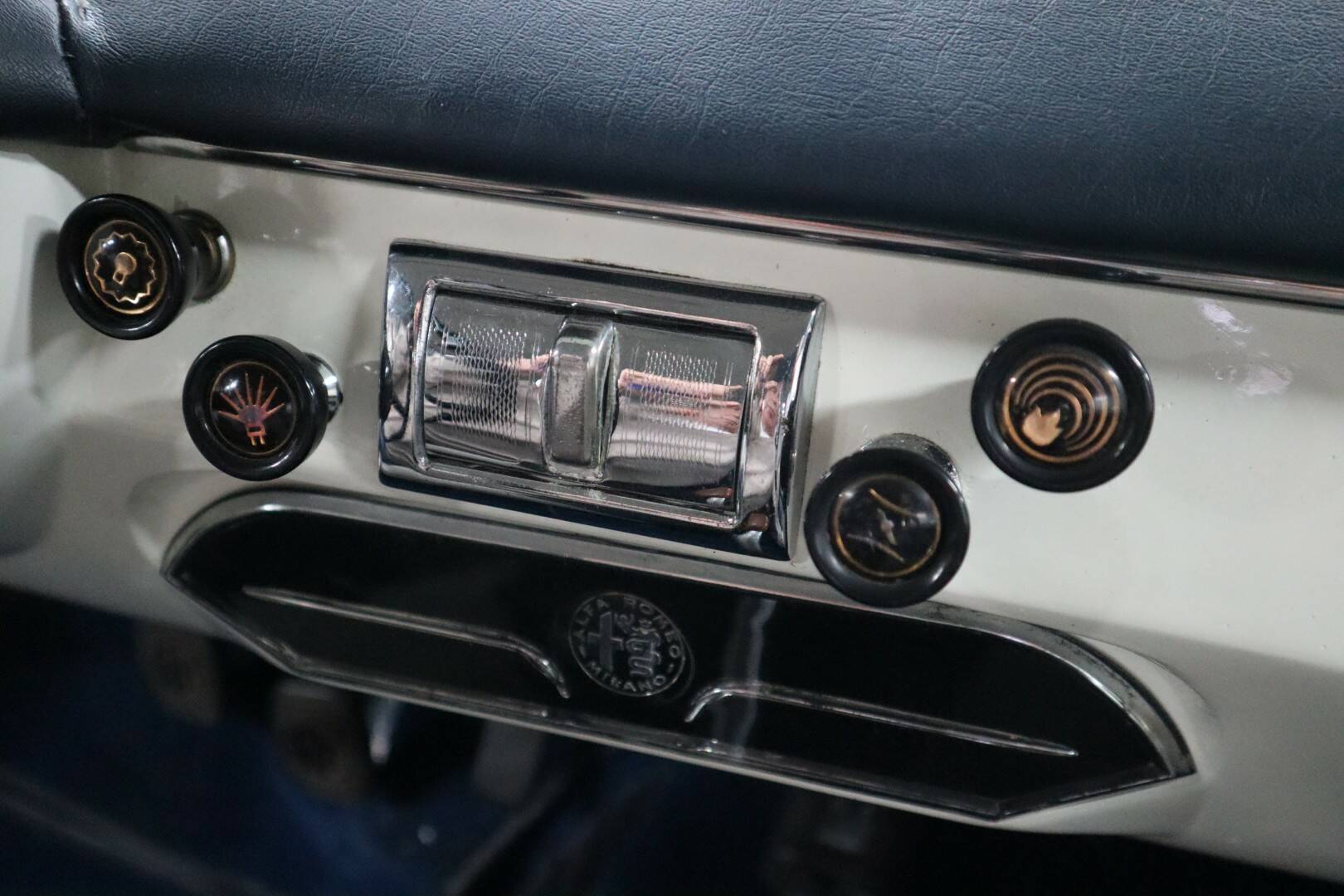 The Giulietta has undergone a minor restoration with respect for its originality. The engine has been completely overhauled, the brakes have been rebuilt, the bodywork has been professionally repainted in a beautiful off-white color called Bianca Gardenia, and the interior has been given new upholstery that perfectly complements the car’s classic look.