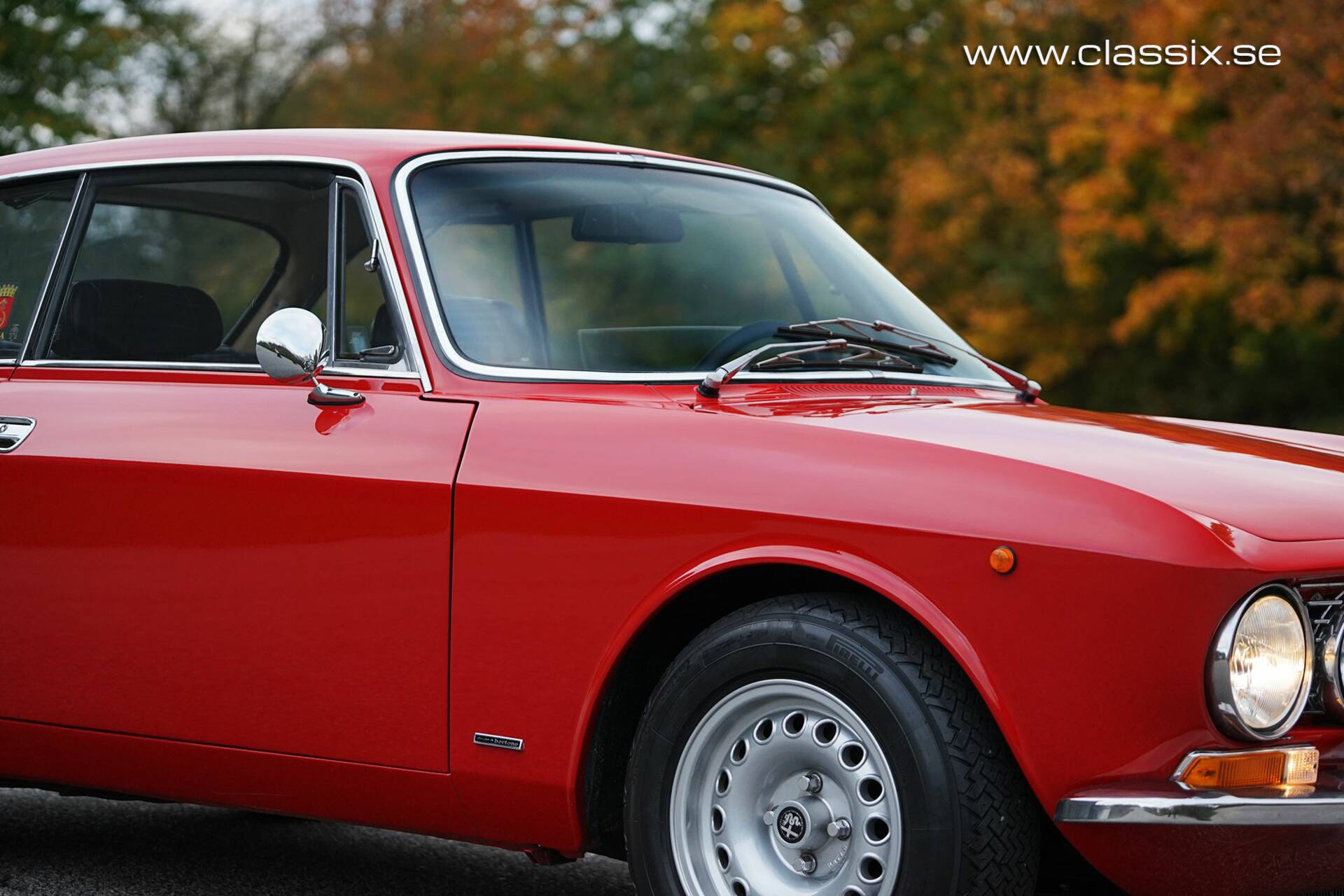 Exterior: Finished in classic Alfa Rosso, this Alfa Romeo 2000 GTV presents beautifully. The bodywork has crisp, defined lines, and the panel fit is excellent – doors, bonnet, and boot all line up nicely. Chrome and stainless trim are in very good condition. It rides on GTA-style alloy wheels with Pirelli tyres, a period-correct and very attractive setup. The stance is slightly lower than standard, which gives the Alfa Romeo GTV 2000 a perfect, balanced look – sporty but not exaggerated. The car is completely solid, including the floor and sills, and the underside is clean and of course free from corrosion.