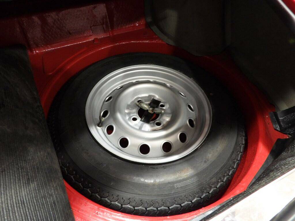 Sedili e pannelli in Tex Alfa sky cuoio naturale, Volante a tre razze a calice Hellebore con corona in legno, Autoradio Blaupunkt punto azzurro PORTO 21 AM/FM con antenna manuale al parafango posteriore sinistro, Specchio esterno lato guida cromato, Cerchi in lega Alfa Romeo Millerighe Campagnolo con pneumatici Michelin 165 HR14