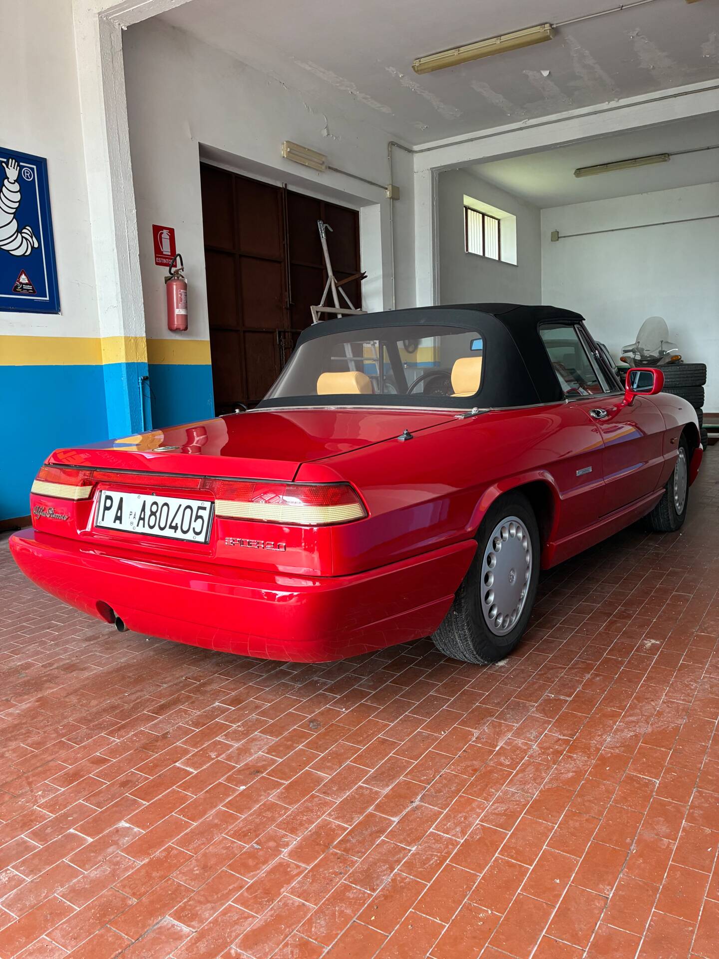 La vettura proposta è un oggetto che presenta tutto quello che un appassionato di auto storiche ed ancor più di Alfa Romeo ricerca in una vettura. La sua linea evoca eleganza e spensieratezza; un auto che è stata pensata espressamente per godersi la guida a cielo aperto, completa di iscrizione ASI. Vettura immatricolata giorno 1/8/1991,targhe originali, appartenuta a 2 proprietari, scadenza revisione 3/2028, non fate caso alla scritta nel posteriore “2.0”che è stata messa erroneamente dal precedente proprietario, meccanica e carrozzeria perfette, nessun lavoro da fare a parte l’alzavetro lato guida. Qualsiasi prova anche con vostro meccanico di fiducia, no scambi. Trattabile dopo visione
