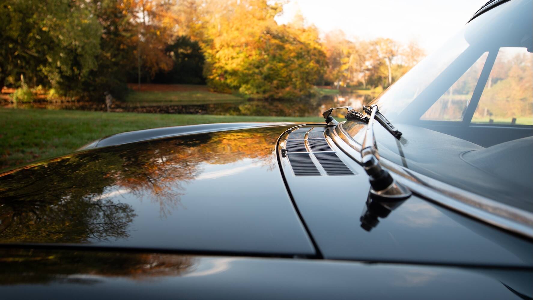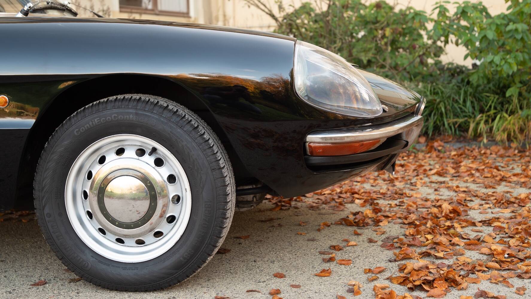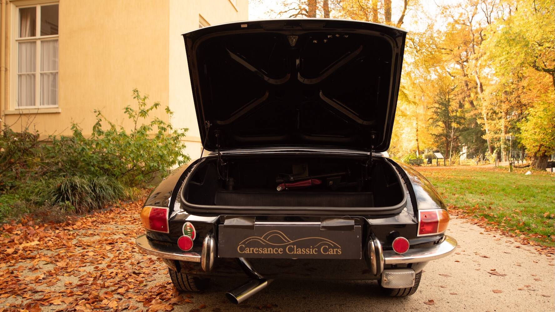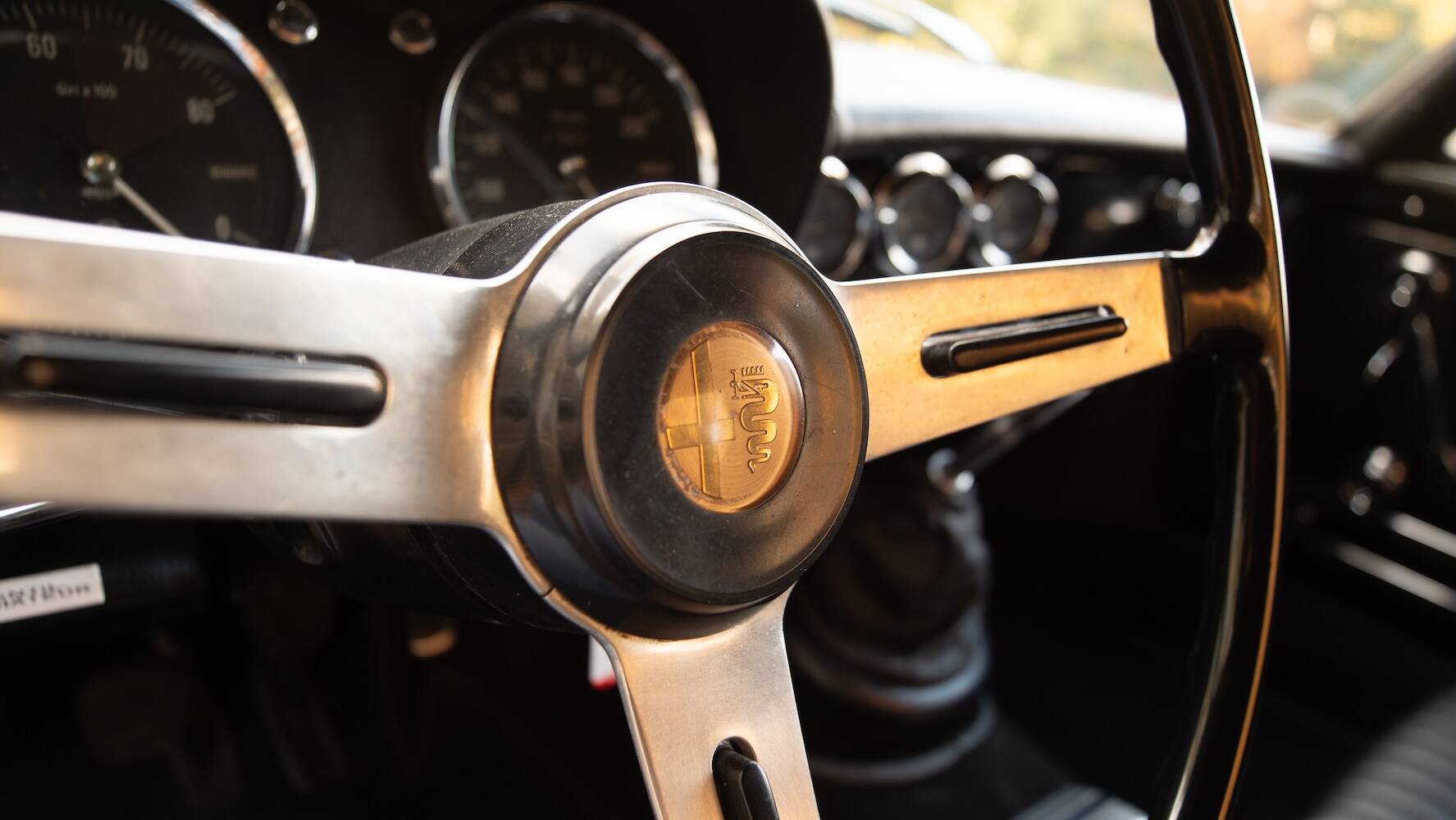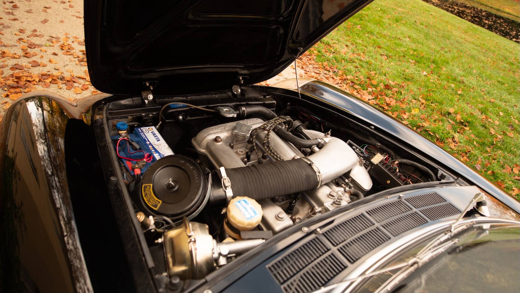 Der Wagen befindet sich in einem hervorragenden Originalzustand, wobei die schwarze Lackierung die ikonischen Linien wunderschön betont. Der Lack weist einige wenige, dem Alter entsprechende Gebrauchsspuren auf, die einem Fahrzeug entsprechen, das nicht überrestauriert wurde, sondern seine Authentizität bewahrt hat. Es ist genau diese Originalität, die dieses Exemplar für Kenner so begehrenswert macht.