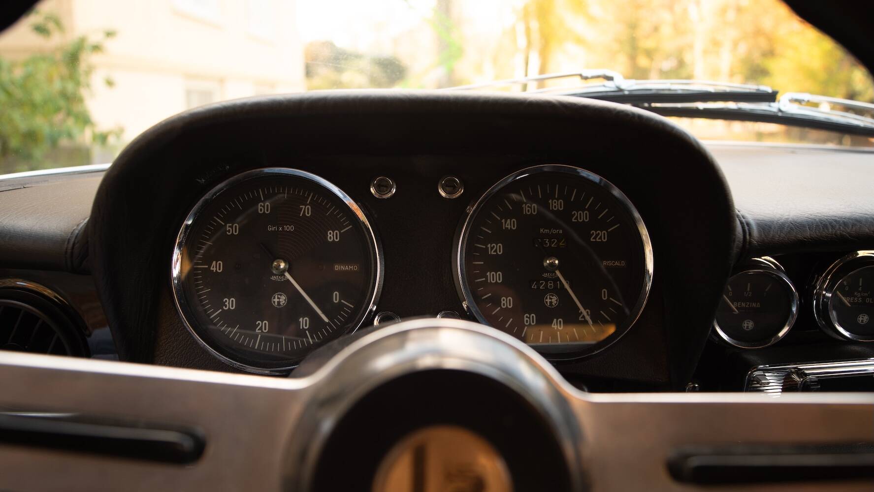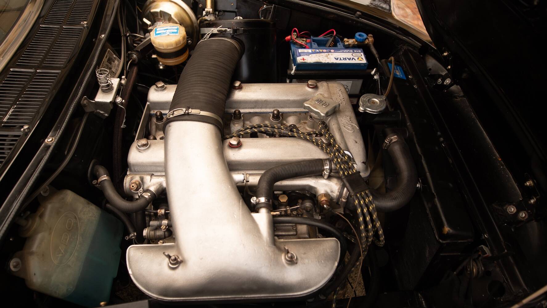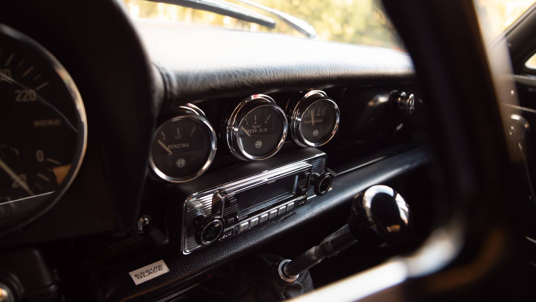 Das schwarze Mohairverdeck ist von hoher Qualität und sitzt perfekt. Die schwarze Kunstlederausstattung befindet sich in exzellentem Zustand, mit gepflegten Polstern, sauberen Verkleidungen und einem Armaturenbrett, dessen klassische Instrumente und Schalter noch immer das authentische Alfa-Feeling vermitteln. Die originalen Details und die Optik wurden erhalten und unterstreichen den Charme dieses Spiders.