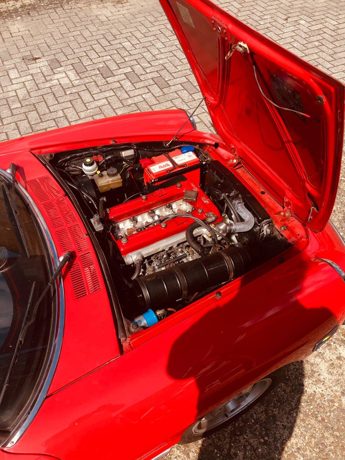 This car has a 4-cylinder in-line, water-cooled, front-mounted 1962 cc 80 kW 110 hp engine with 2 Dellorto DHLA40 carburetors (instead of Spica injection) engine type: ARO1615. The engine still has the original matching number A994403.
