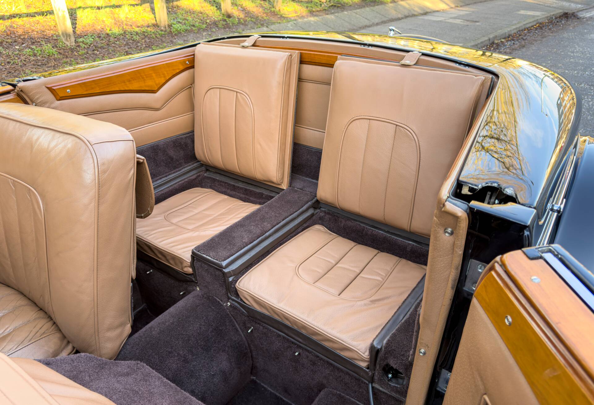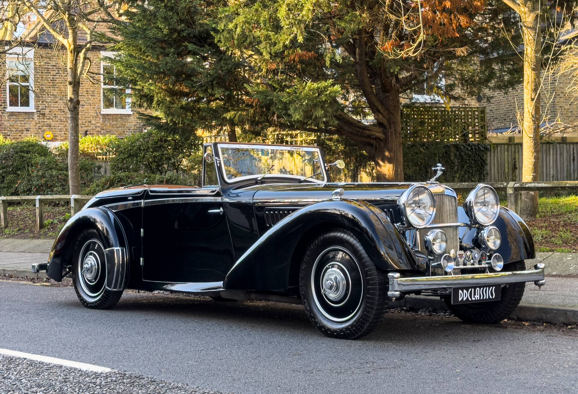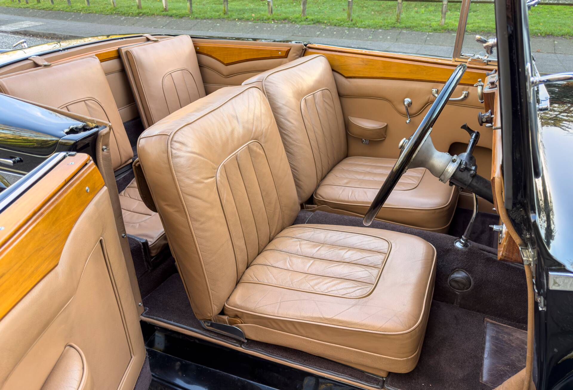 The car carries distinctive drophead coupé coachwork by Whittingham & Mitchel of West London, a firm best known for contract work for major manufacturers but occasionally entrusted with commissions on prestigious chassis such as this. The body is both elegant and purposeful, closely related in theme to the short-chassis Vanden Plas tourer yet unique in execution and almost certainly tailored to the original owner’s specification. Particularly appealing features include the fully concealed hood, clean proportions and the occasional four-seat arrangement, which allows generous luggage accommodation when the rear seats are folded, making the car especially well suited to long-distance touring.