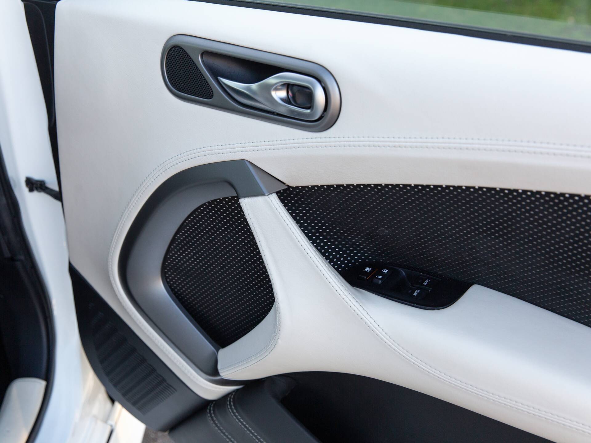 The example we are now delighted to offer to market is finished in ‘Launch Edition’ specifications (the ‘Launch Edition’ was available in two colour ways – White or Black), of Snow White metallic paint, with twin matt body stripes, silver meshes, chrome brightwork and white diamond turned alloy wheels. Inside the cabin, a combination of Pearl White leather, rectangular shaped perforated alcantara inserts with silver backing and satin chrome finishers.