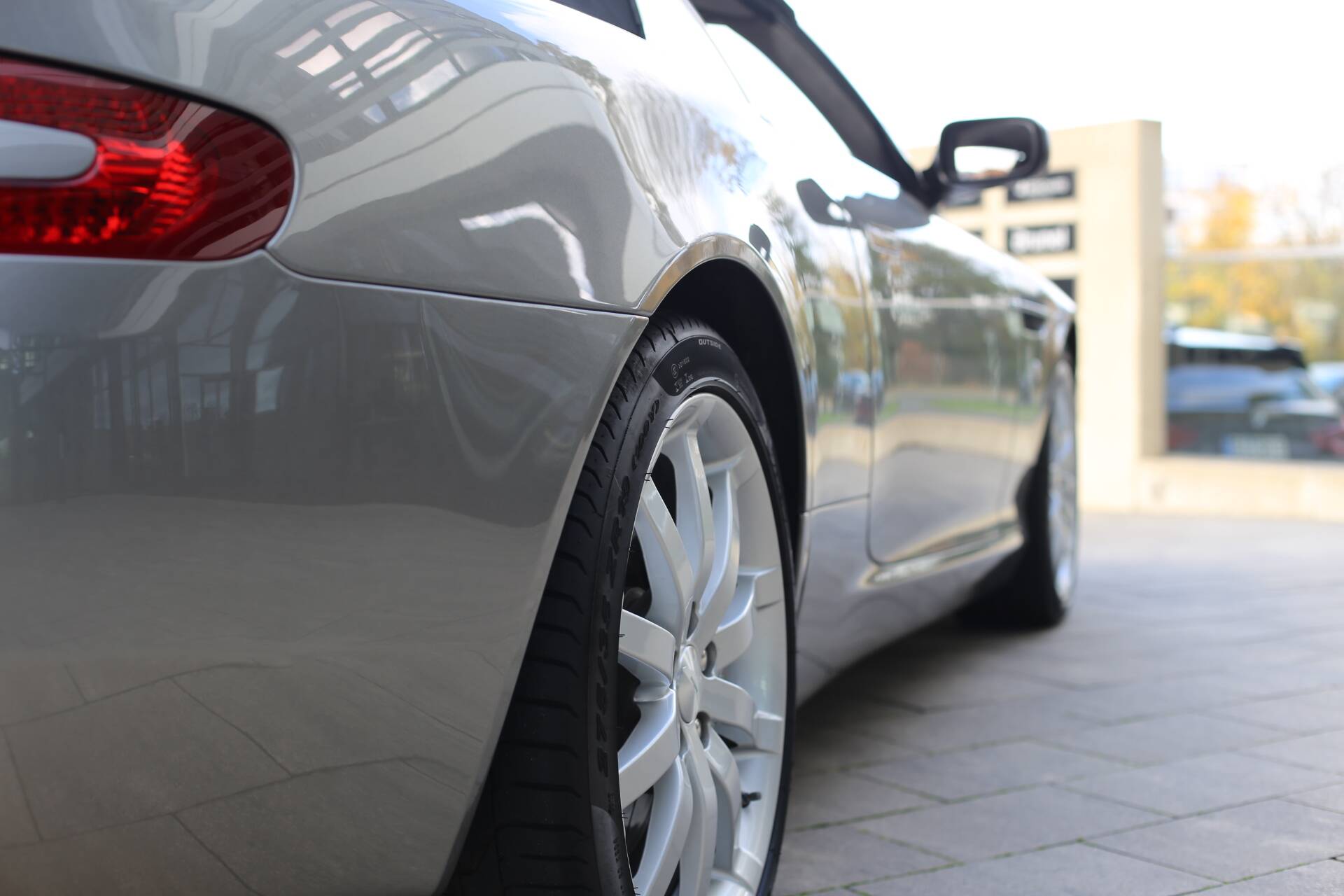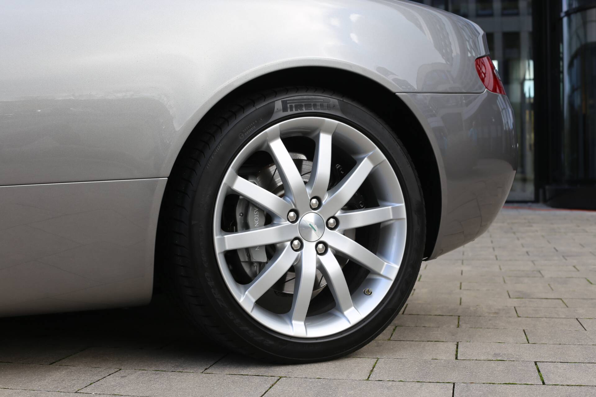 Dieses Exemplar in deutscher Spezifikation wurde im August 2006 erstmals zugelassen und vom offiziellen Aston-Martin-Händler Moll Sportwagen GmbH in Düsseldorf ausgeliefert. Die Außenfarbe Tungsten Metallic Silver harmoniert perfekt mit dem edlen Piano-Black-Armaturenbrett und dem außergewöhnlichen Eclipse-Red-Lederinterieur – eine beeindruckende und zugleich klassische Farbkombination.