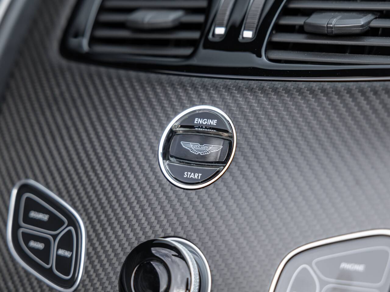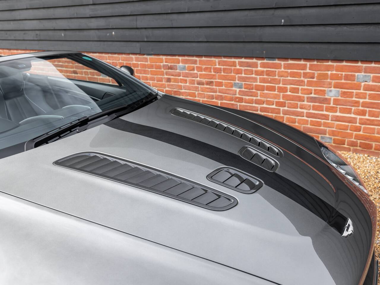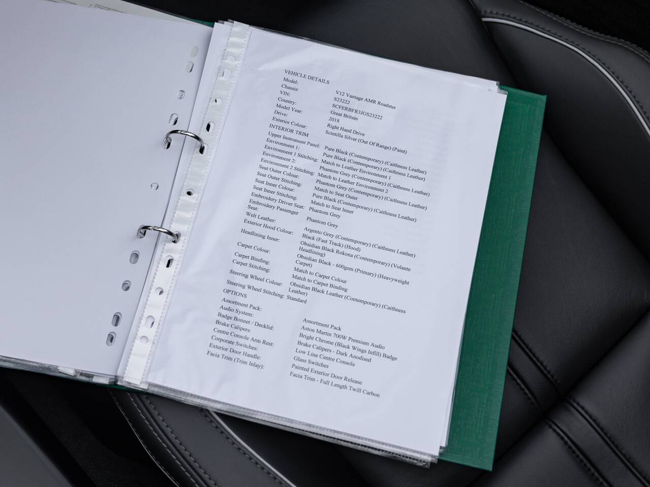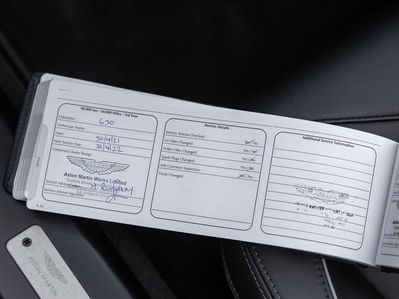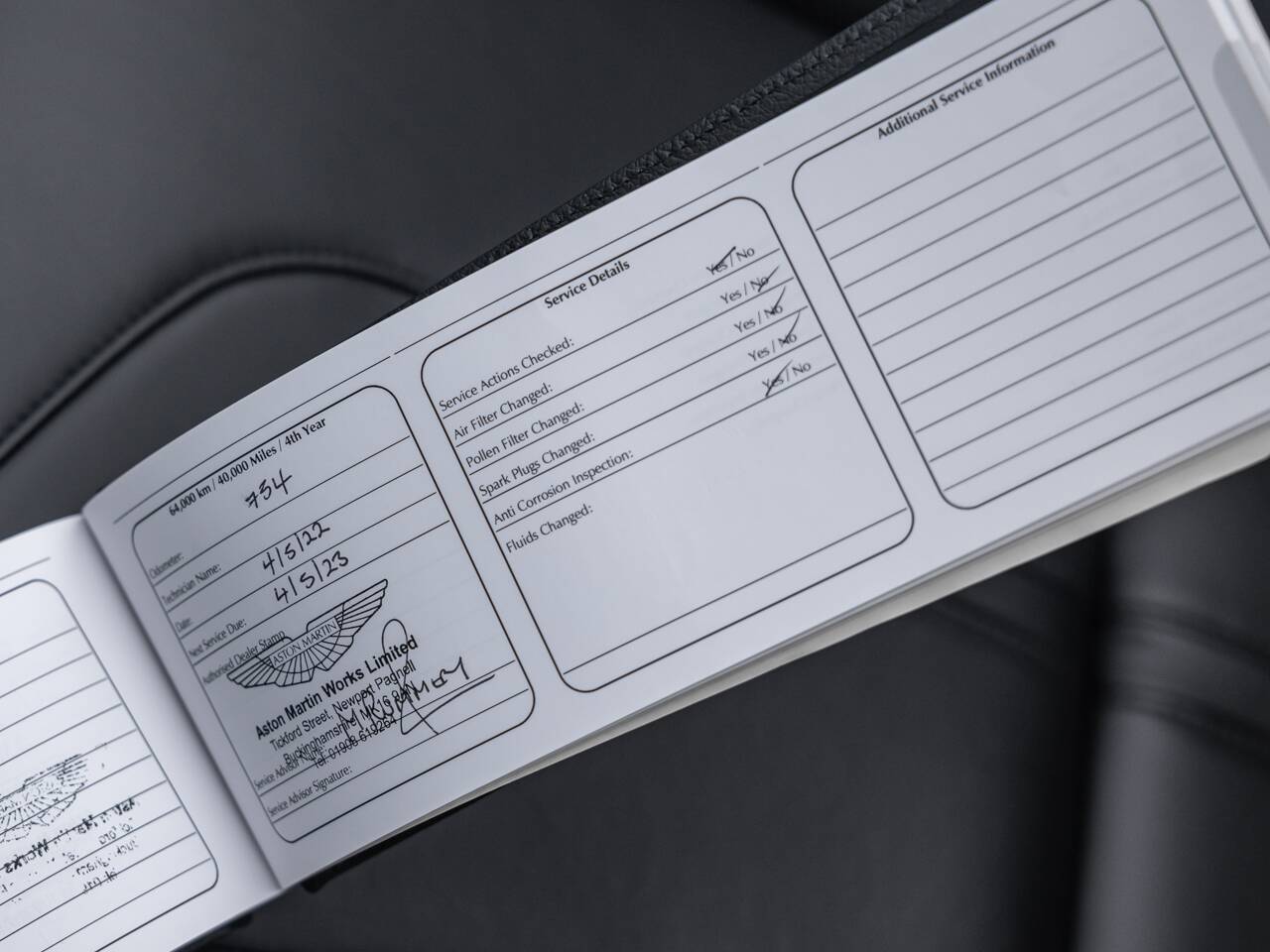 This particular example was registered for use in April 2018. Finished discretely in Scintilla Silver over Pure Black hides with subtle Phantom Grey accents, notable optional extras specified include; Aston Martin 700w Premium Audio, Dark anodised brake calipers, full length twill carbon facia trim, front grille carbon, Piano black interior trim pack, reversing camera, AMR headrest embroidery, Lightweight Gloss Black wheels, Sports seats and wind deflector.