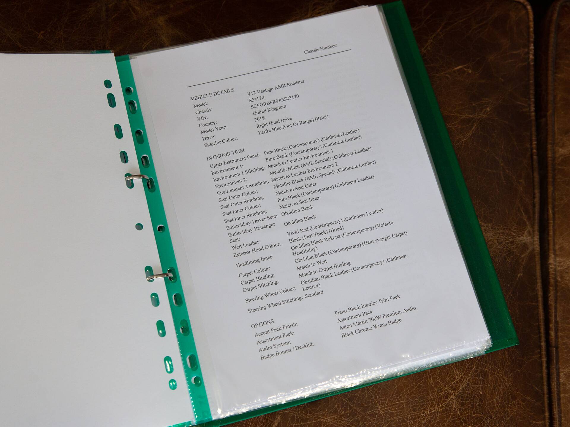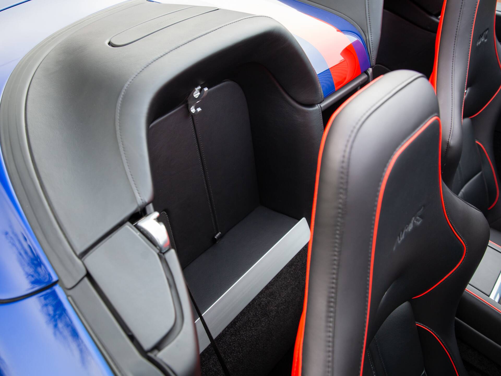 Finished in the stunning colour of Zaffre Blue, one of just 4 UK RHD examples in this colour. In addition to standard V12 Vantage AMR specifications, notable options specified on this example include; AM 700w premium audio, Carbon Fibre Lightweight seats, Red brake calipers, full length twill carbon facia trim, front grille carbon painted, front parking sensors, Piano black interior trim pack, Interior carbon pack, Gloss Carbon Fibre mirror caps, Carbon tail lamp finishers, carbon fibre door handles, AMR headrest embroidery, reversing camera, black AMR wheels and wind deflector. A full build specification is available on request.
