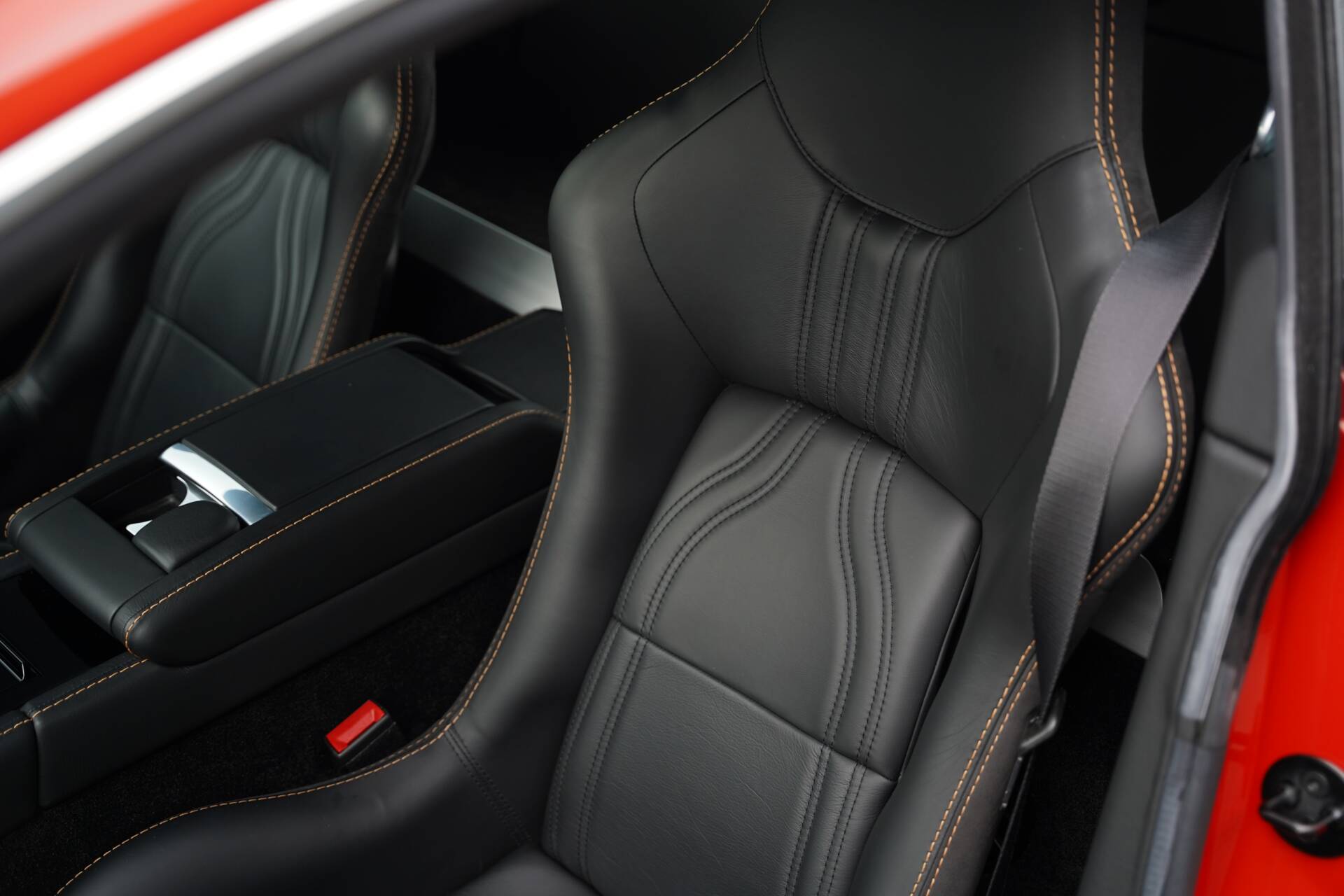 This Aston Martin is a 2012 model finished in the exceptionally rare Q division colour of Flame Orange over an Obsidian Black leather interior with contrast stitching on the rare and desirable lightweight seats, a £2,495 option when new, and have been combined with the Interior Carbon Pack. All of which provides the perfect place to sit whilst you savour the experience of manually working your way through the wonderfully physically six speed gearbox.