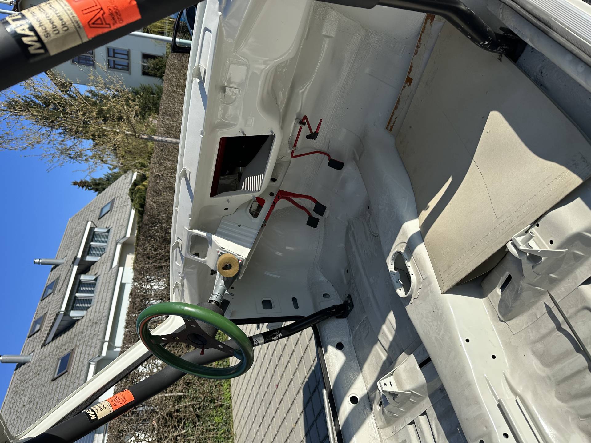 Komplettumbau Gruppe 2, innen+aussen kompl. lackiert und rostfrei. Aussenfarbe Alpinweiss, Anbauteile Audi Laserrot.