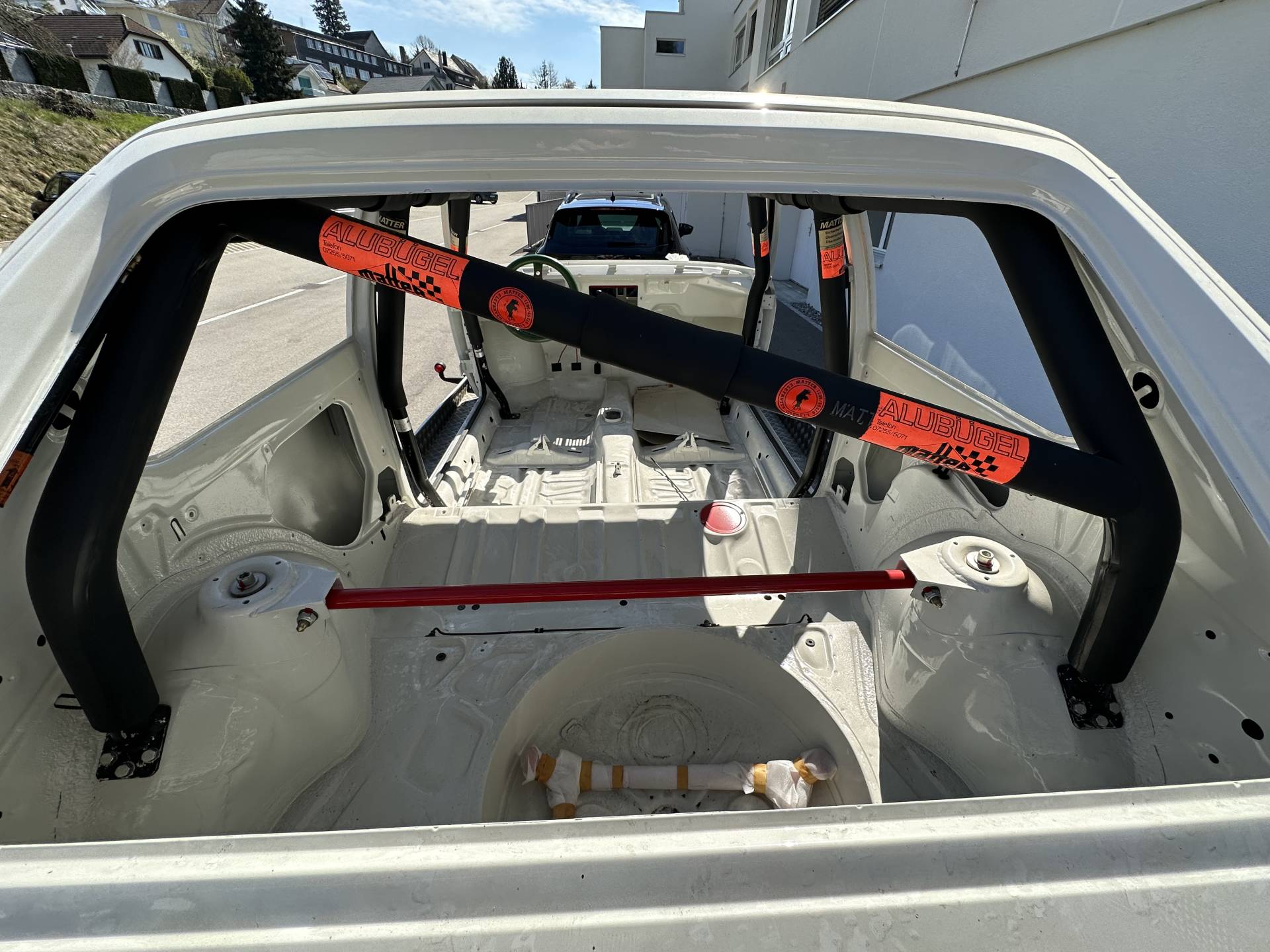 Motor auf 1300 ccm aufgebohrt, Ersatzteile von Sorg Motorsport (Motoren-Fahrwerk-Getriebe-/Sperdiff.-Auspuff sowie Anbauteile) vorhanden, Matter Überrollkäfig. Alle Original Anbauteile, Chrom-Stossfänger, Scheiben inkl. Vor Lackierung sämtliche Strebenhalterungen lackiert, verchromte Bremssättel, (Golf GTI) rev. Bremsen hi. Weitere Motoren, Getriebe, Ersatzeile vorhanden. Und noch vieles mehr...